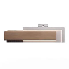 The standout design element is the geometric exterior paneling, which adds subtle dimension and architectural flair. Integrated LED undertone lighting adds a soft glow across the workspace, enhancing both ambiance and visibility during interactions and daily work.