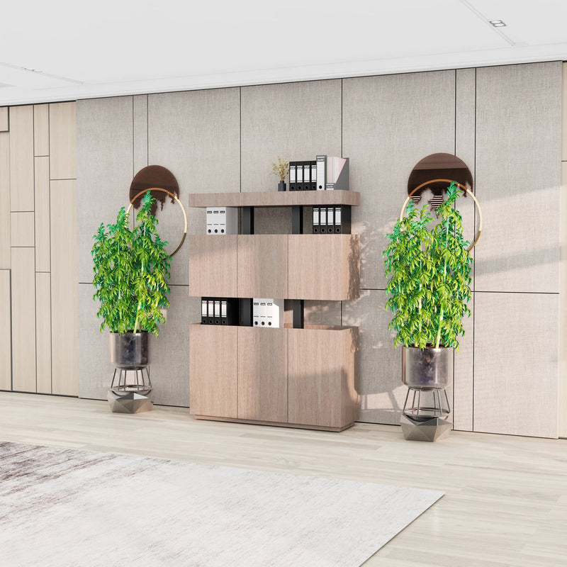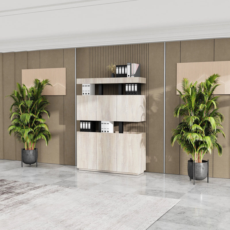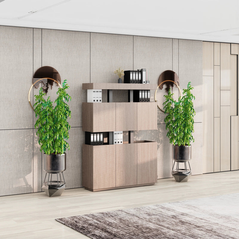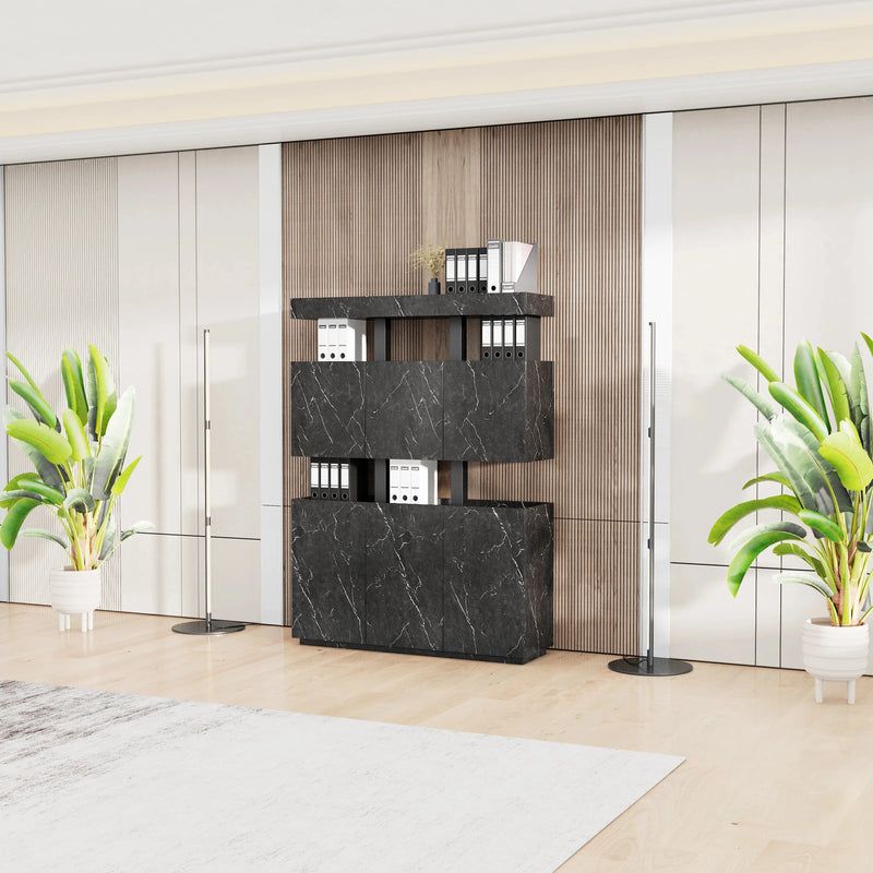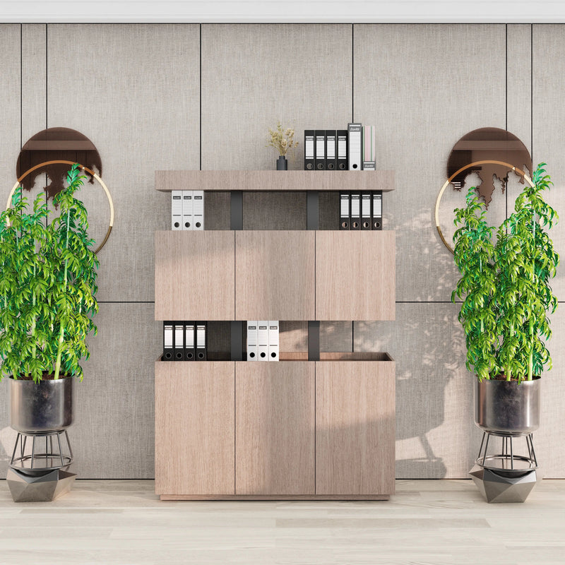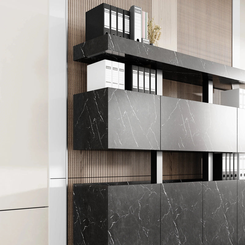 - Almacenamiento oculto: incluye gabinetes cerrados para almacenamiento oculto, lo que ayuda a mantener un espacio limpio y organizado y, al mismo tiempo, ofrece amplio espacio para artículos más grandes.
