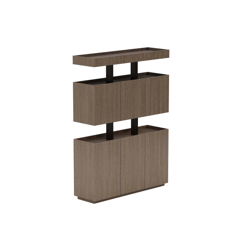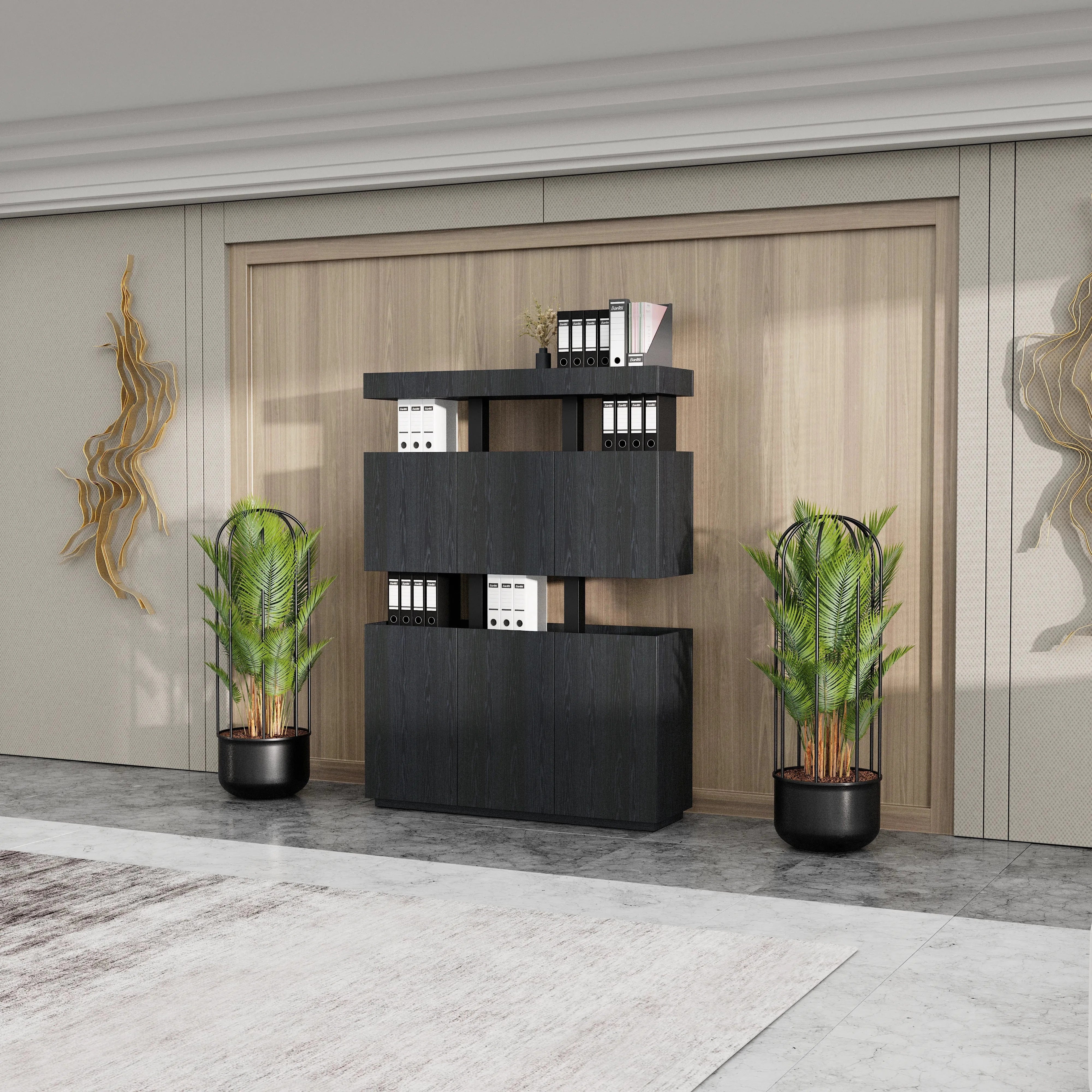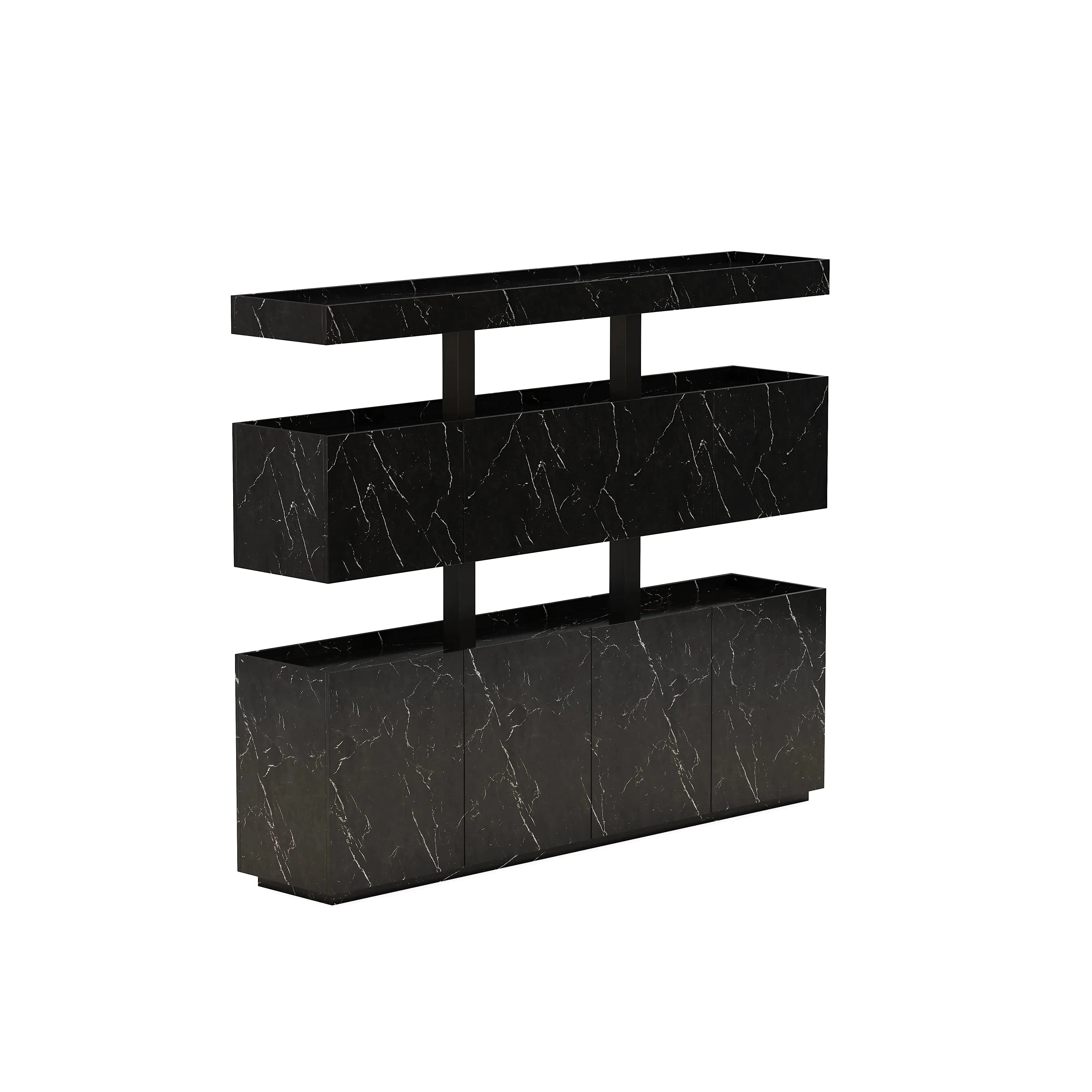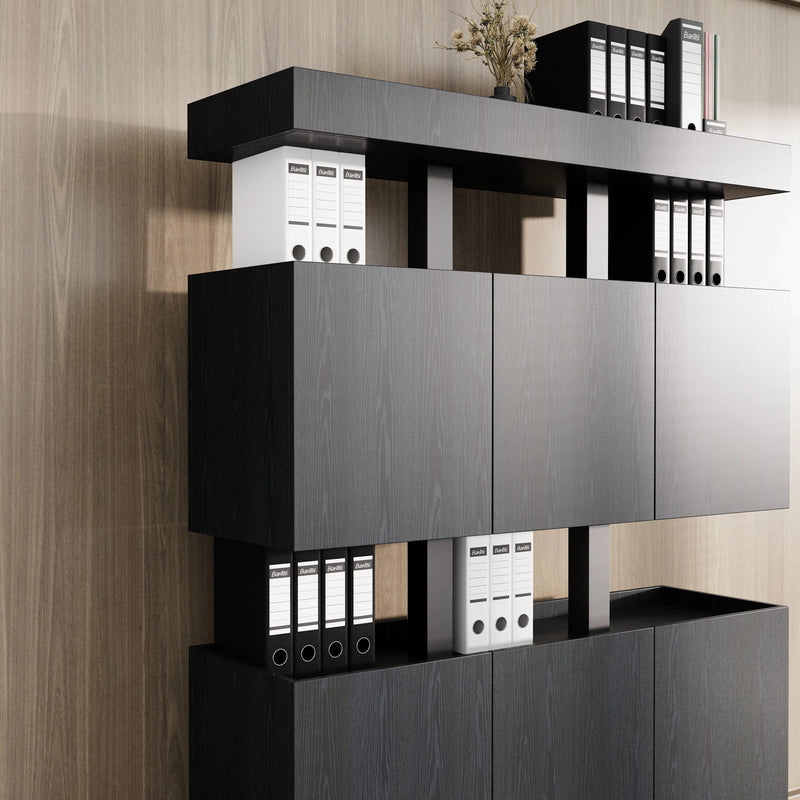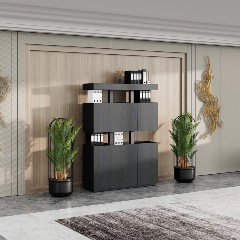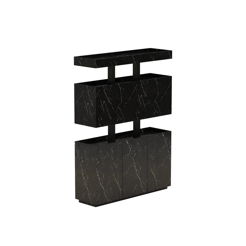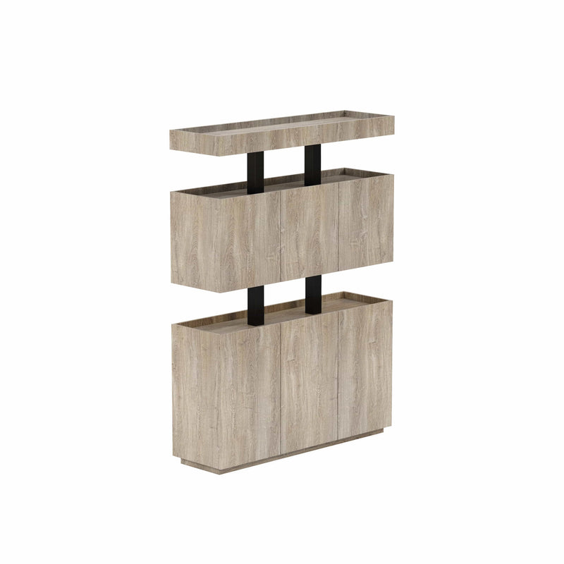 - Estanterías abiertas: cuenta con múltiples estantes abiertos, perfectos para exhibir libros, artículos decorativos u otros elementos esenciales.
