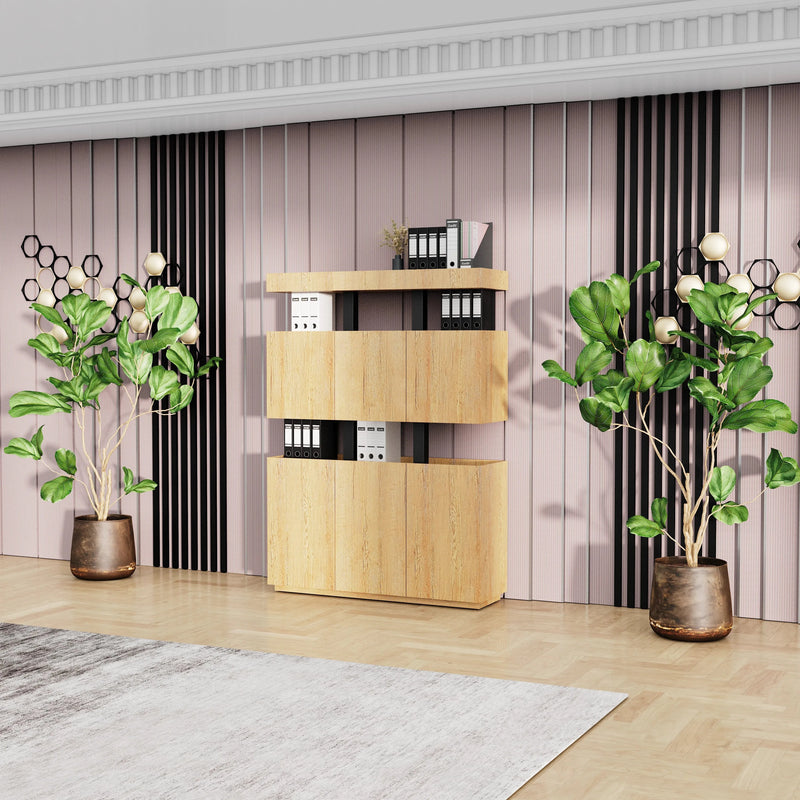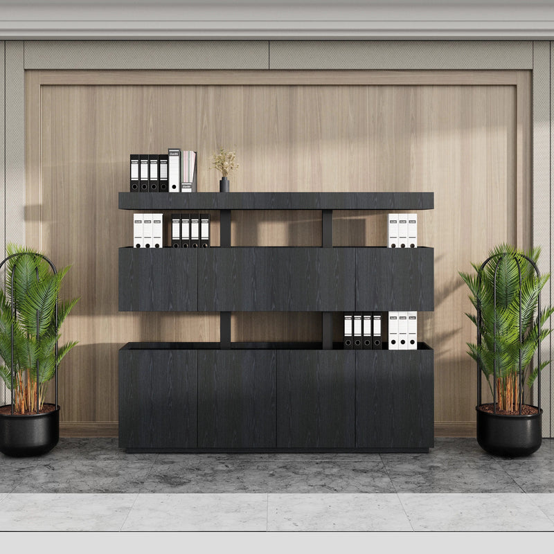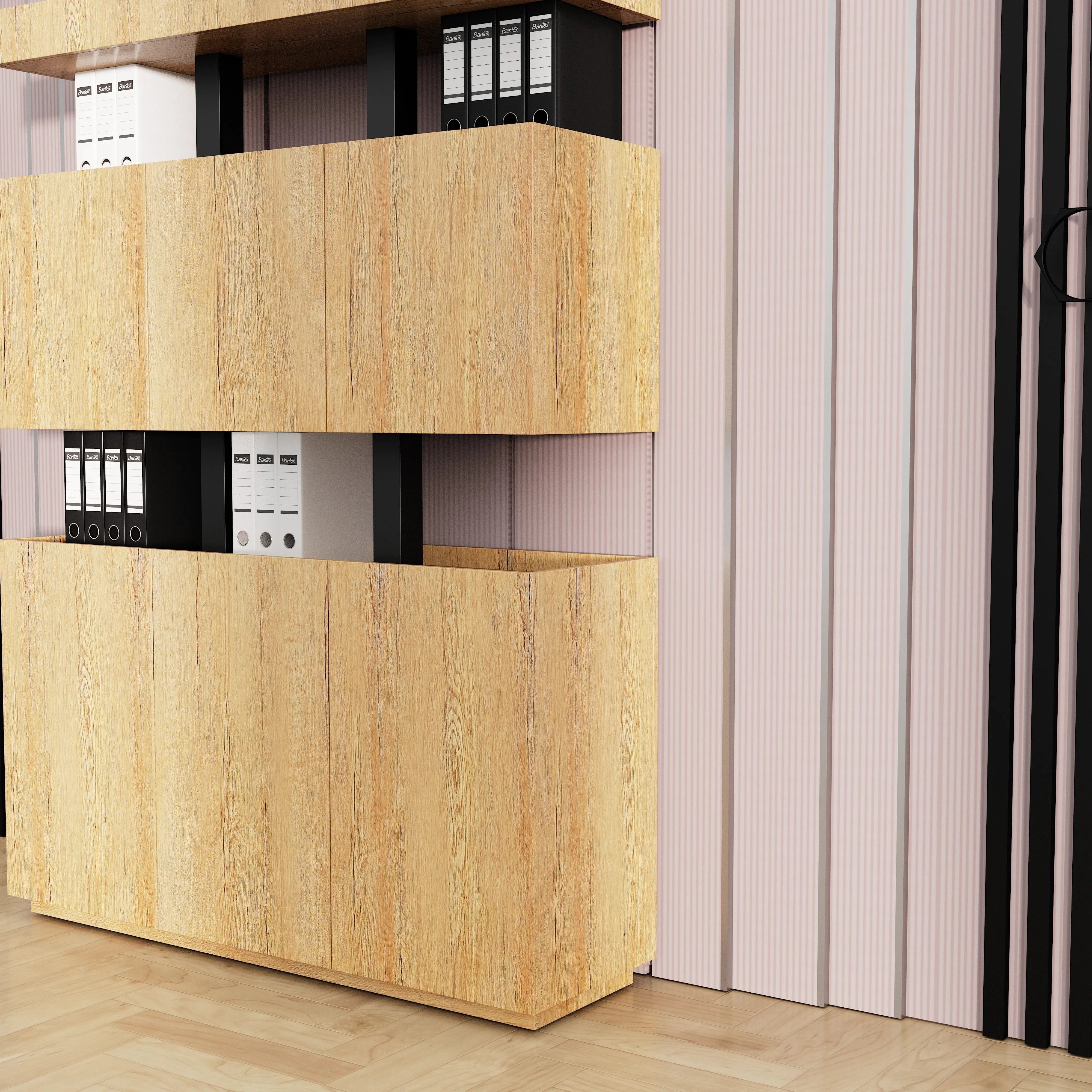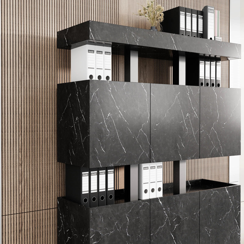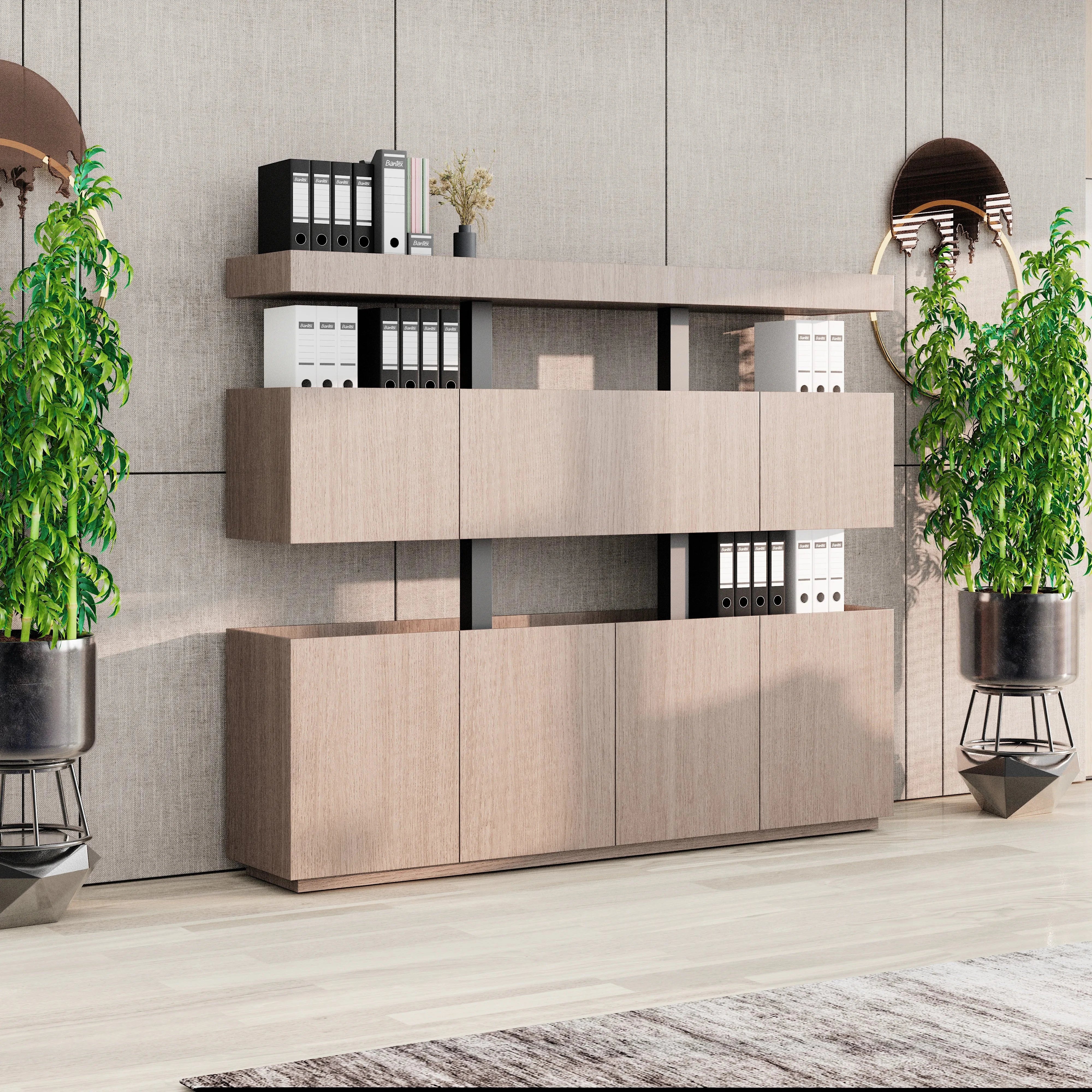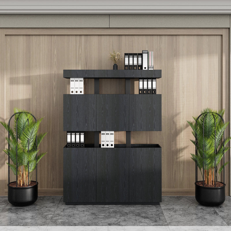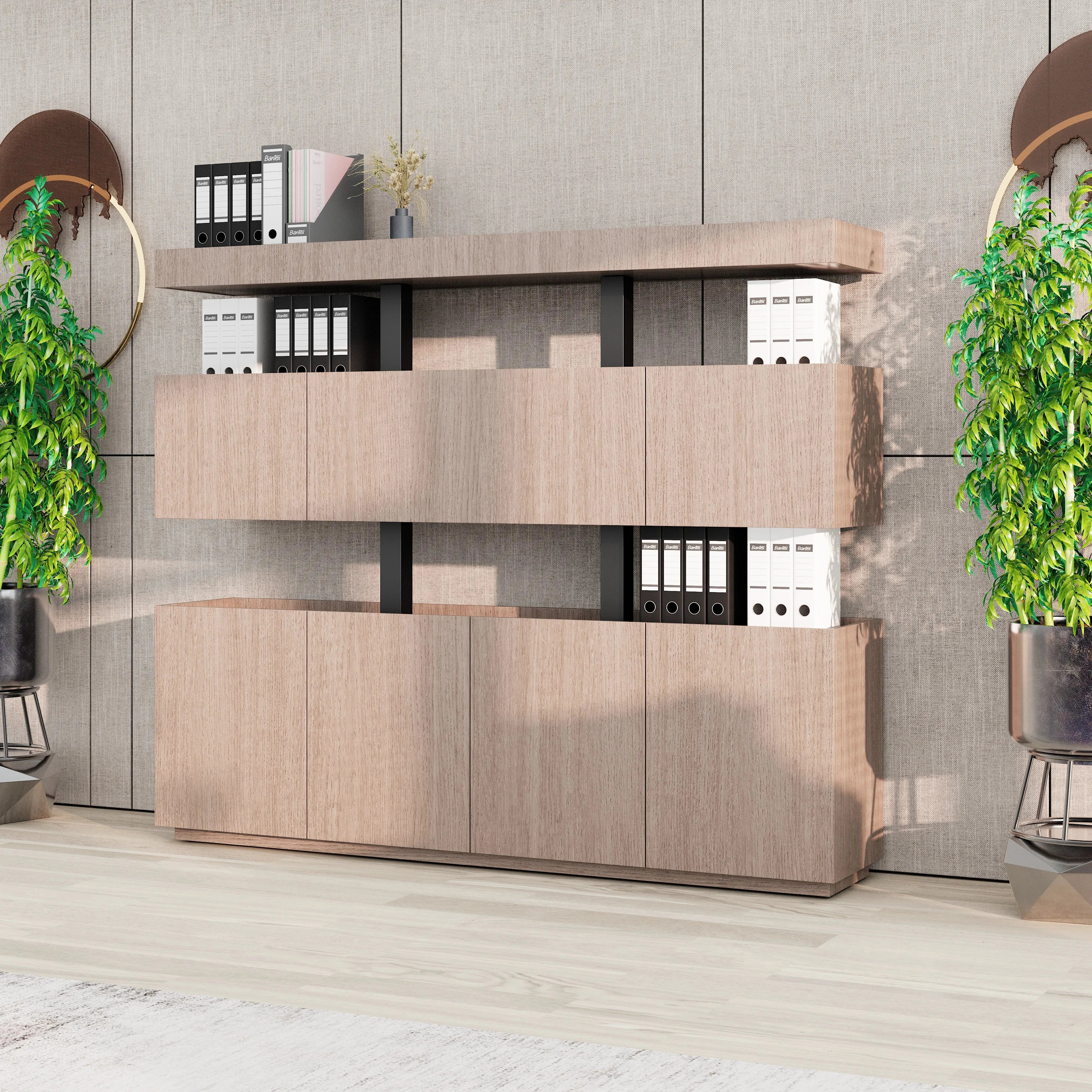 - Estanterías abiertas: cuenta con múltiples estantes abiertos, perfectos para exhibir libros, artículos decorativos u otros elementos esenciales.