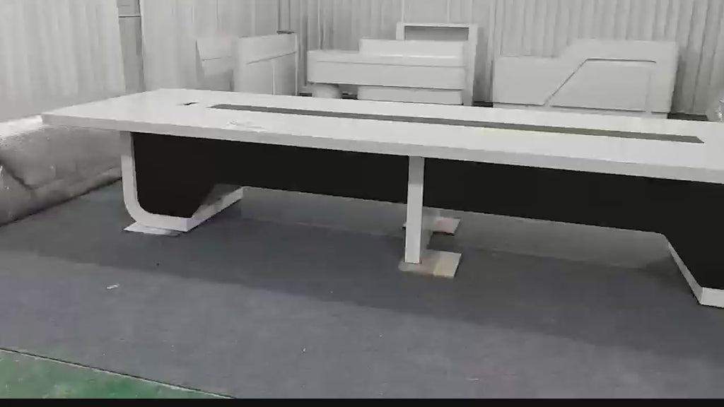 Elegir nuestra mesa de conferencias significa invertir en una calidad superior y un diseño elegante que realza cualquier oficina o espacio de reuniones. Fabricadas con materiales de primera calidad como MDF E1 y terminadas con un revestimiento de laca duradero, nuestras mesas están diseñadas para durar y soportar las demandas del uso diario. La estética moderna de la mesa agrega un toque profesional, lo que la convierte en un elemento destacado en cualquier habitación. Diseñada con la funcionalidad en mente, ofrece una amplia superficie para una variedad de necesidades de reuniones, ya sean sesiones de lluvia de ideas o presentaciones formales. Además, nuestra mesa de conferencias está disponible en varios tamaños y acabados, lo que le permite personalizarla para que coincida con la decoración de su oficina y los requisitos específicos. El revestimiento de laca no solo proporciona una superficie suave y fácil de limpiar, sino que también resiste las manchas y los rayones, lo que garantiza que su mesa se vea impecable durante años.