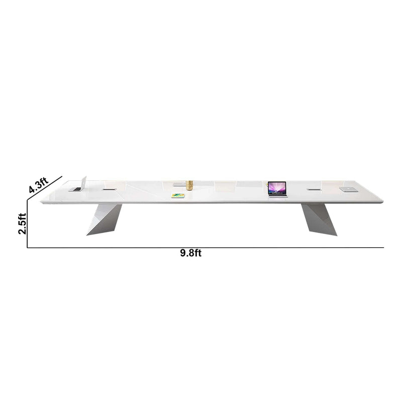 - Design Features: Ultra-slim rectangular top with rounded corners, angled geometric legs for stability and visual contrast