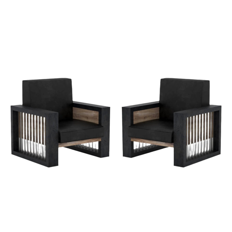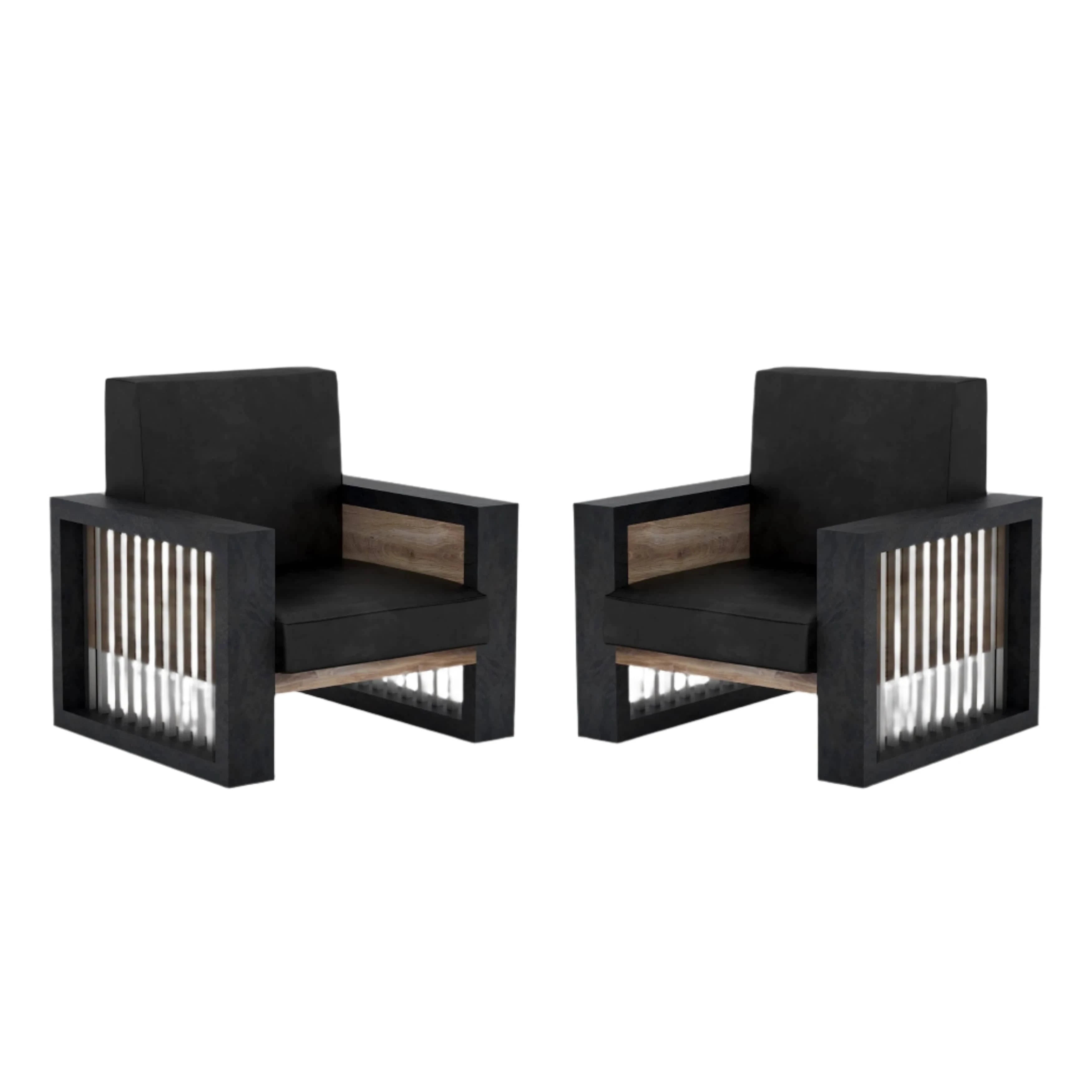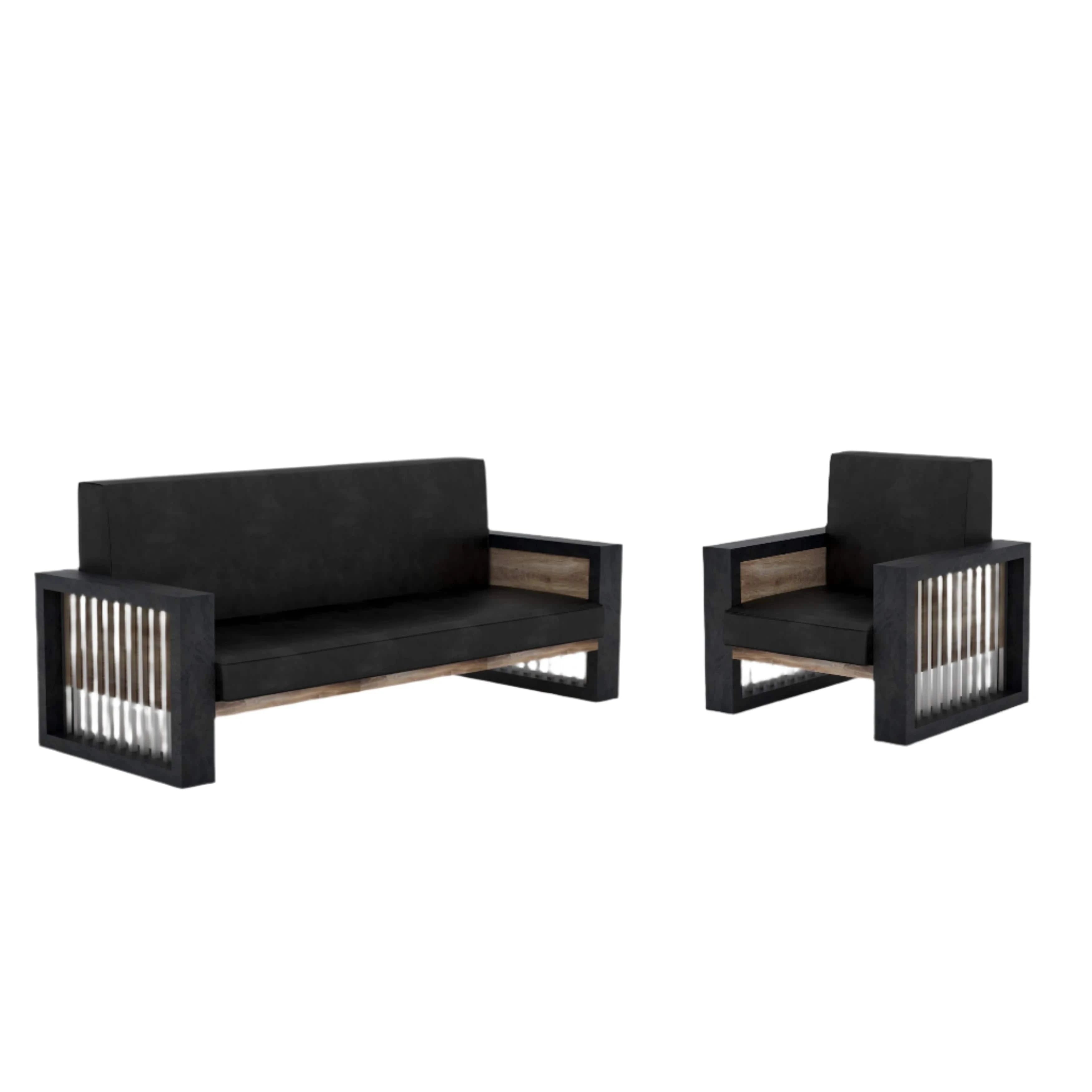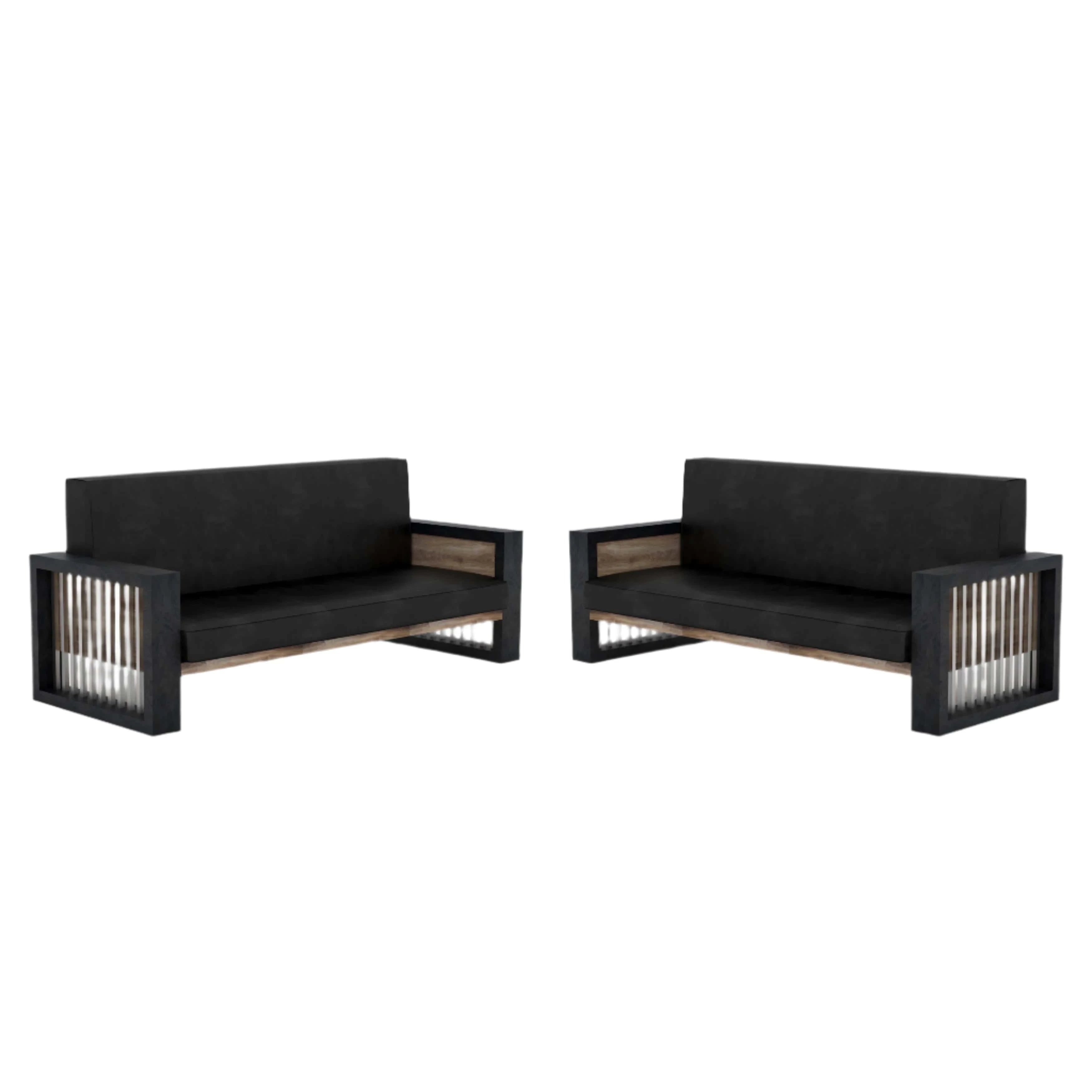 Seating is upholstered in charcoal black PU leather, a practical material that offers the look and feel of leather while being easy to maintain and more resistant to daily wear. Beneath the upholstery, a firm foam cushion provides a comfortable balance of support and softness, maintaining its shape even after extended use. The pairing of the sleek black surface with the natural oak-toned frame brings a striking visual balance that reads both warm and modern.