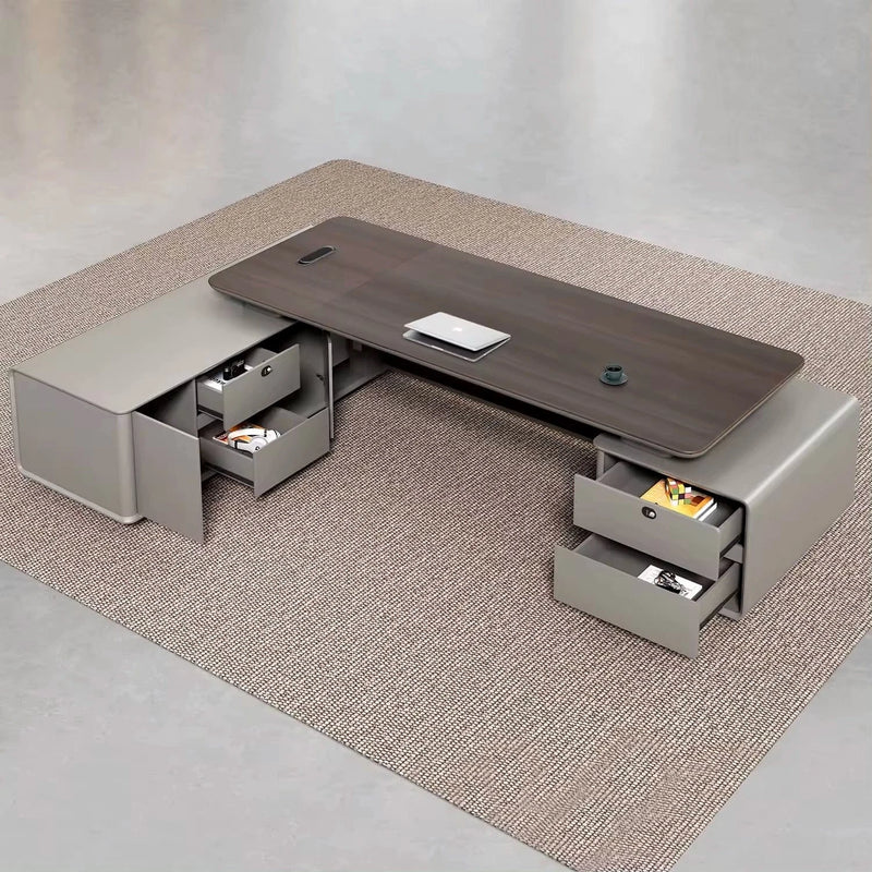 With 4 soft-close drawers (2 of which are lockable), 2 closed cabinets, and 1 open cabinet, the desk offers a mix of concealed and accessible storage options, allowing you to keep both important documents and office supplies organized and secure. The lockable drawers ensure that sensitive materials remain safely stored.