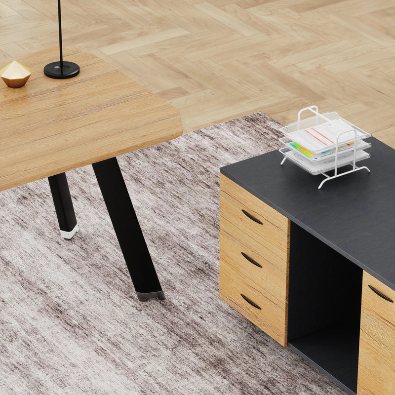 A key feature of the Bentley is its interchangeable return, which can be configured on either side to accommodate your space layout and work preferences. Storage is thoughtfully integrated, including three soft-close drawers, a closed cabinet, and an open storage compartment, ensuring that files, supplies, and devices are efficiently organized yet easily accessible.