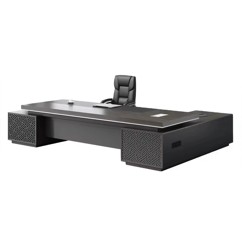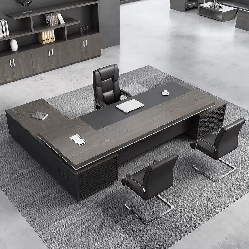 The Caspian Executive Desk is a commanding L-shaped workspace tailored for professionals who seek functional refinement paired with bold visual structure in executive settings.