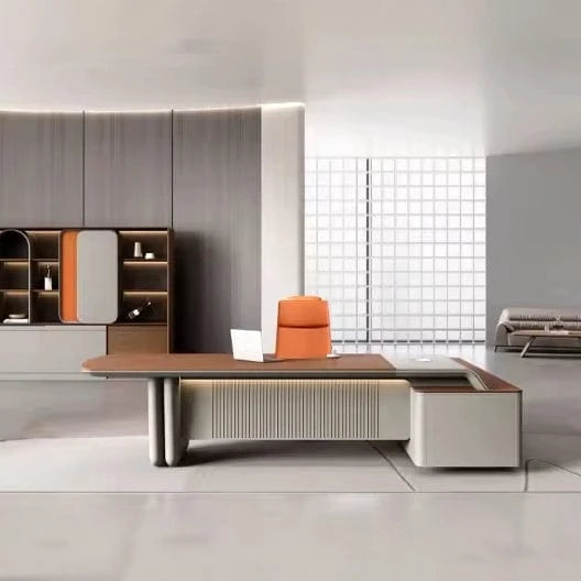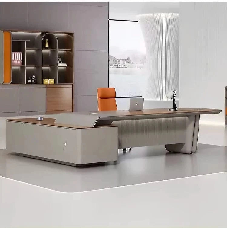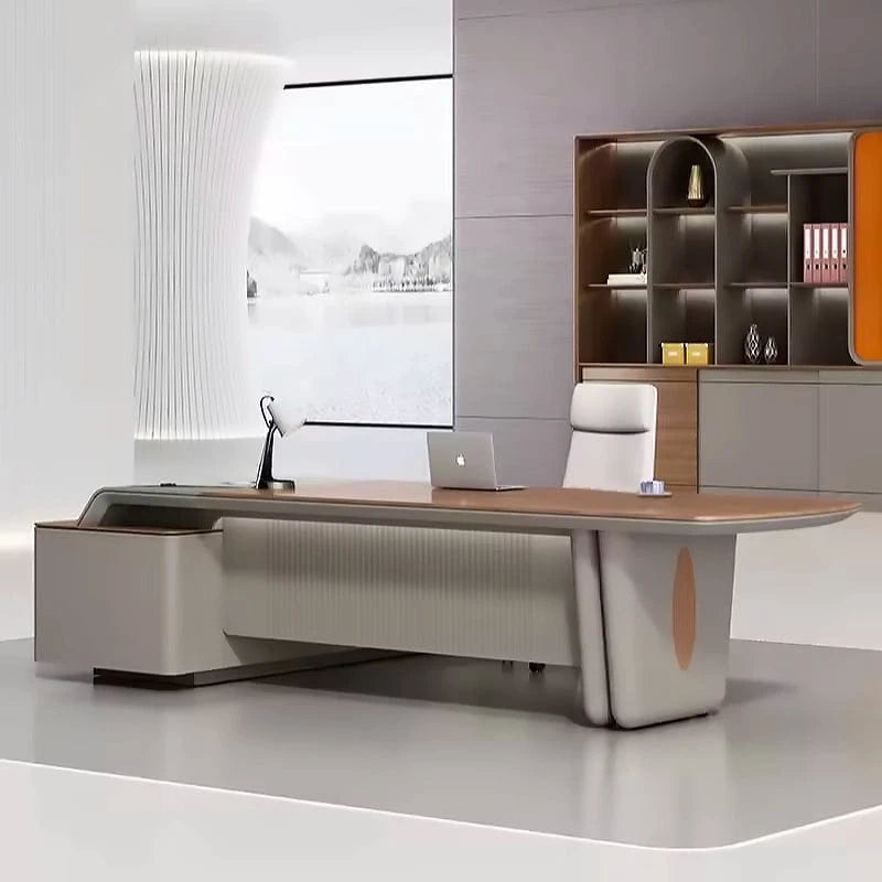 The Cassiel Executive Desk delivers a balance of modern refinement and workspace practicality, designed to meet the needs of dynamic professional environments. It is crafted from refined E1-grade Medium Density Fiberboard, known for its high strength-to-weight ratio and engineered consistency. This advanced MDF material offers long-term durability while maintaining a low formaldehyde emission level, making it a safer, more eco-conscious solution for indoor use. The surface is finished with laminated layering in a sophisticated Oakwood Brown and Ash Gray blend, offering both a visual warmth and resistance to scratches, moisture, and daily wear.