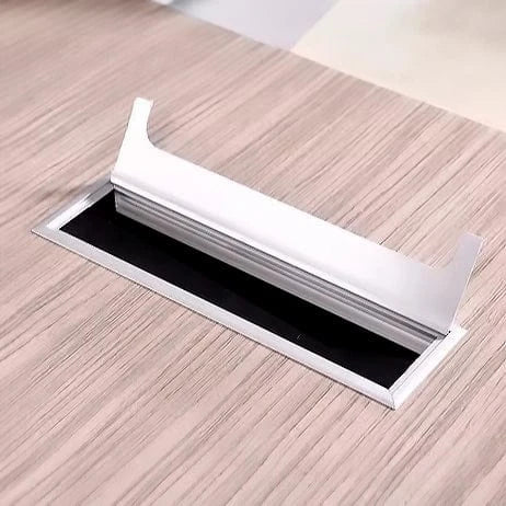 Equipped with steel support legs, the frame ensures outstanding load capacity and impact resistance while contributing to the desk's modern aesthetic. The desktop is outfitted with integrated USB ports and multimedia outlets that provide direct access to power and connectivity. In addition, two electrical knockout panels are built into the steel legs, allowing for customized installation of power or data lines without disrupting the desk's clean design.