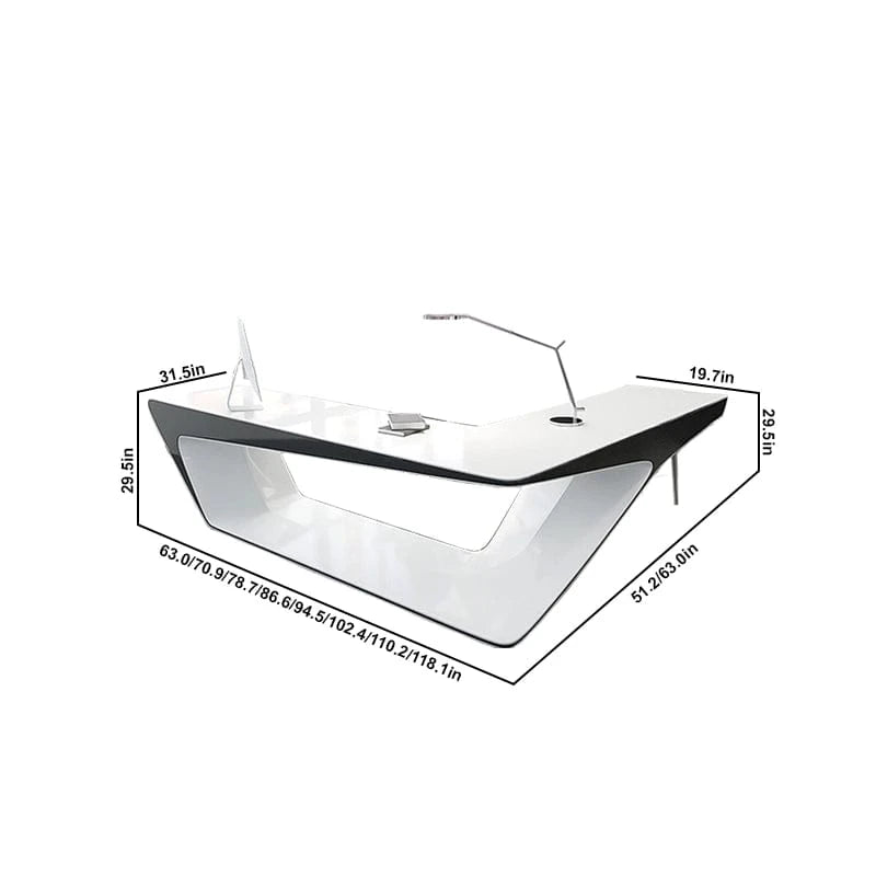 Crafted from E1-grade MDF and finished with a premium lacquer coating, the desk delivers long-term structural reliability along with a high-gloss surface that resists moisture, discoloration, and minor abrasions. The MDF core provides a dense, stable base that minimizes flexing, while the lacquer finish enhances light reflectivity and adds a smooth, easy-to-clean texture. Together, these materials offer a refined look that withstands the demands of frequent professional use.