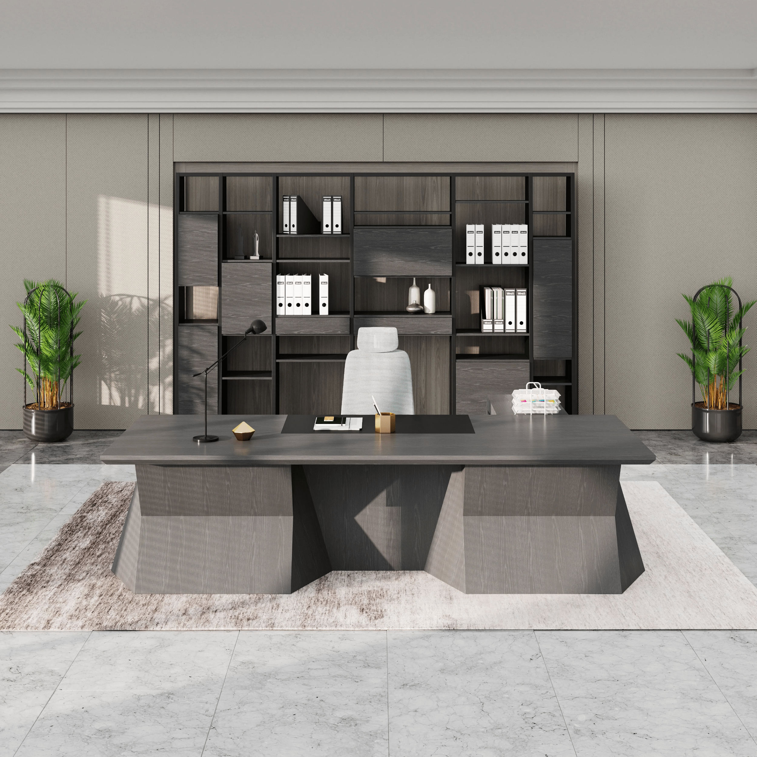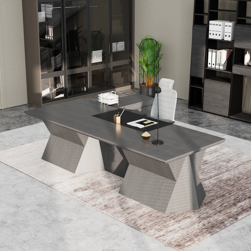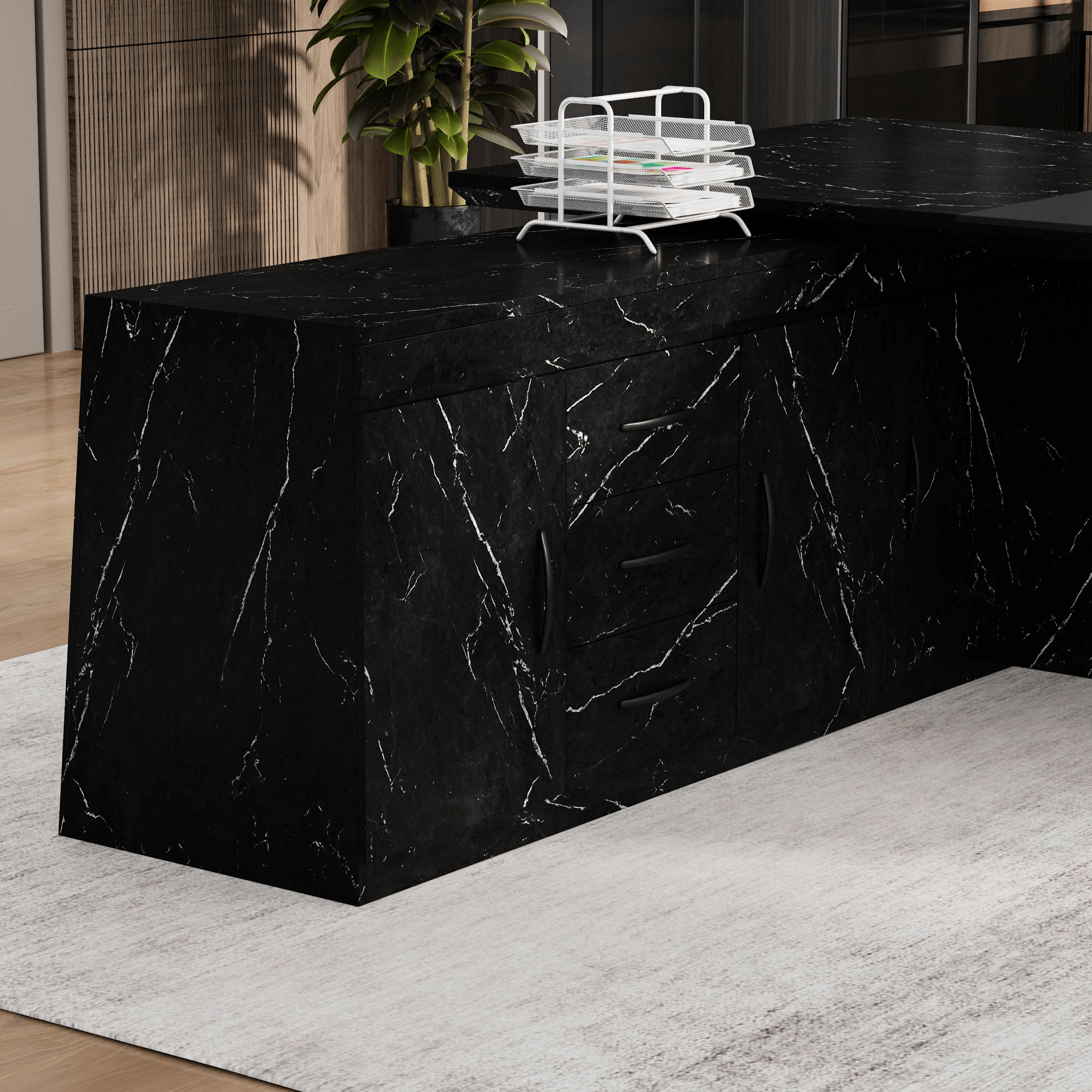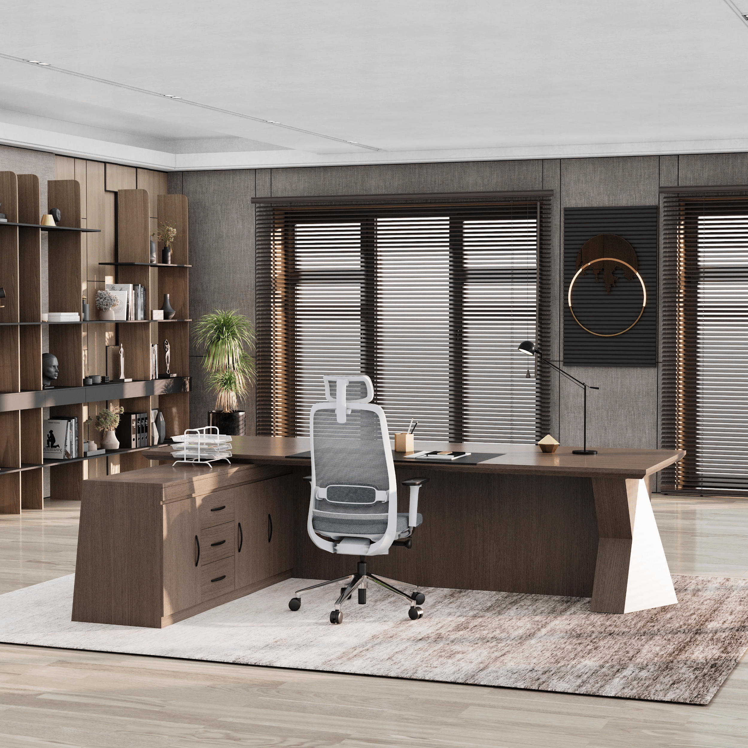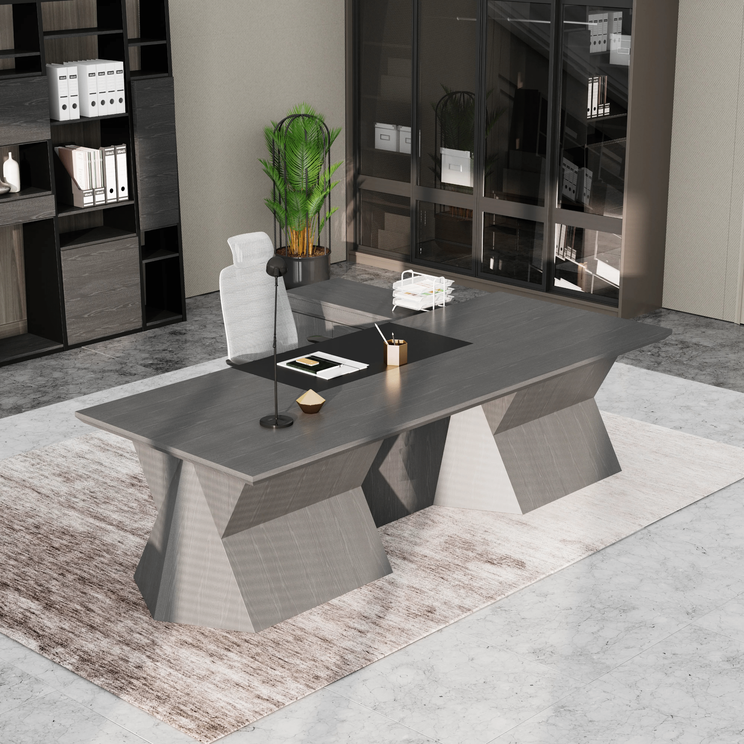This executive desk offers generous storage with three drawers for stationery and daily-use items, along with three closed cabinets that provide secure, concealed storage for files, tech accessories, or personal items. The expansive desktop and legroom ensure ample working space for up to two users or one user with auxiliary equipment.
