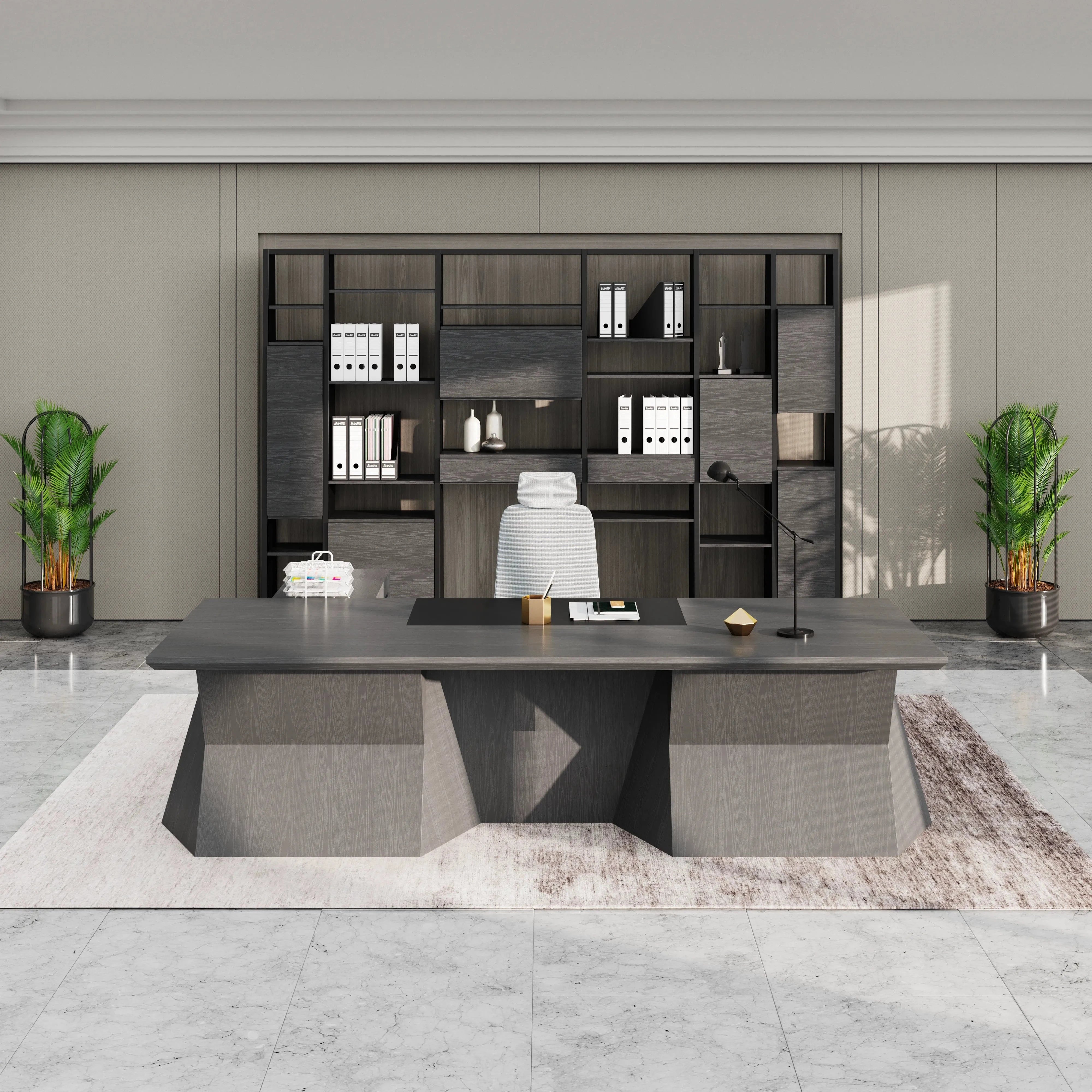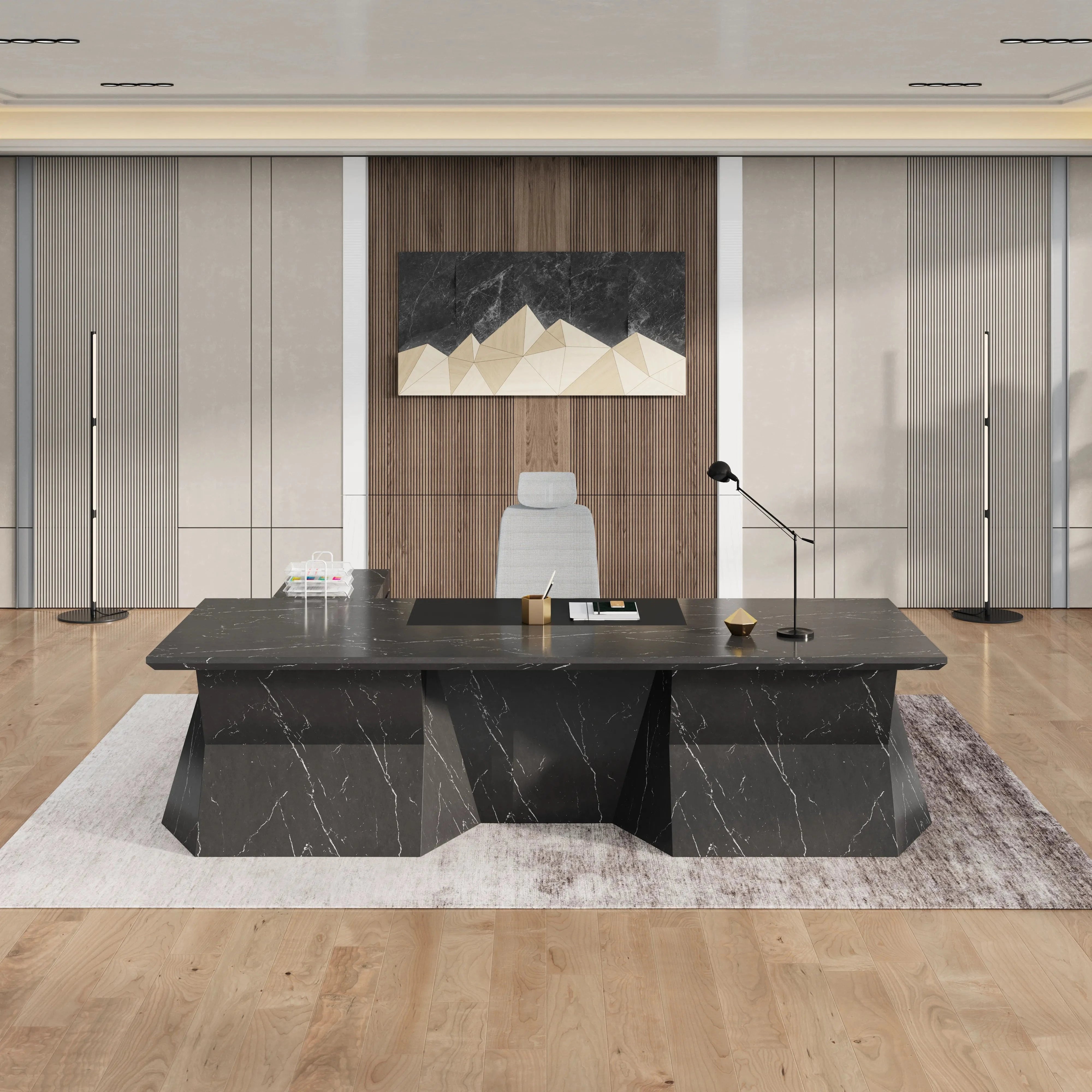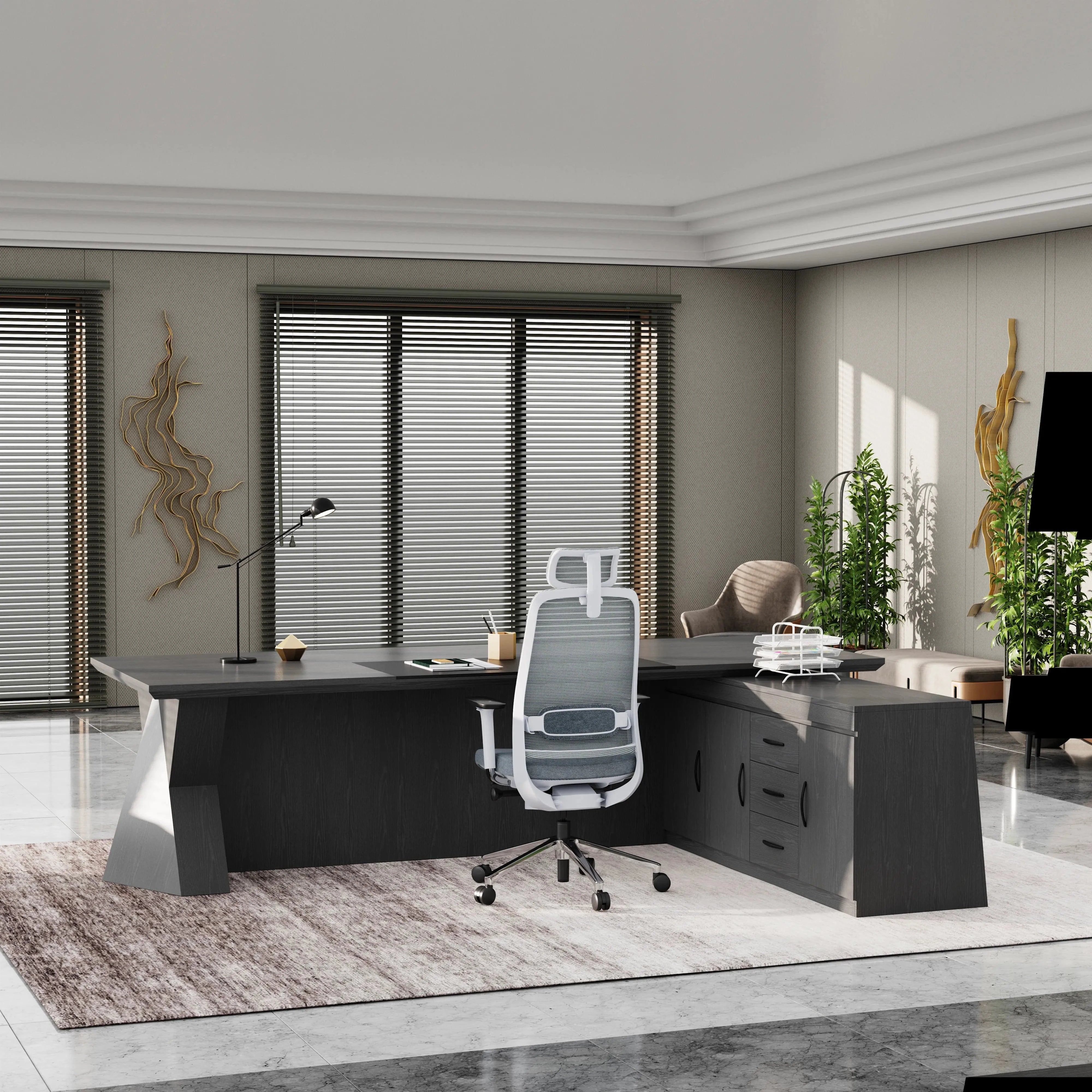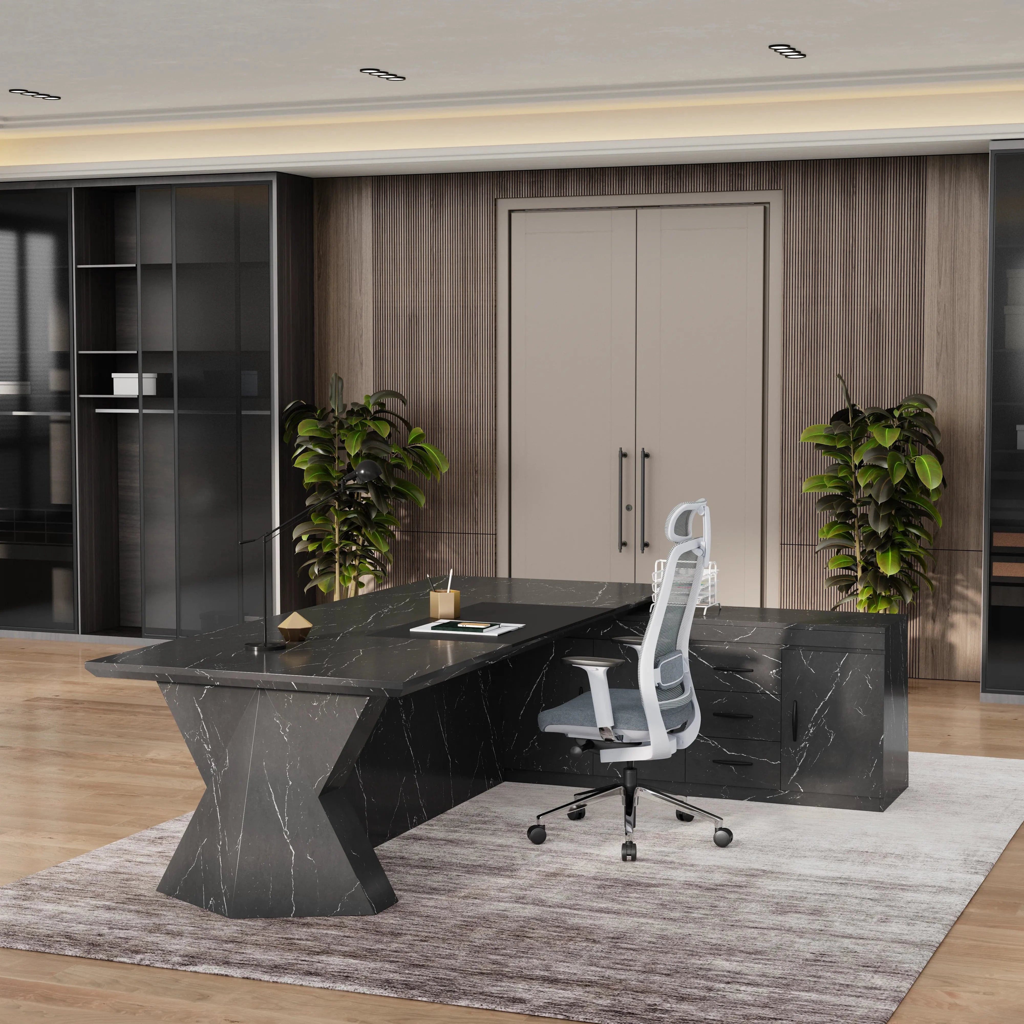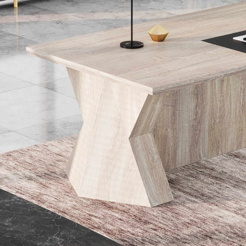 This executive desk offers generous storage with three drawers for stationery and daily-use items, along with three closed cabinets that provide secure, concealed storage for files, tech accessories, or personal items. The expansive desktop and legroom ensure ample working space for up to two users or one user with auxiliary equipment.