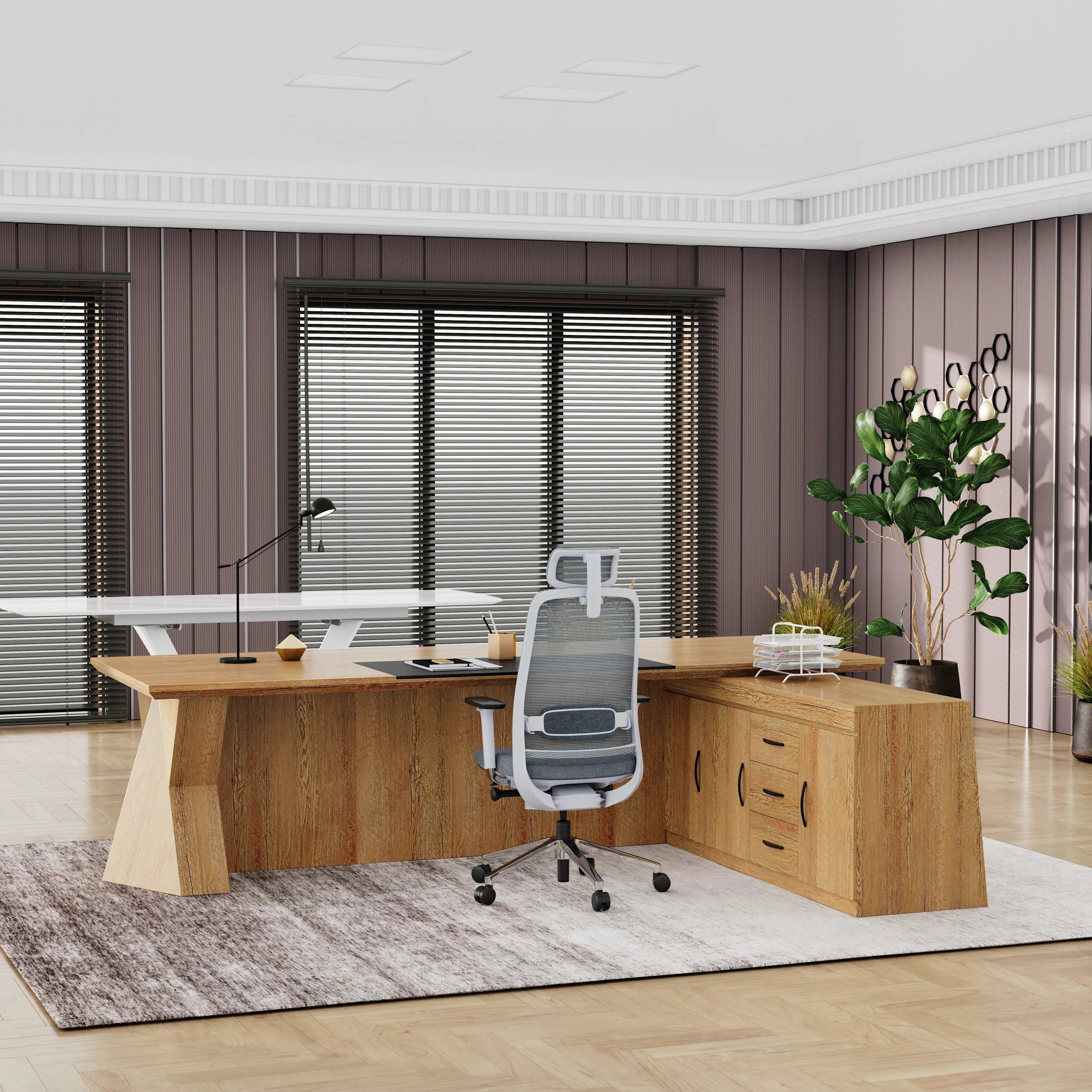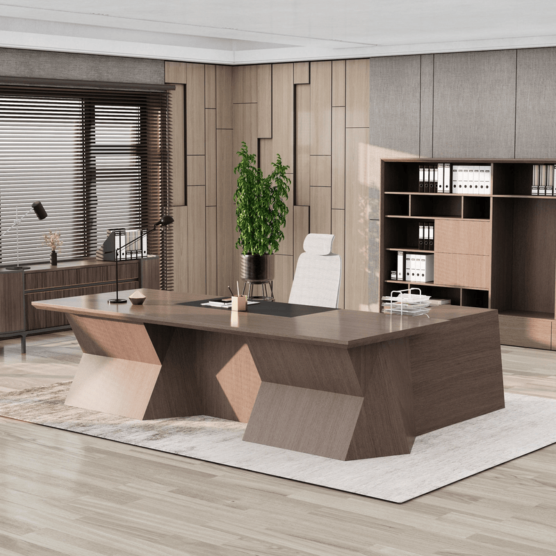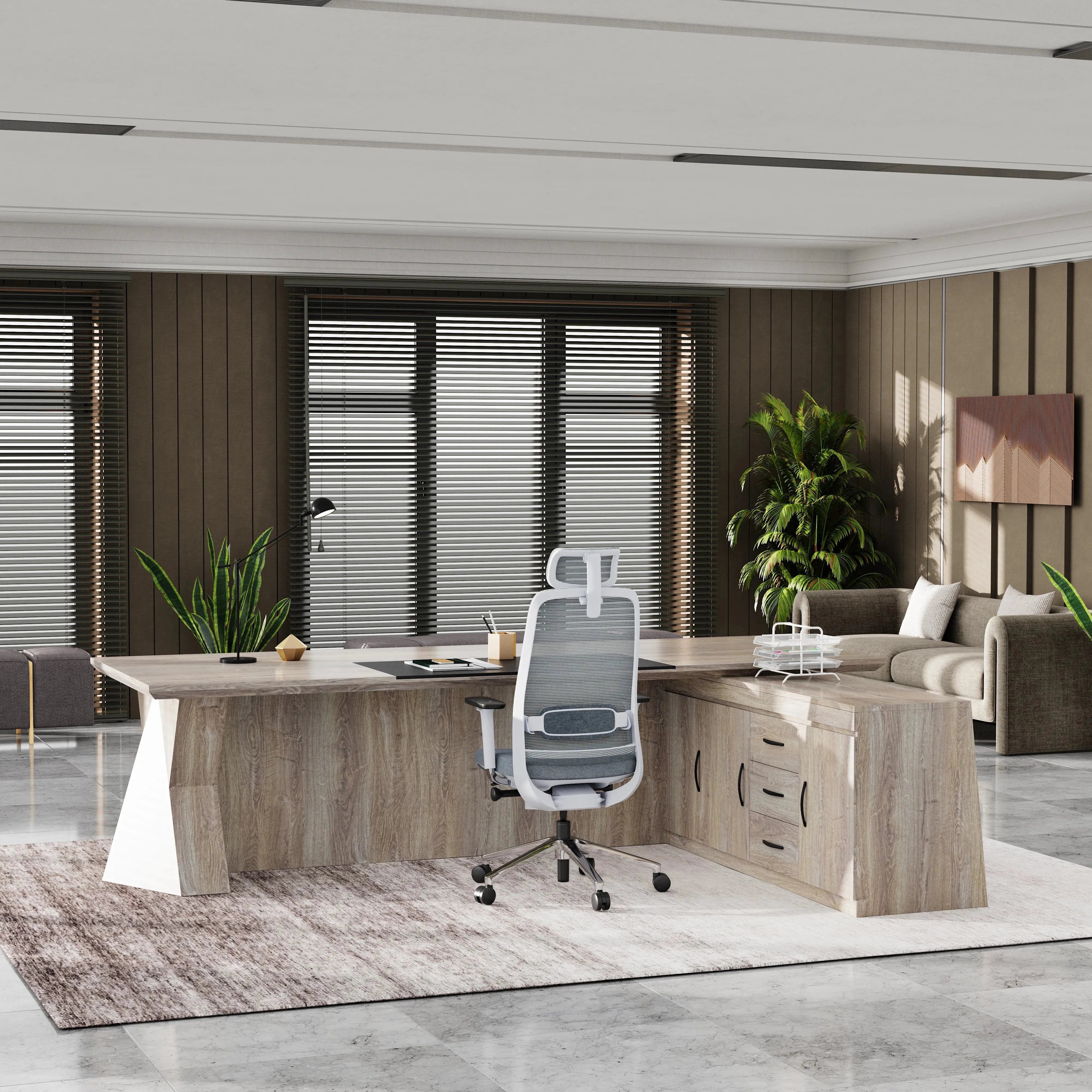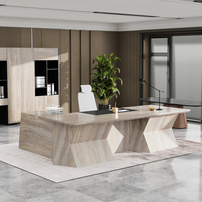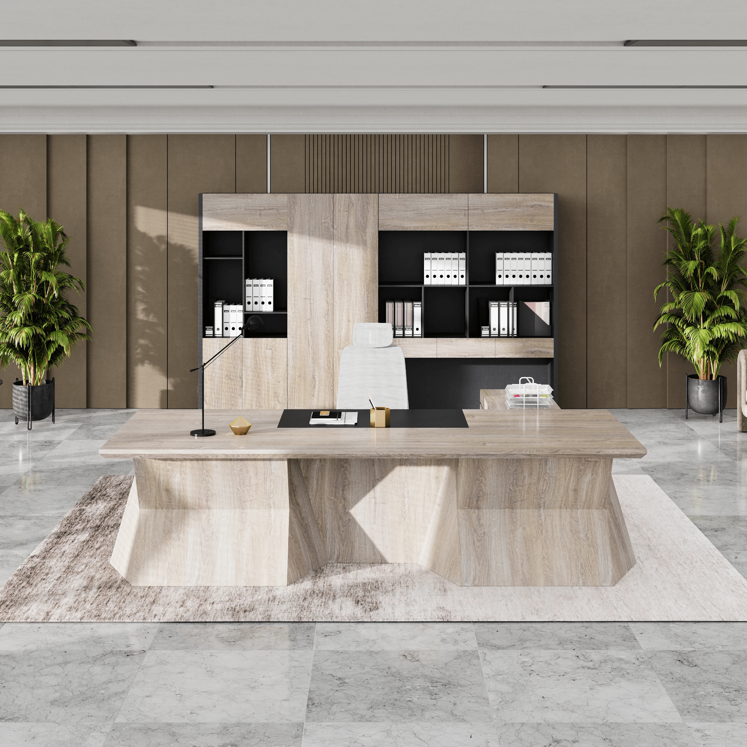 The Cupid Executive Desk from the Essence Mooreen Collection is a sophisticated workspace solution designed to elevate both the visual and functional quality of modern offices. Constructed from a durable MDF base layered with premium-grade MFC, the desk delivers an excellent balance of structure and surface resilience. This combination not only offers a refined matte texture but also provides enhanced resistance to moisture, heat, impact, and scratches, ensuring the desk retains its polished appearance even with daily use.