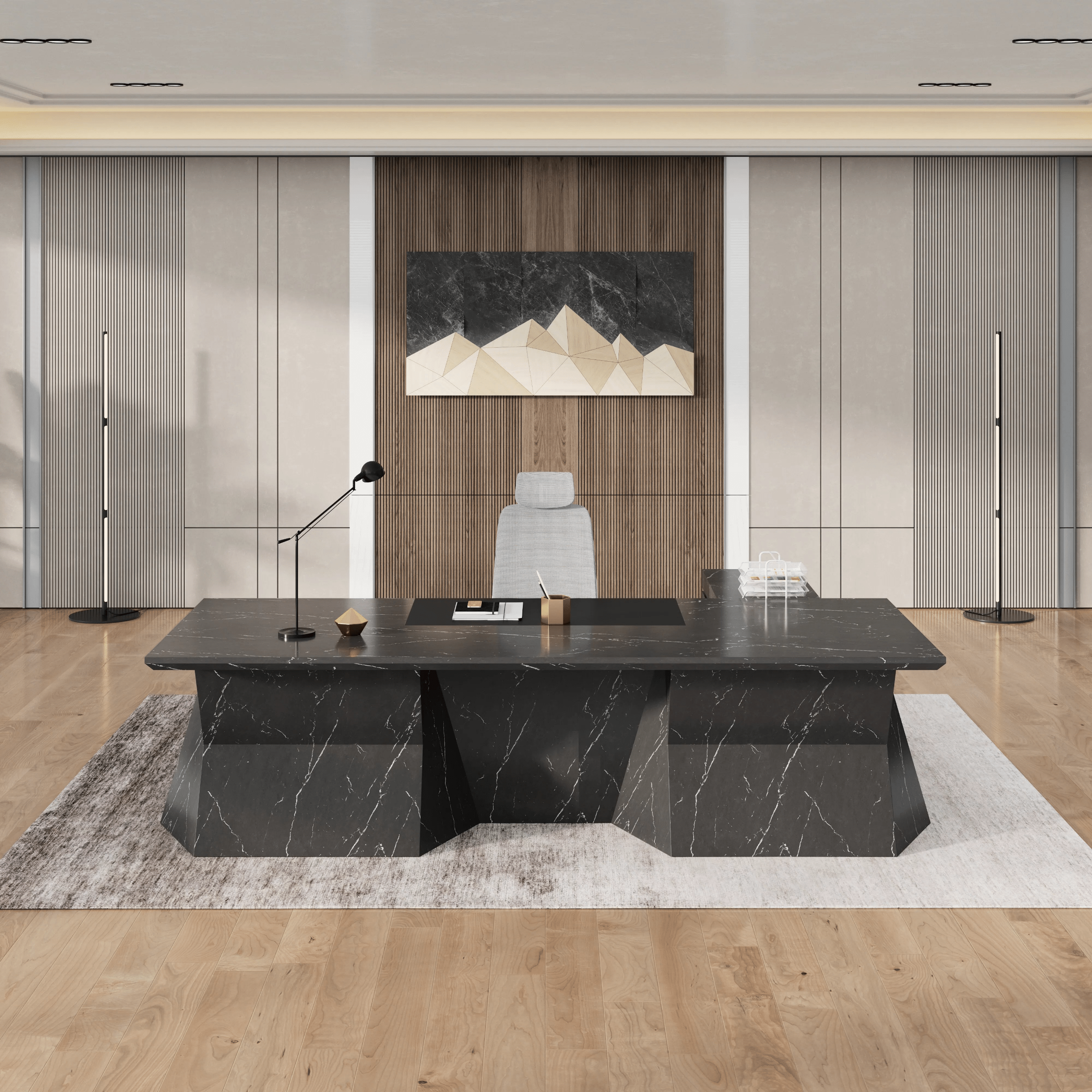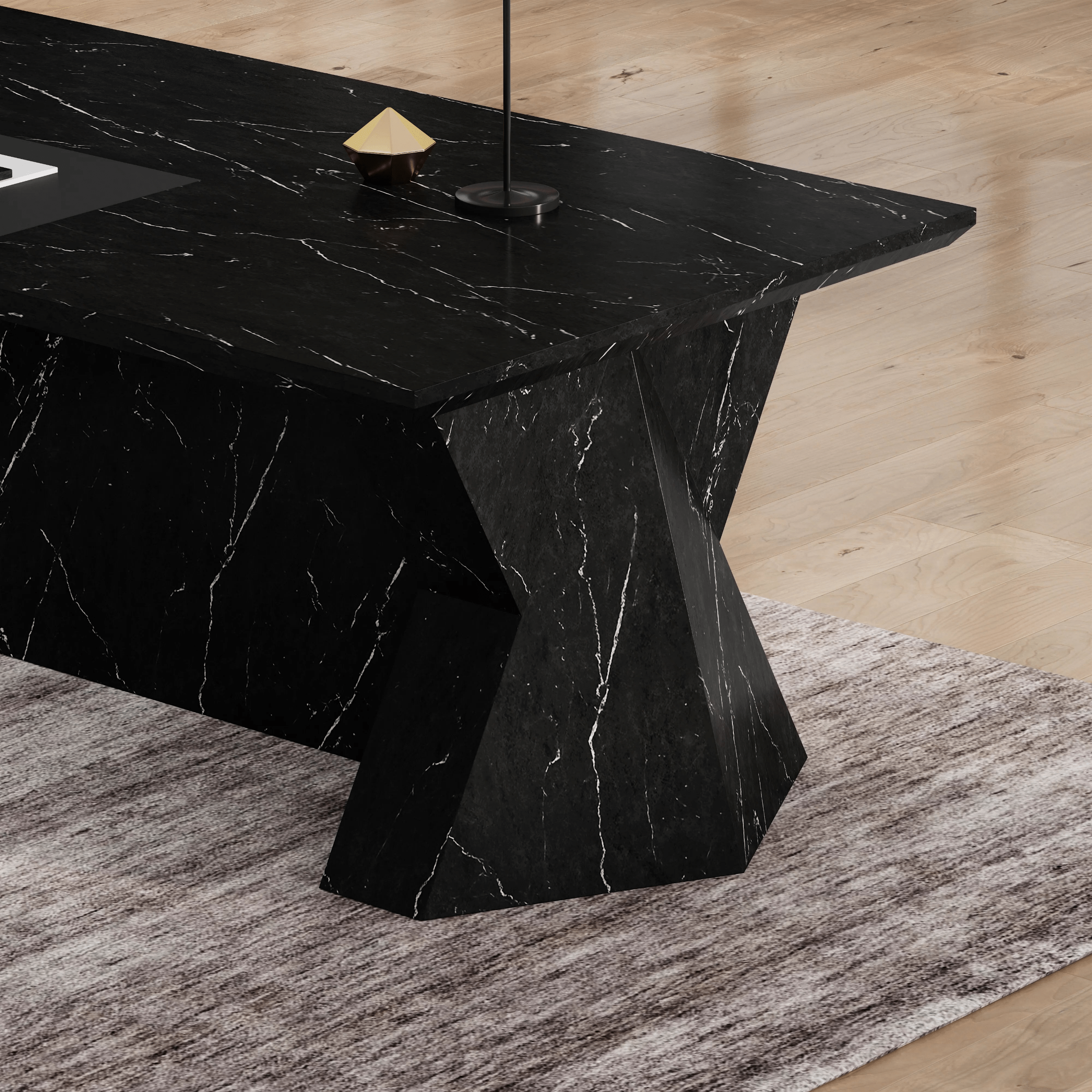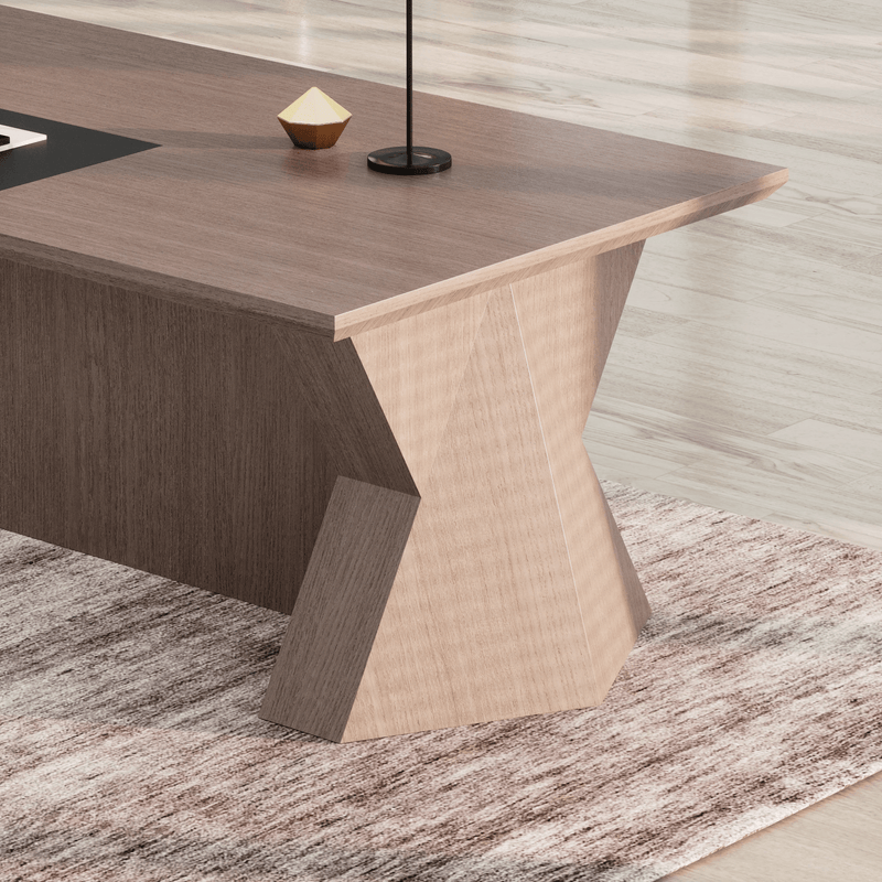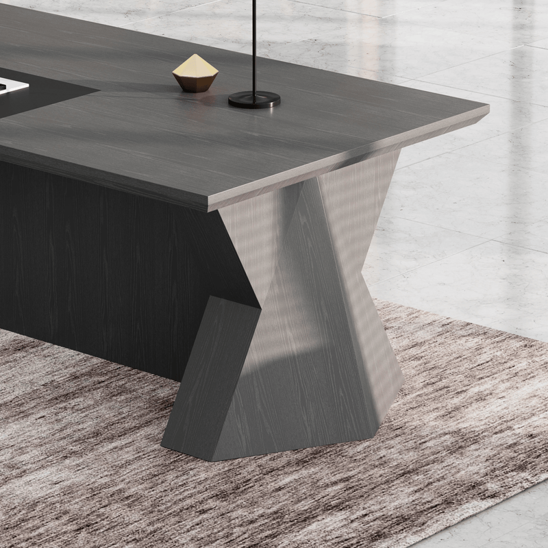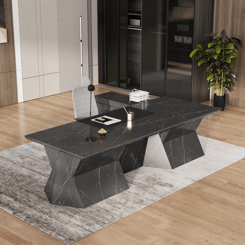 Engineered for long-term durability, the Cupid features an internal 35.4-inch steel beam embedded into the main desktop. This internal reinforcement increases weight-bearing capacity and ensures structural integrity under heavy loads, such as dual-monitor setups, printers, or decorative elements. A privacy-beveled slate at the front ensures both visual discretion and physical stability, making the design suitable for executive offices, home workspaces, and client-facing setups alike.