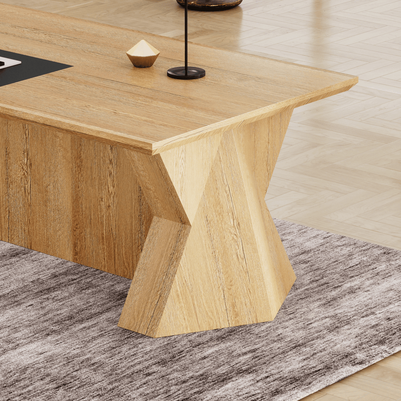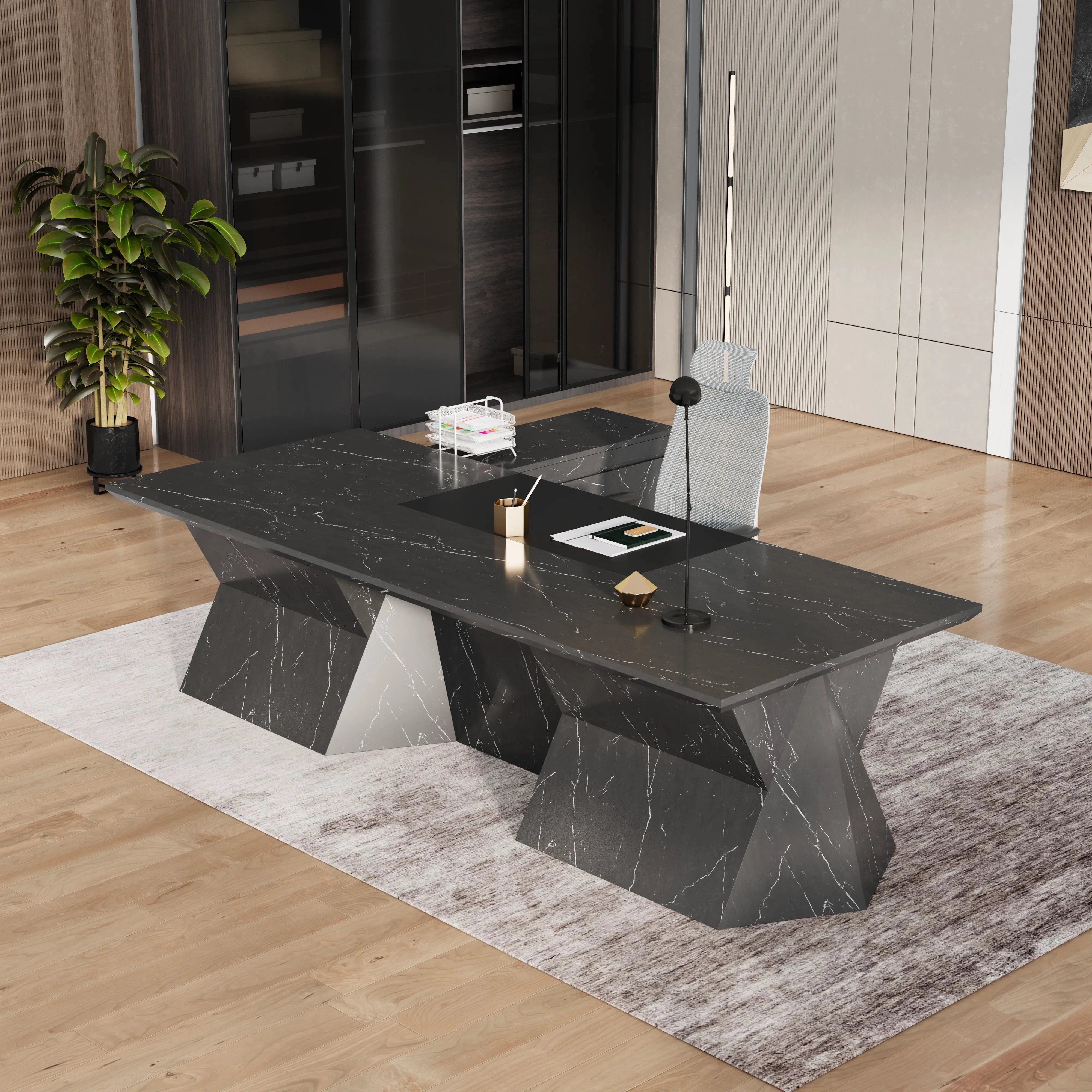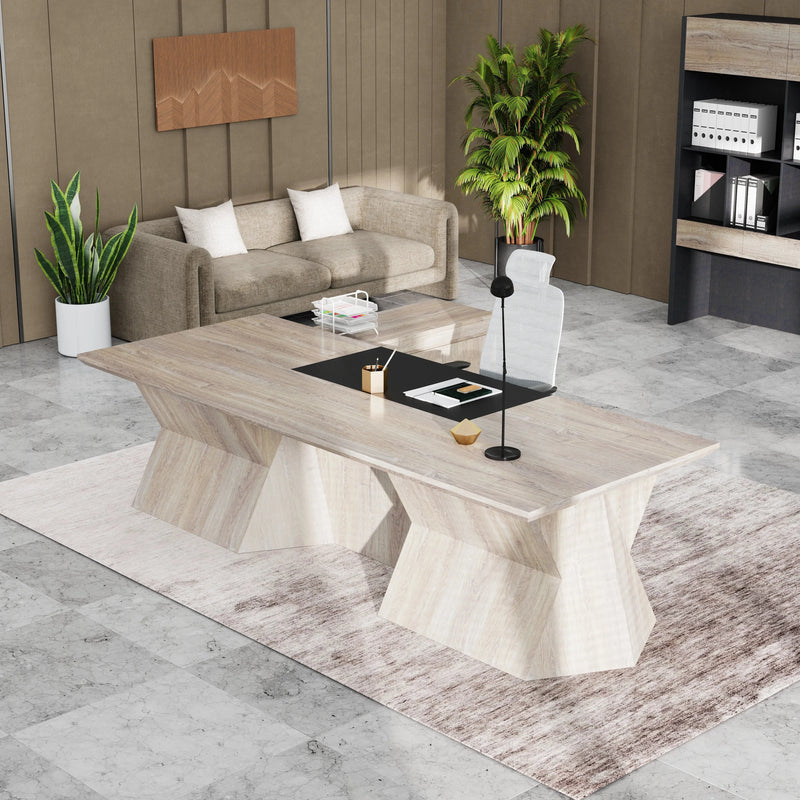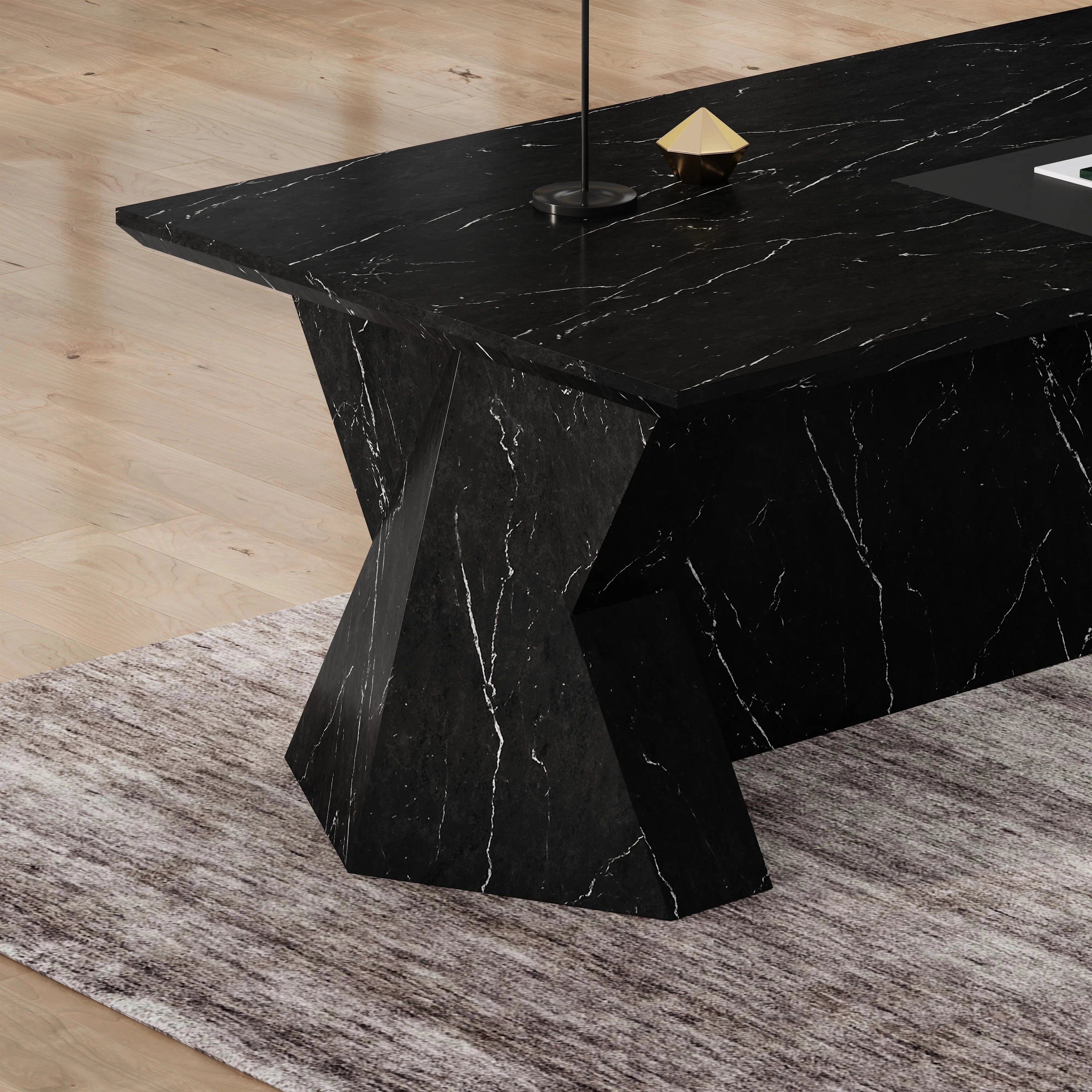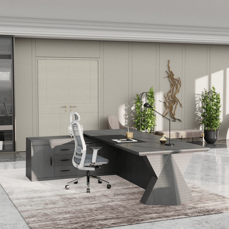 Engineered for long-term durability, the Cupid features an internal 35.4-inch steel beam embedded into the main desktop. This internal reinforcement increases weight-bearing capacity and ensures structural integrity under heavy loads, such as dual-monitor setups, printers, or decorative elements. A privacy-beveled slate at the front ensures both visual discretion and physical stability, making the design suitable for executive offices, home workspaces, and client-facing setups alike.