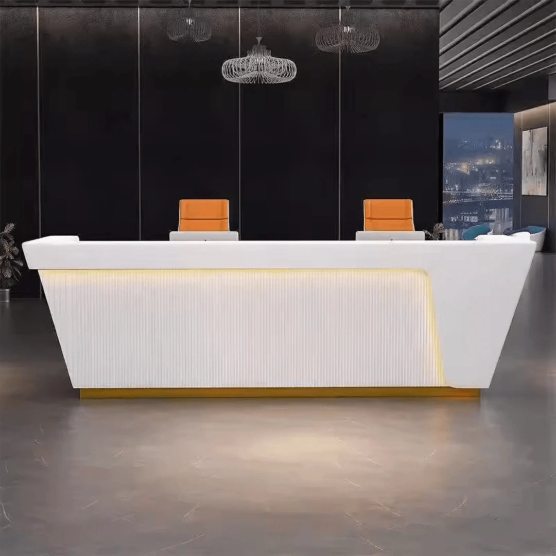 The Elliora Receptionist Desk is a commanding blend of geometry and glow, designed to elevate the first impression of modern office lobbies, creative studios, or high-end commercial spaces. With its sculptural profile and textural detail, Elliora balances bold form with practical functionality.