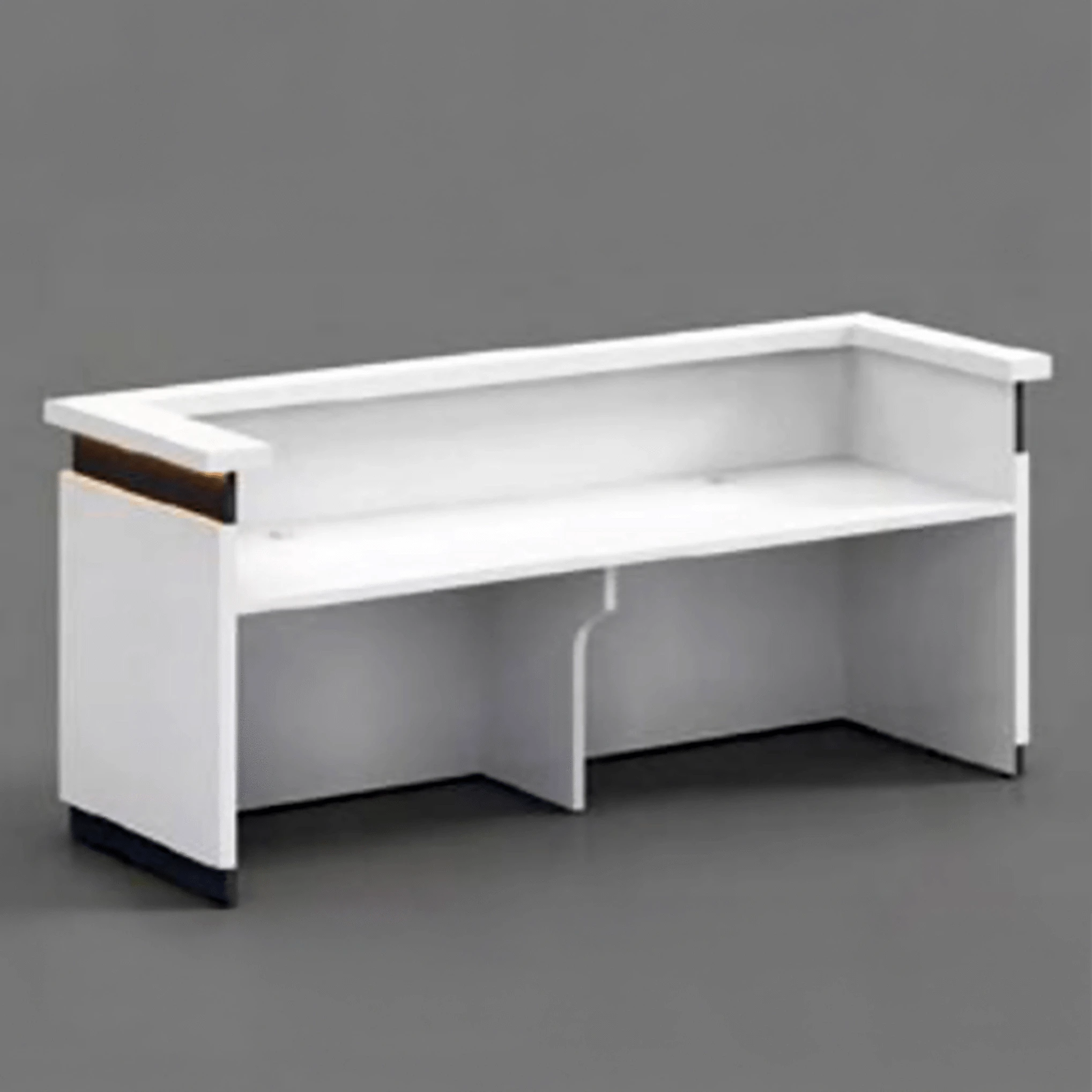 Available in two width options, Everly accommodates up to three staff members, depending on the selected size. Its expansive desktop provides generous room for monitors, stationery, and welcome materials, while the centered privacy slate creates a visual barrier that shields sensitive documents and equipment from view. The structure supports open interaction with visitors while maintaining professional discretion for employees.