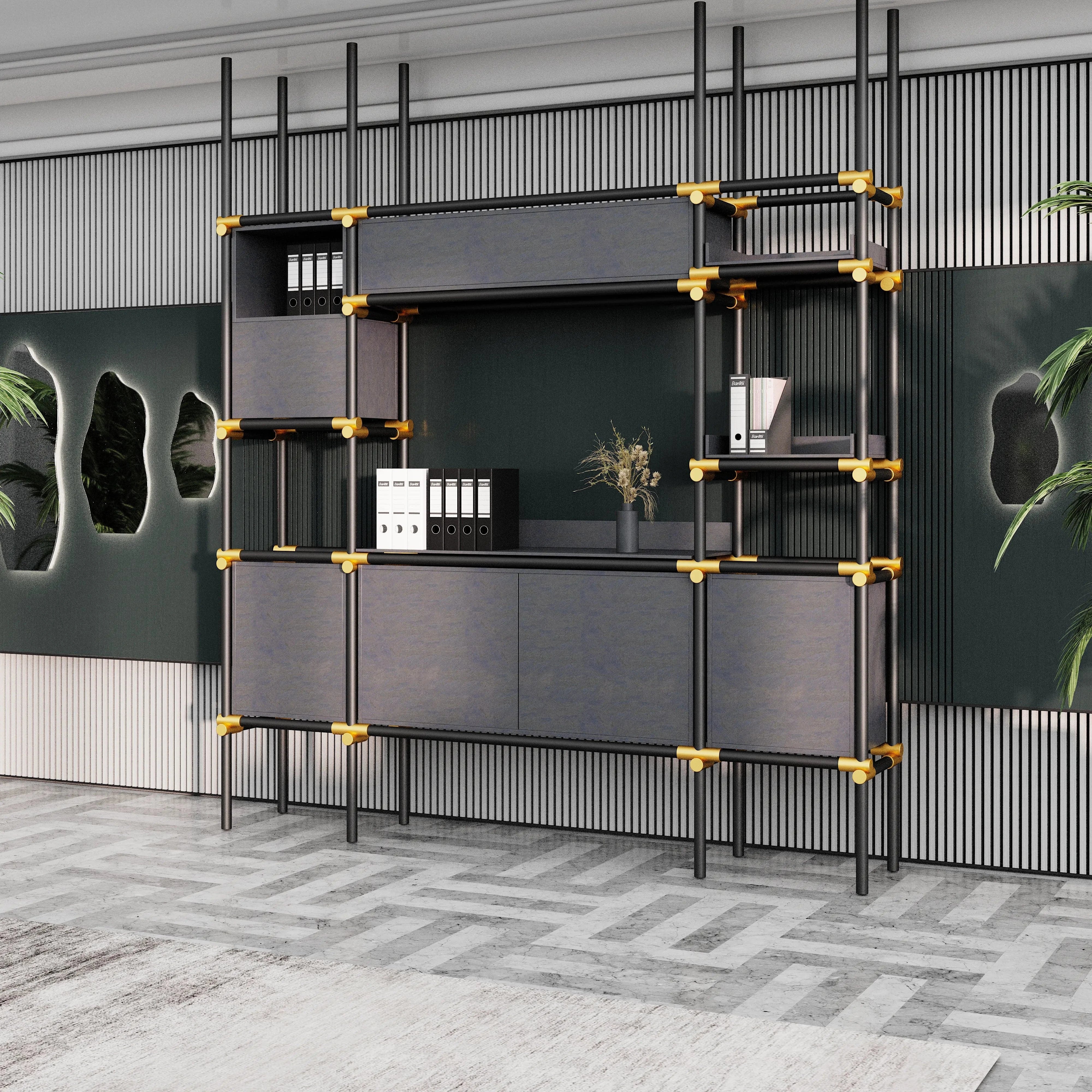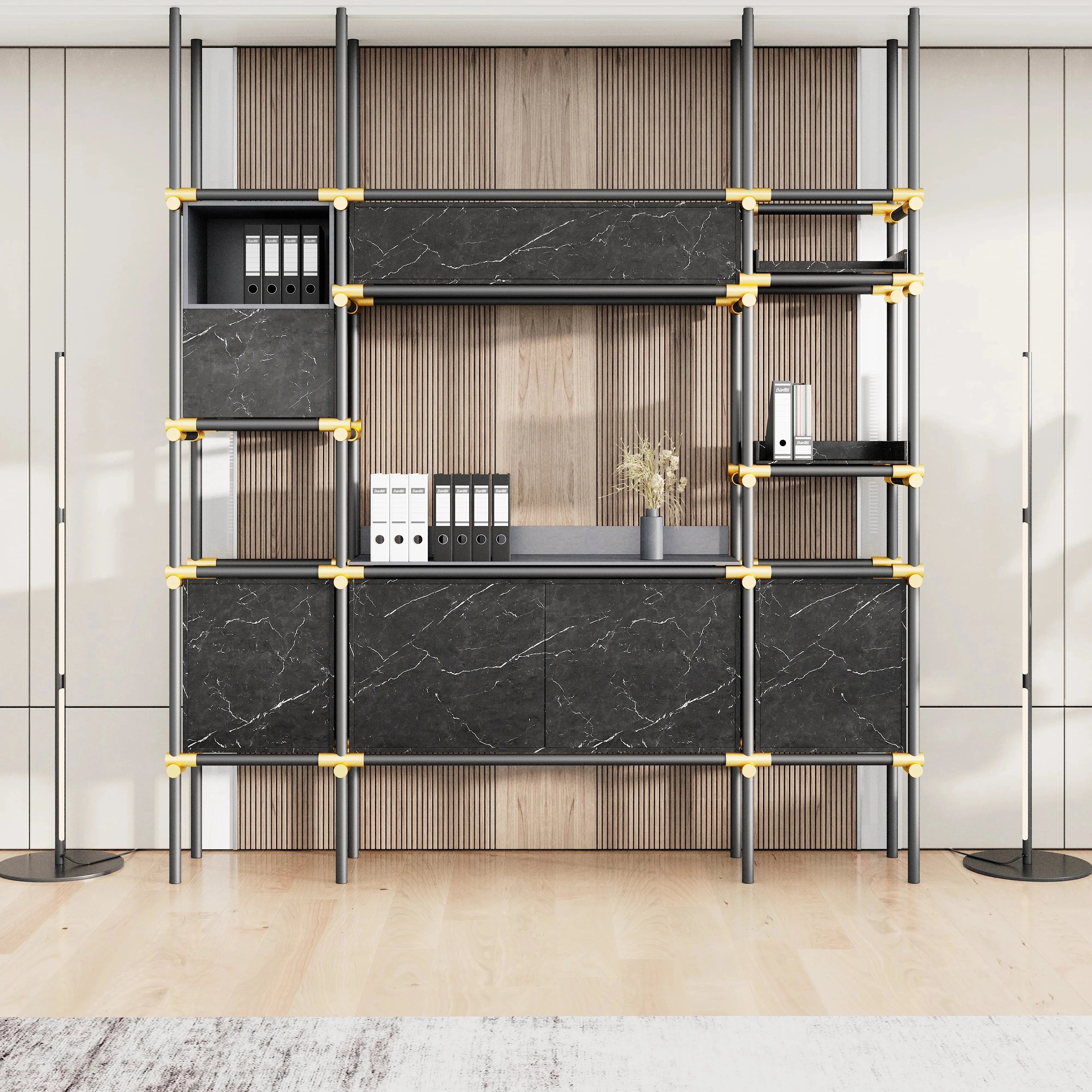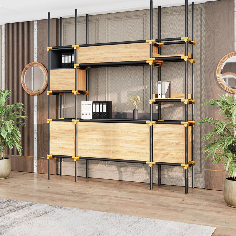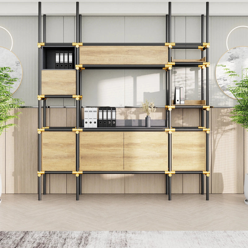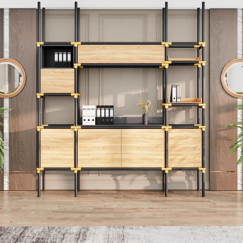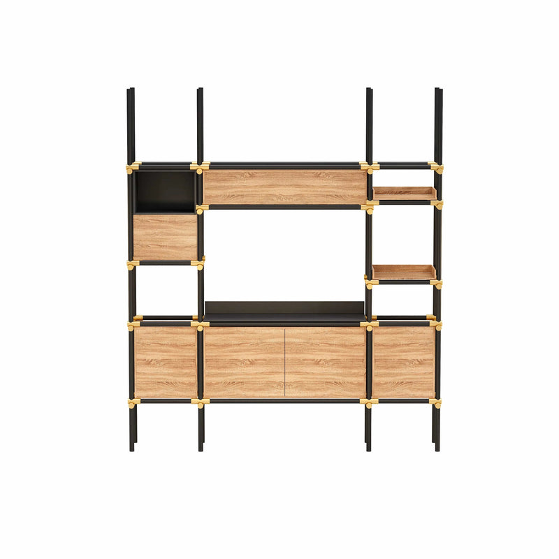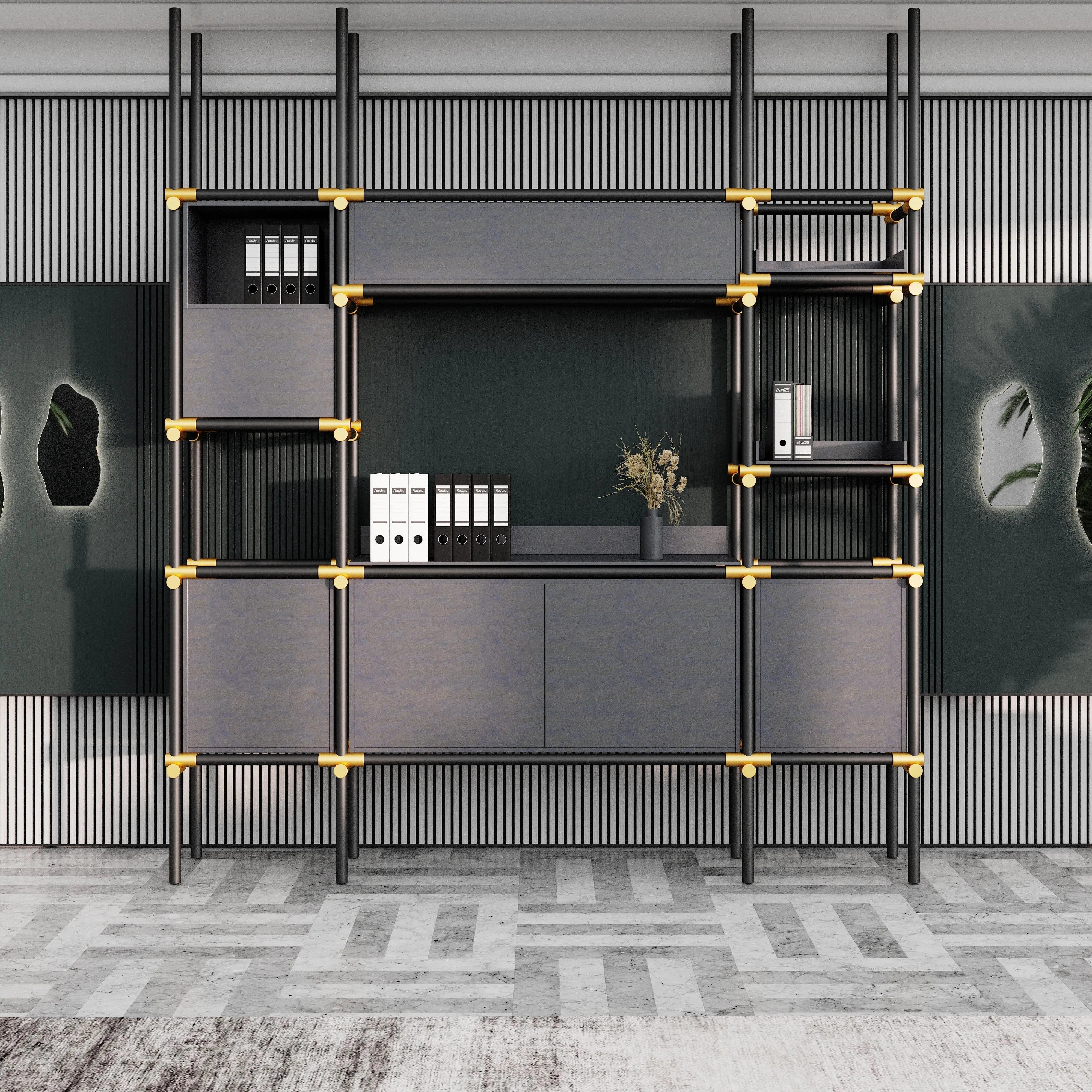 With 6 to 7 shelves, 4 to 5 cabinet doors, and 9 to 11 compartments total, the unit is ideal for showcasing books, decor, or art objects while keeping other essentials out of sight. The 3 to 4-level design ensures ample vertical storage without overwhelming the space.