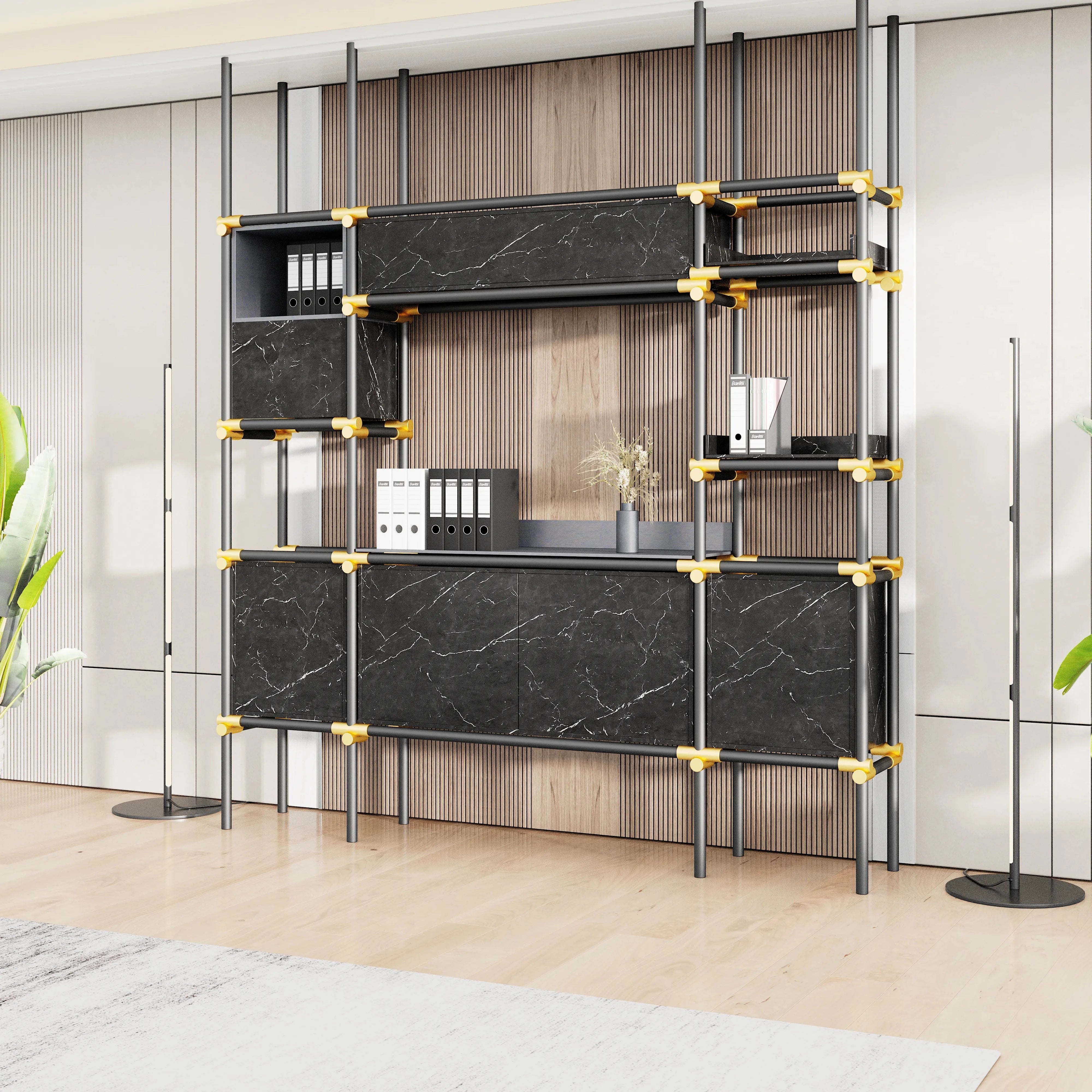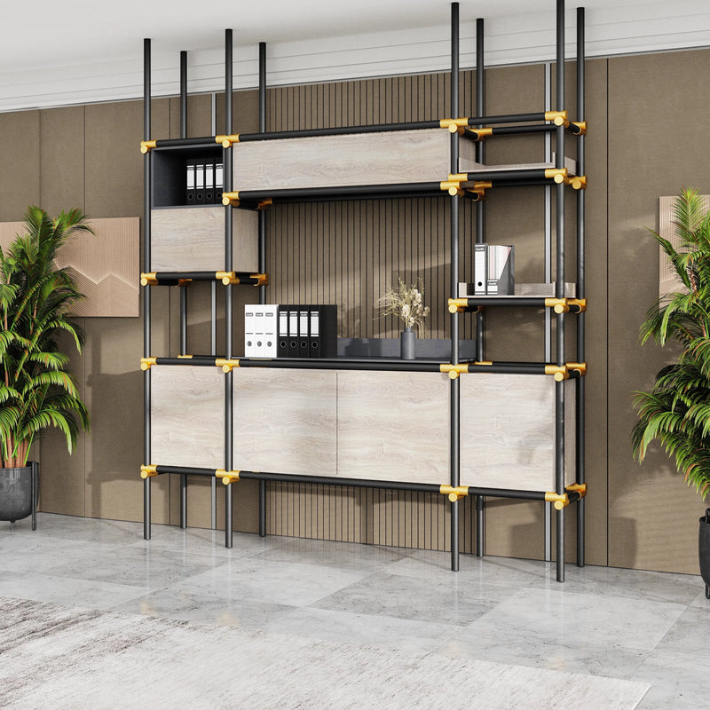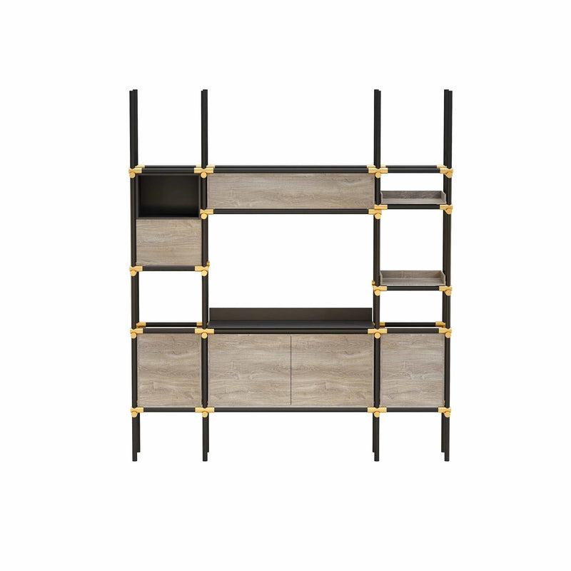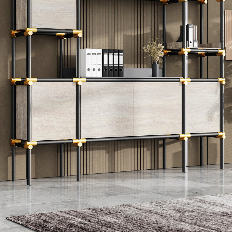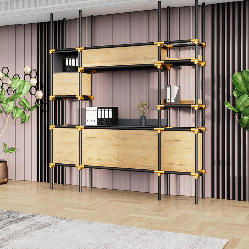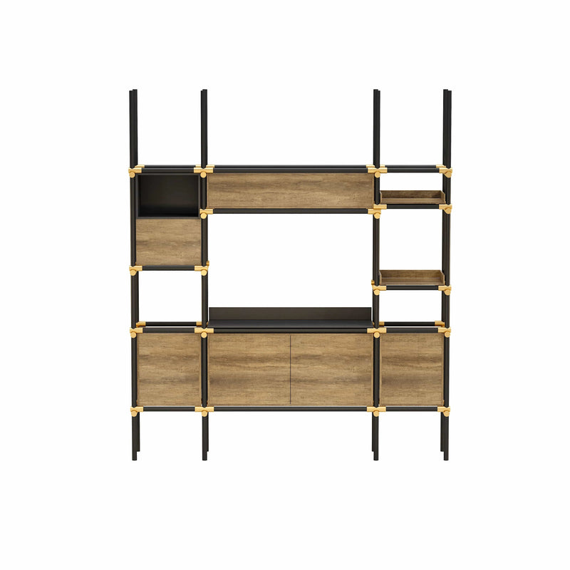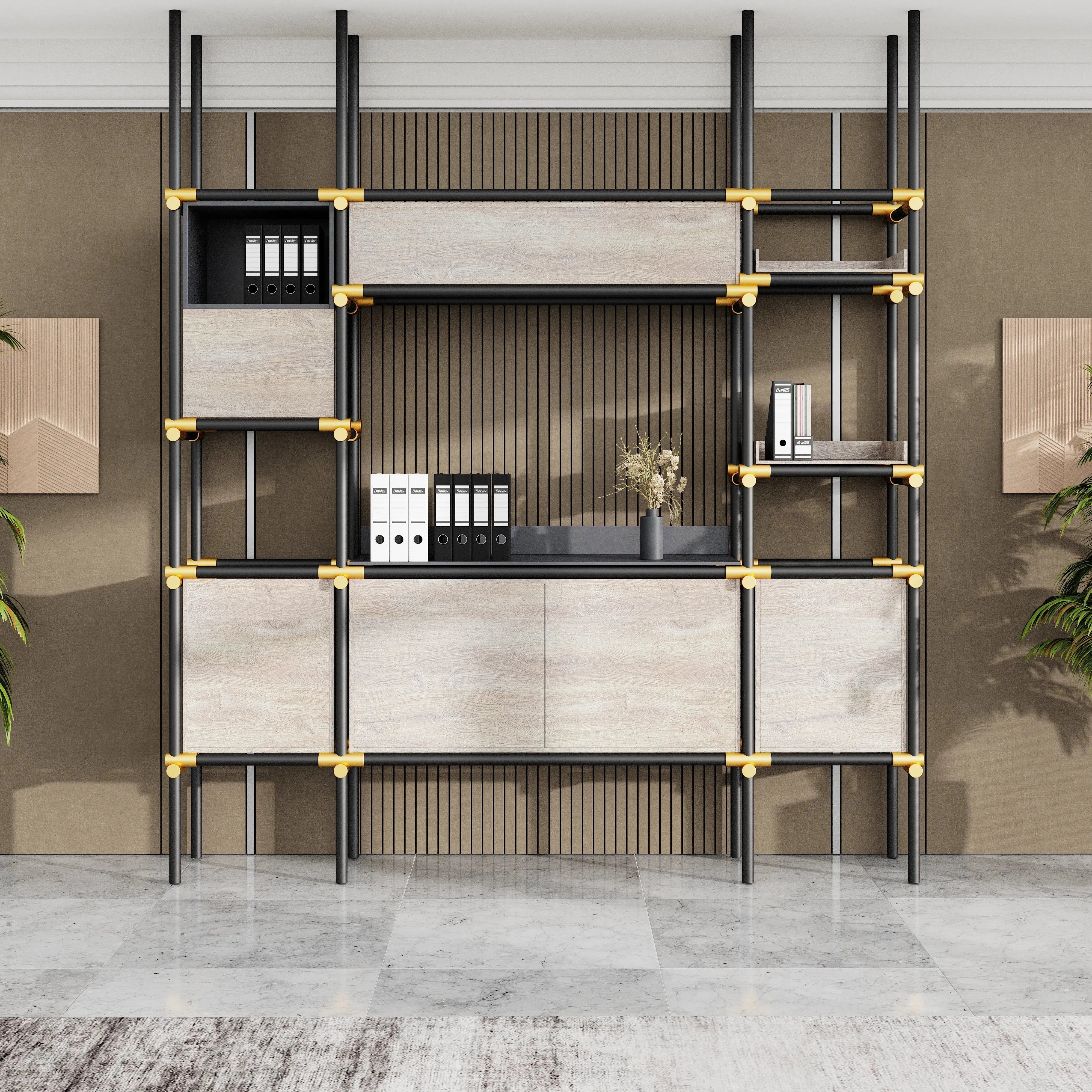 With 6 to 7 shelves, 4 to 5 cabinet doors, and 9 to 11 compartments total, the unit is ideal for showcasing books, decor, or art objects while keeping other essentials out of sight. The 3 to 4-level design ensures ample vertical storage without overwhelming the space.