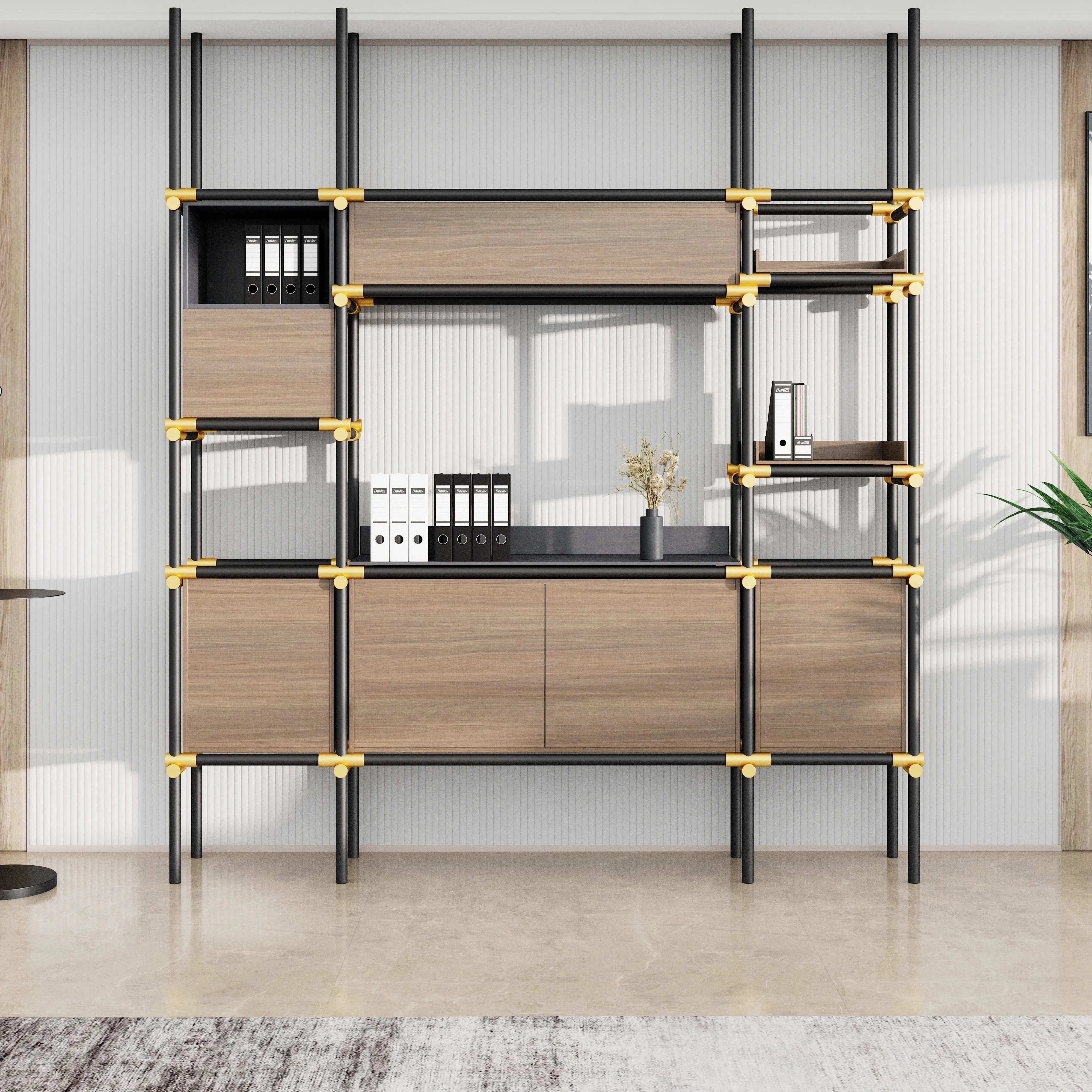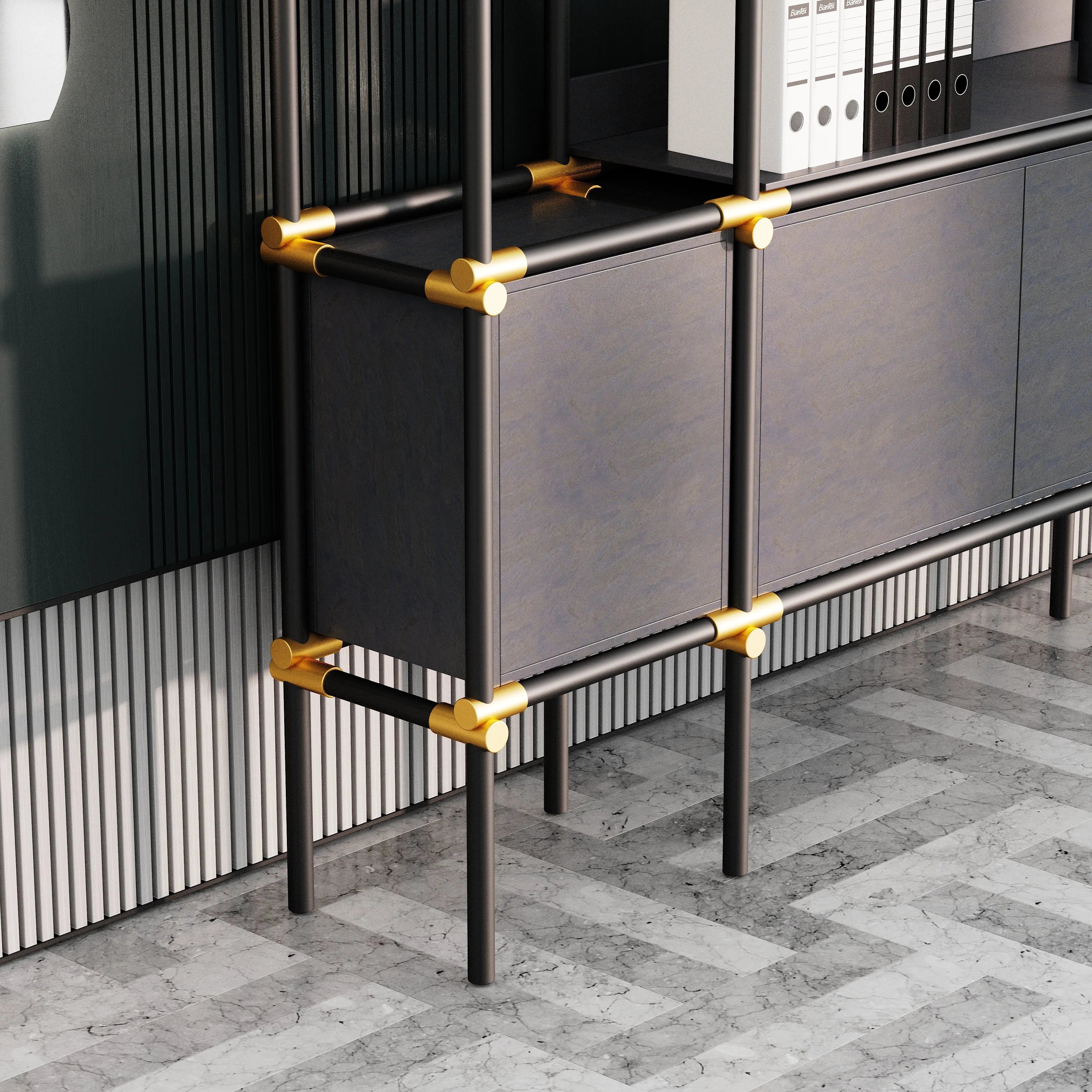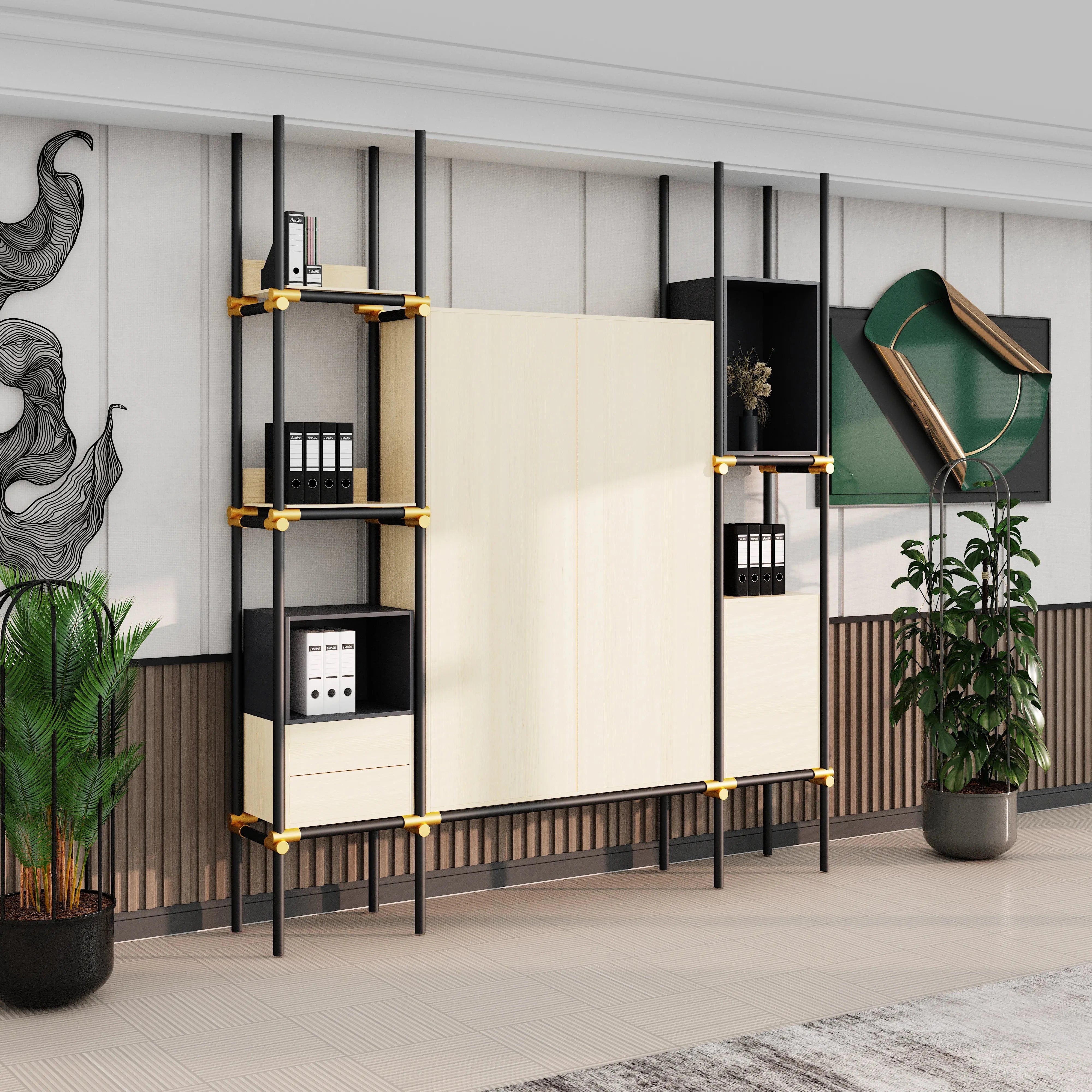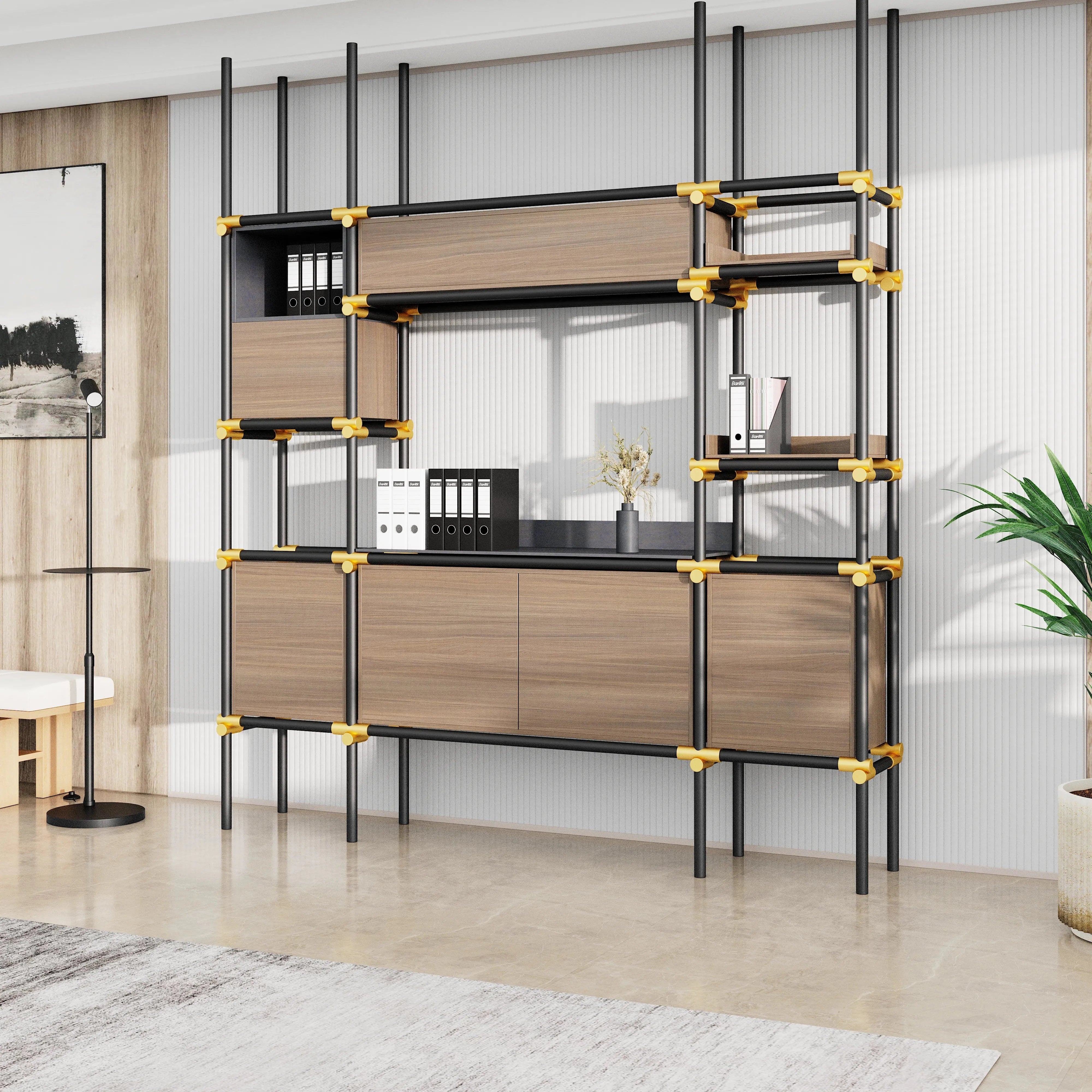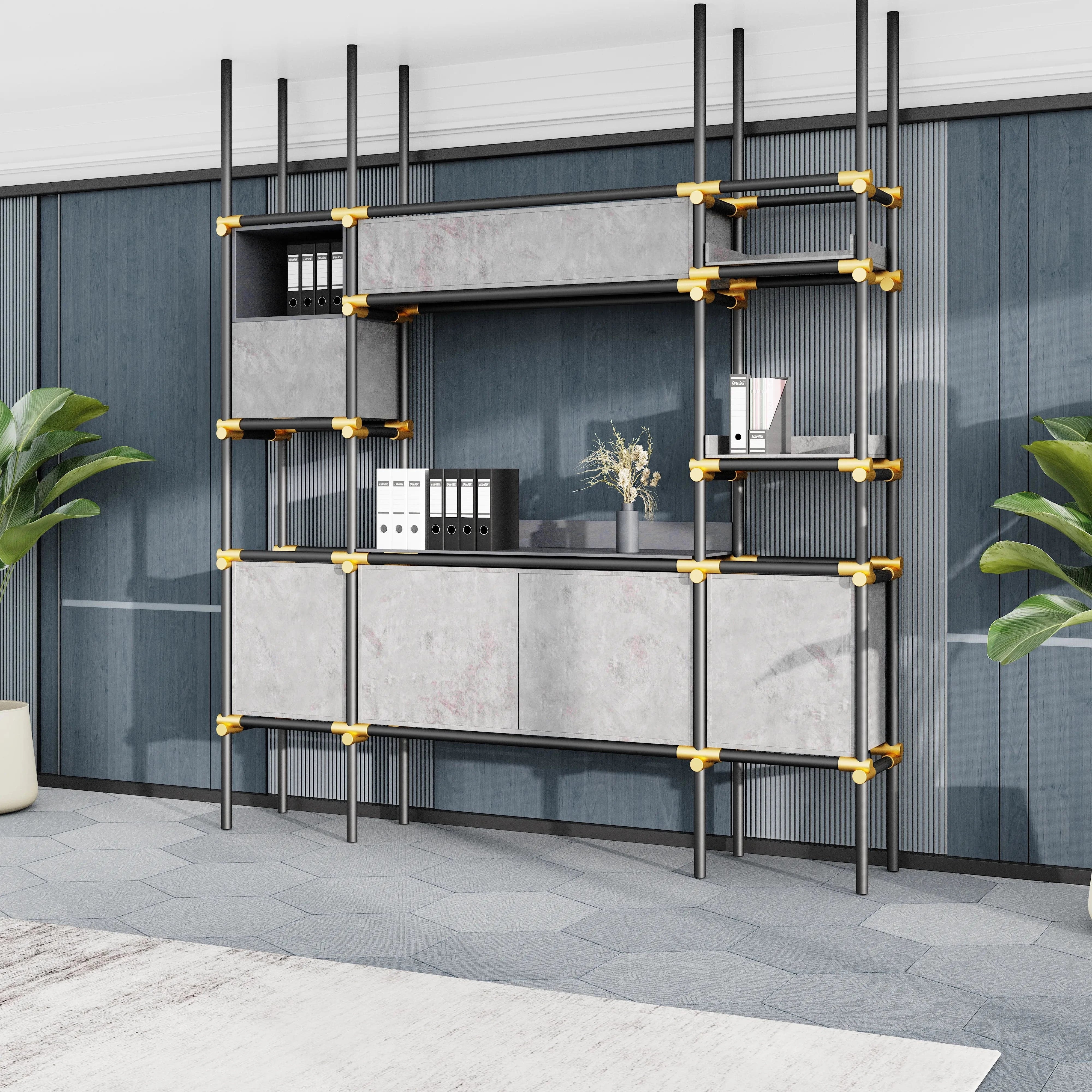 With 6 to 7 shelves, 4 to 5 cabinet doors, and 9 to 11 compartments total, the unit is ideal for showcasing books, decor, or art objects while keeping other essentials out of sight. The 3 to 4-level design ensures ample vertical storage without overwhelming the space.