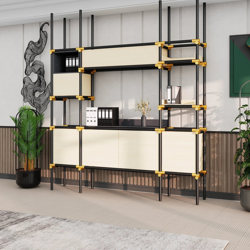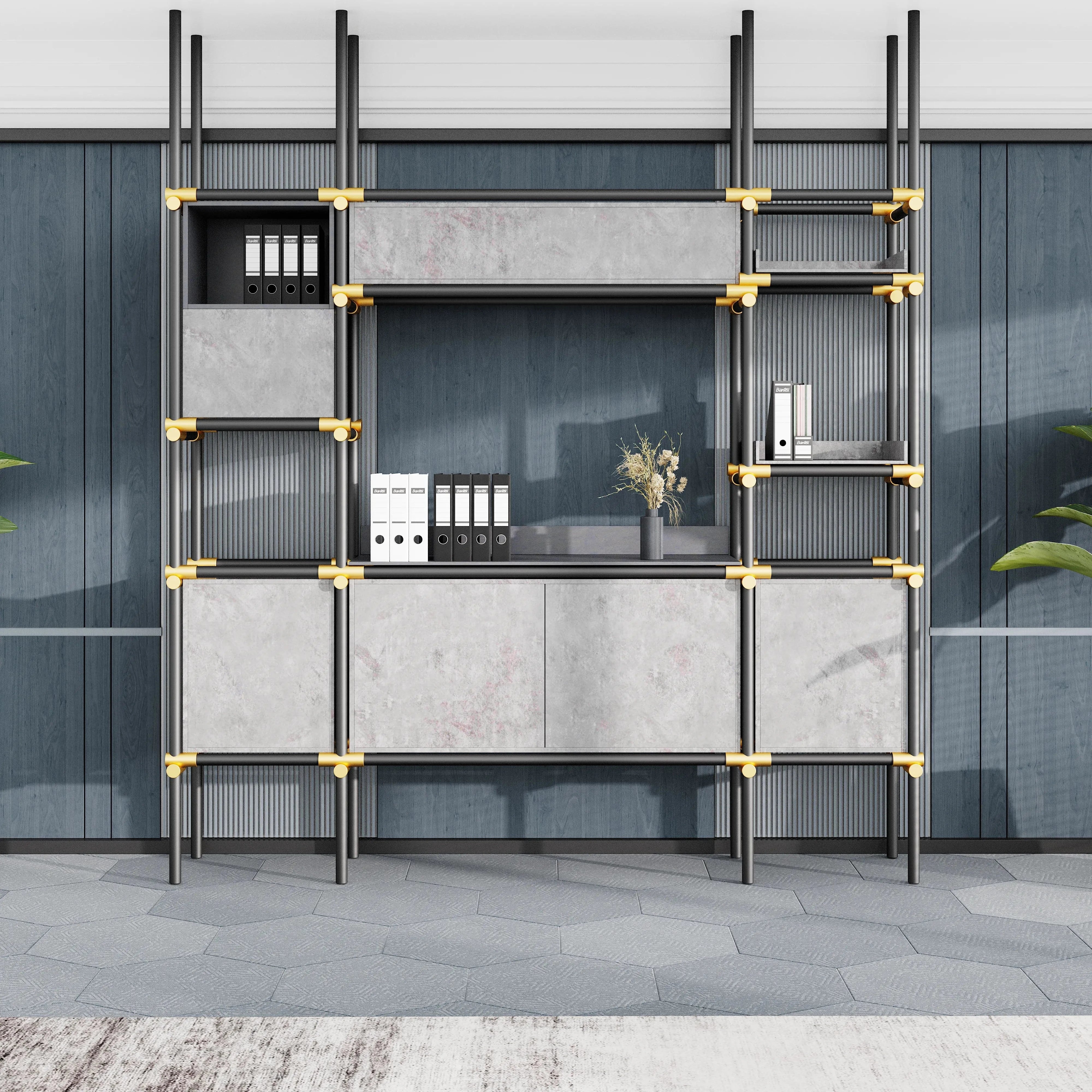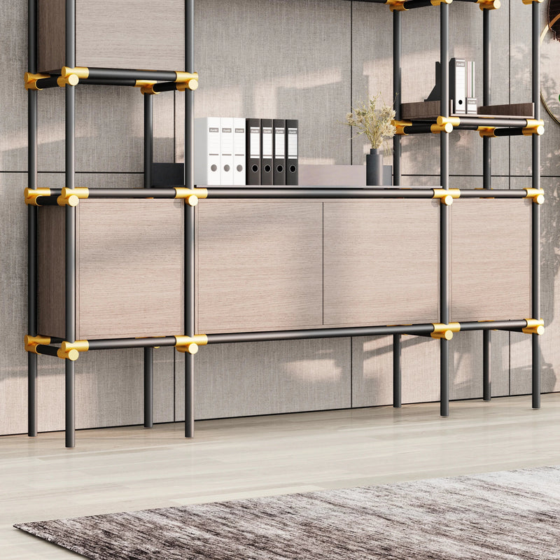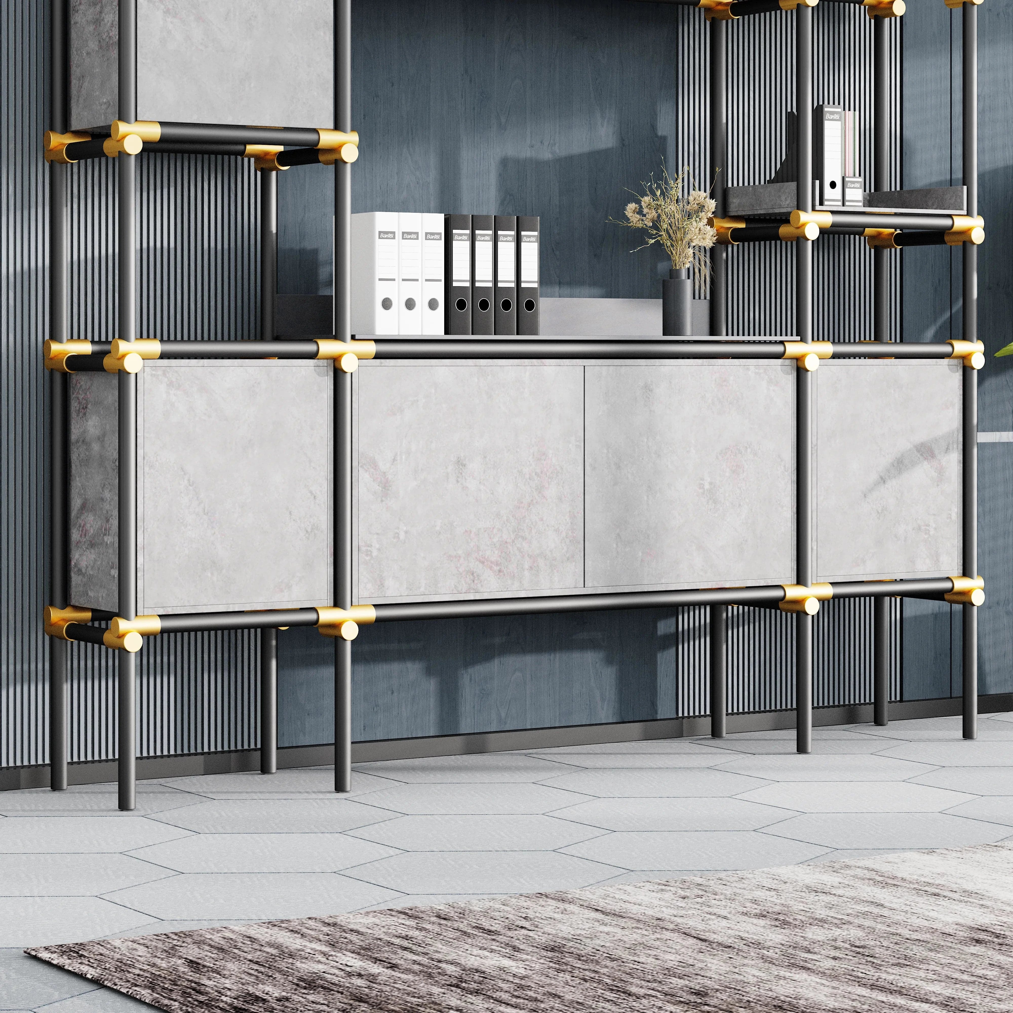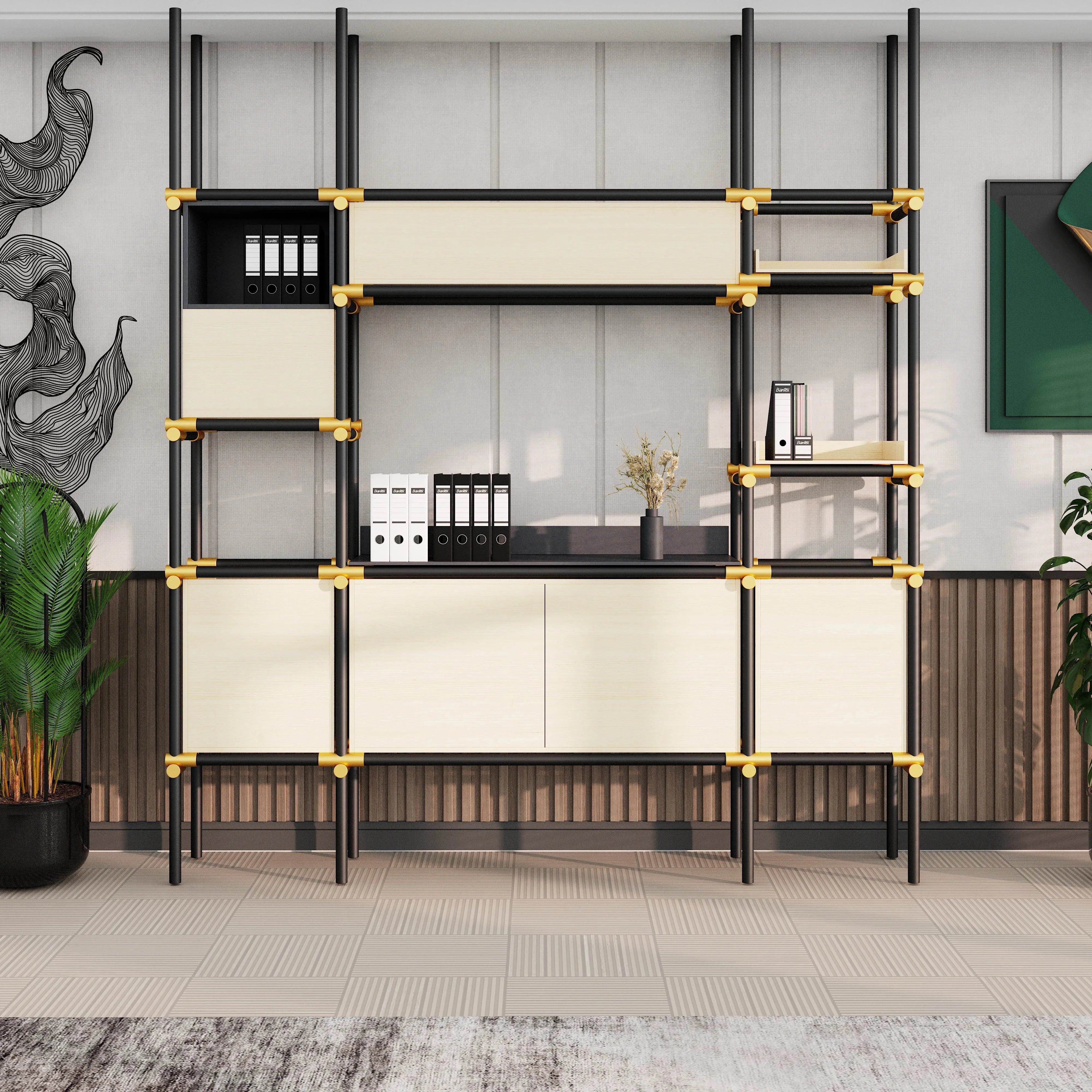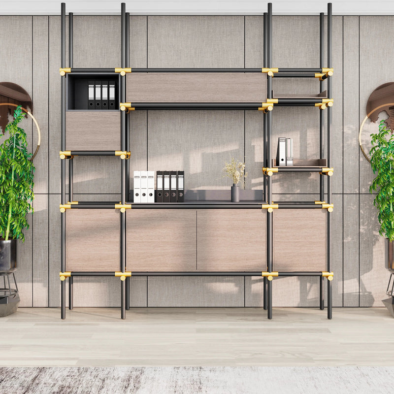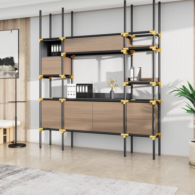 With 6 to 7 shelves, 4 to 5 cabinet doors, and 9 to 11 compartments total, the unit is ideal for showcasing books, decor, or art objects while keeping other essentials out of sight. The 3 to 4-level design ensures ample vertical storage without overwhelming the space.