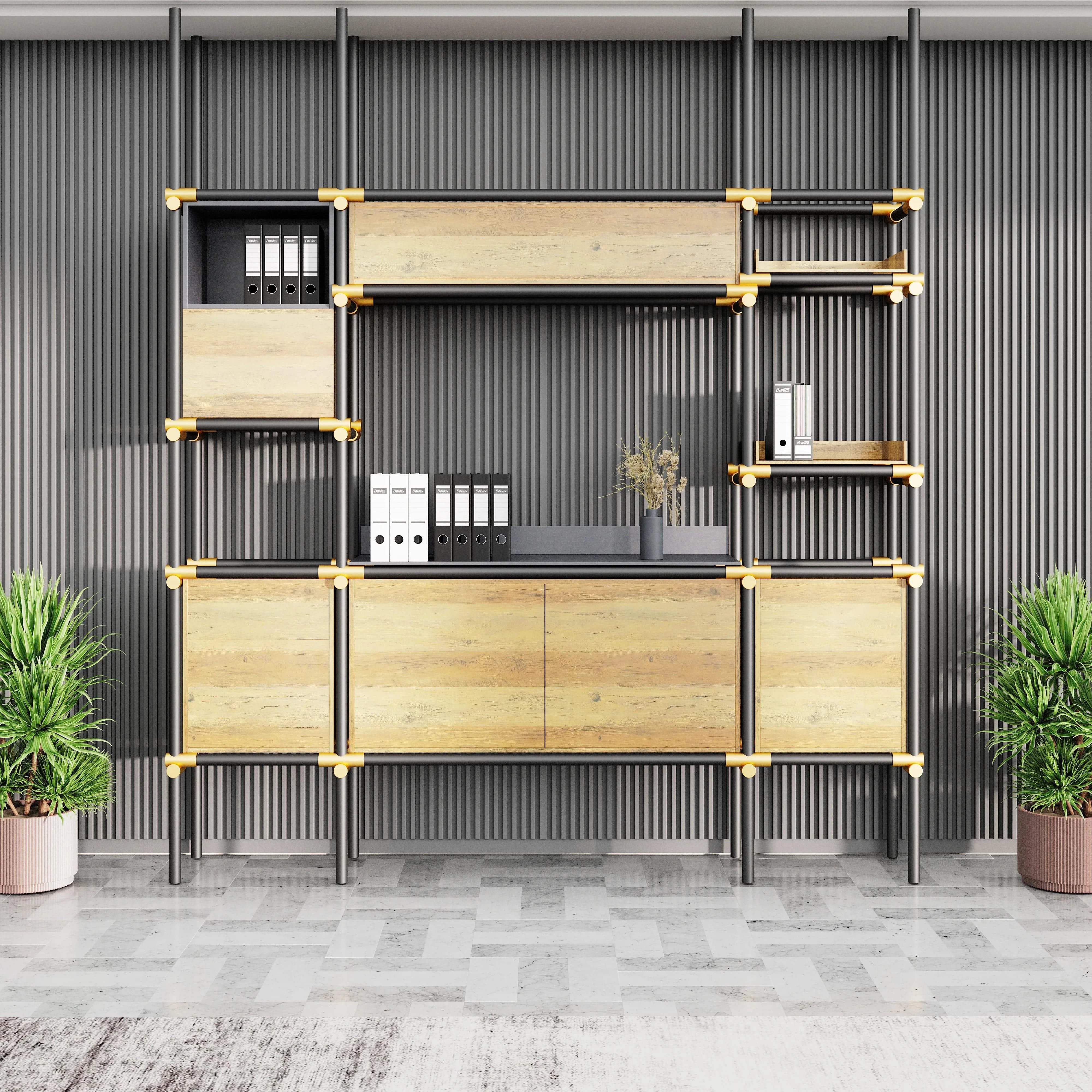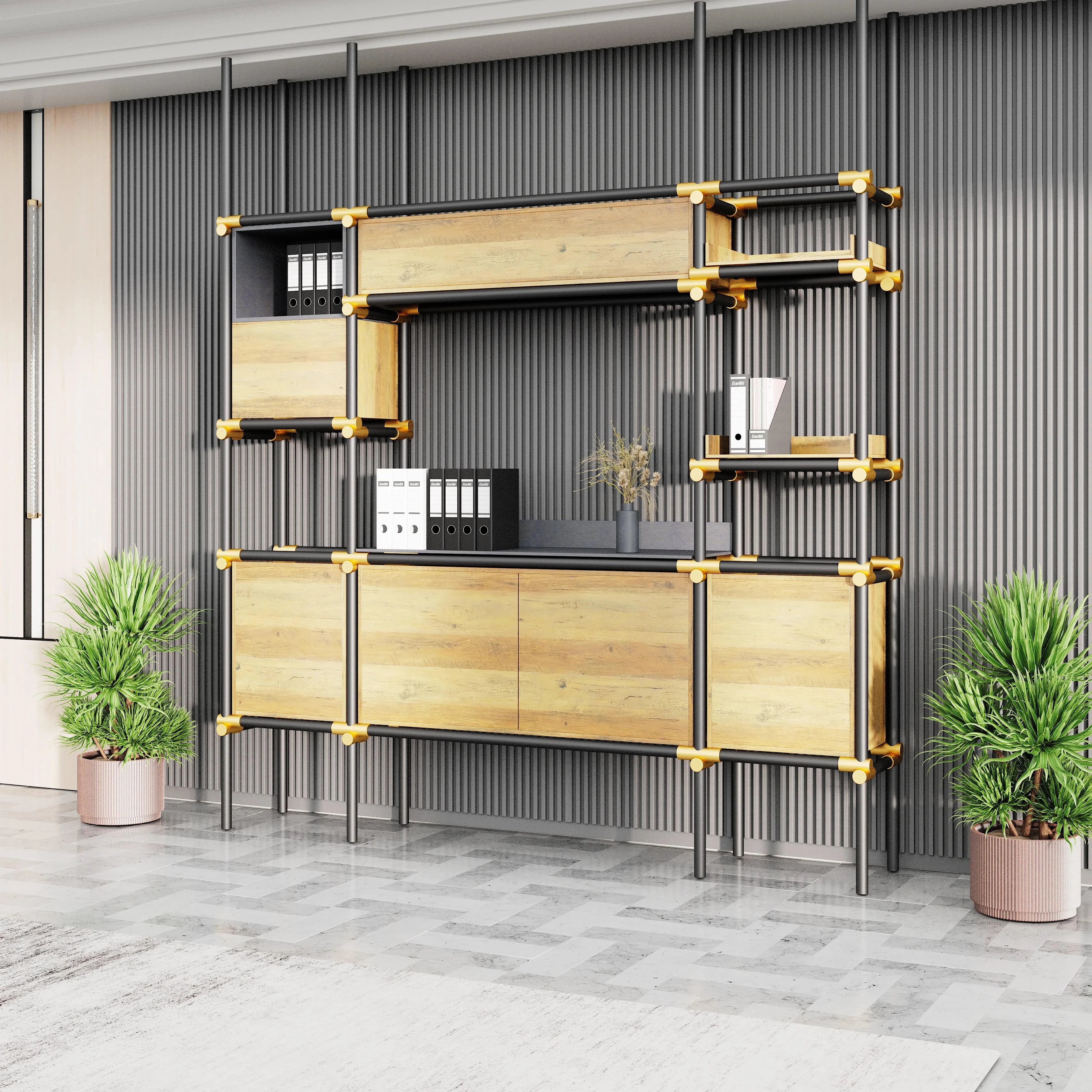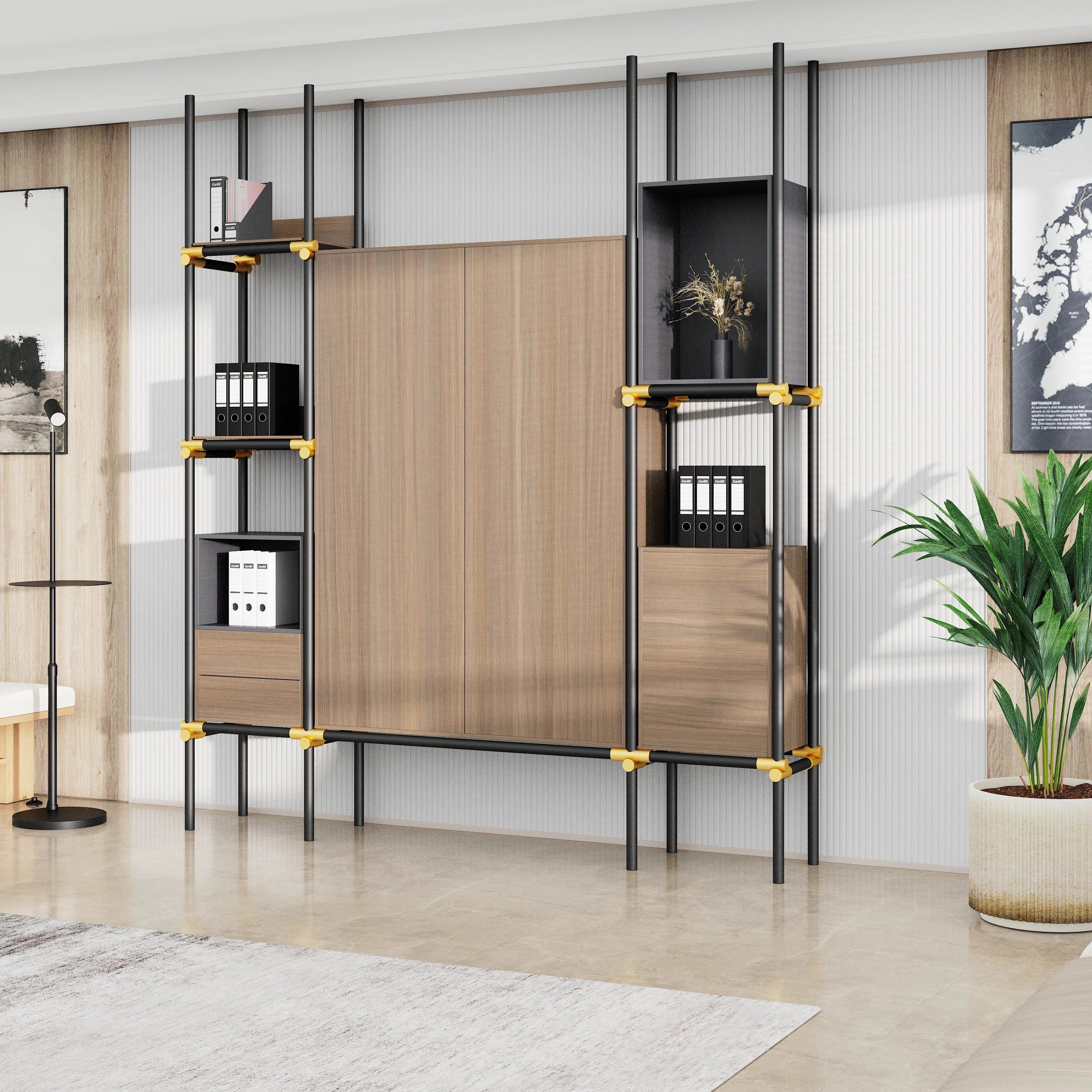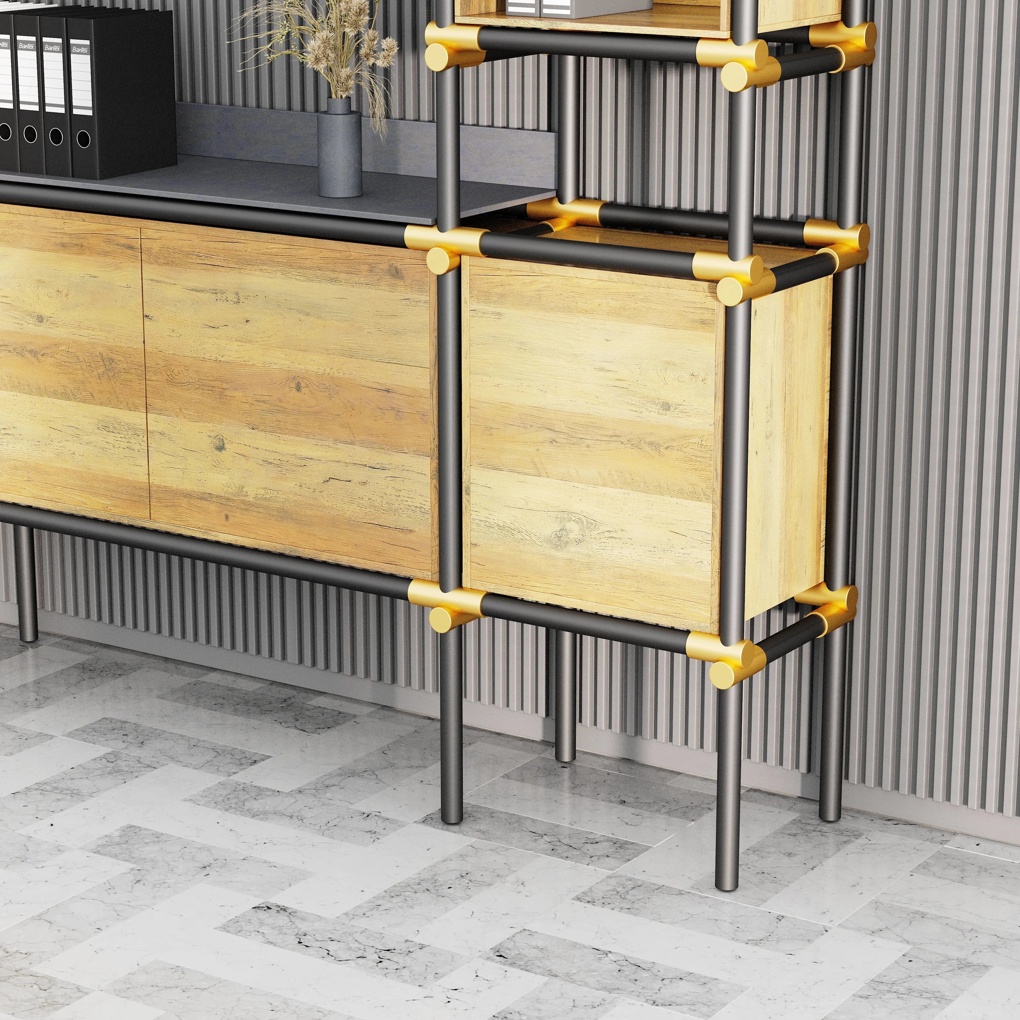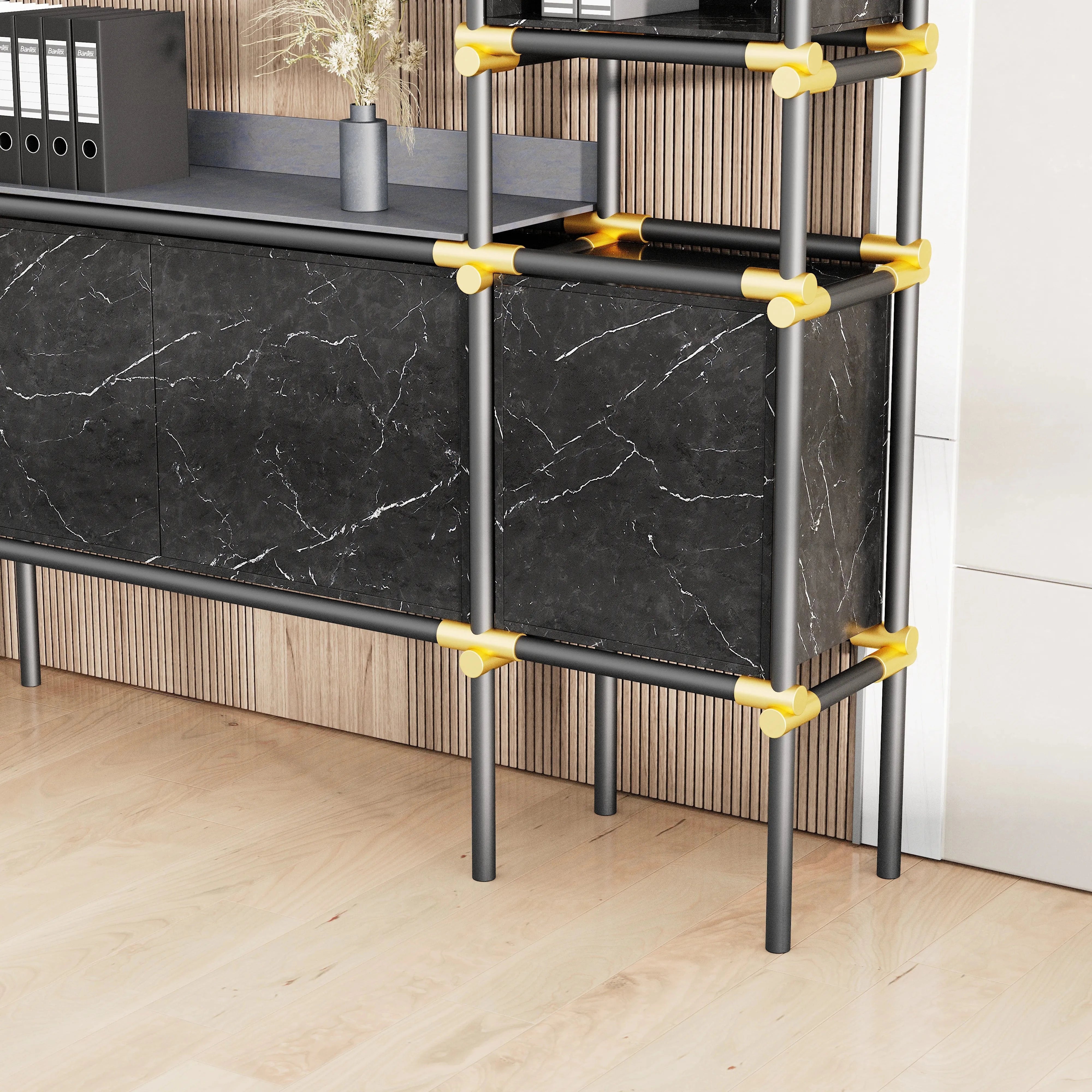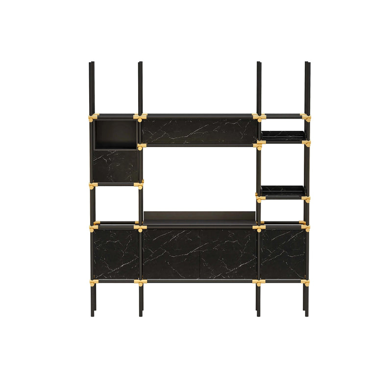 With 6 to 7 shelves, 4 to 5 cabinet doors, and 9 to 11 compartments total, the unit is ideal for showcasing books, decor, or art objects while keeping other essentials out of sight. The 3 to 4-level design ensures ample vertical storage without overwhelming the space.