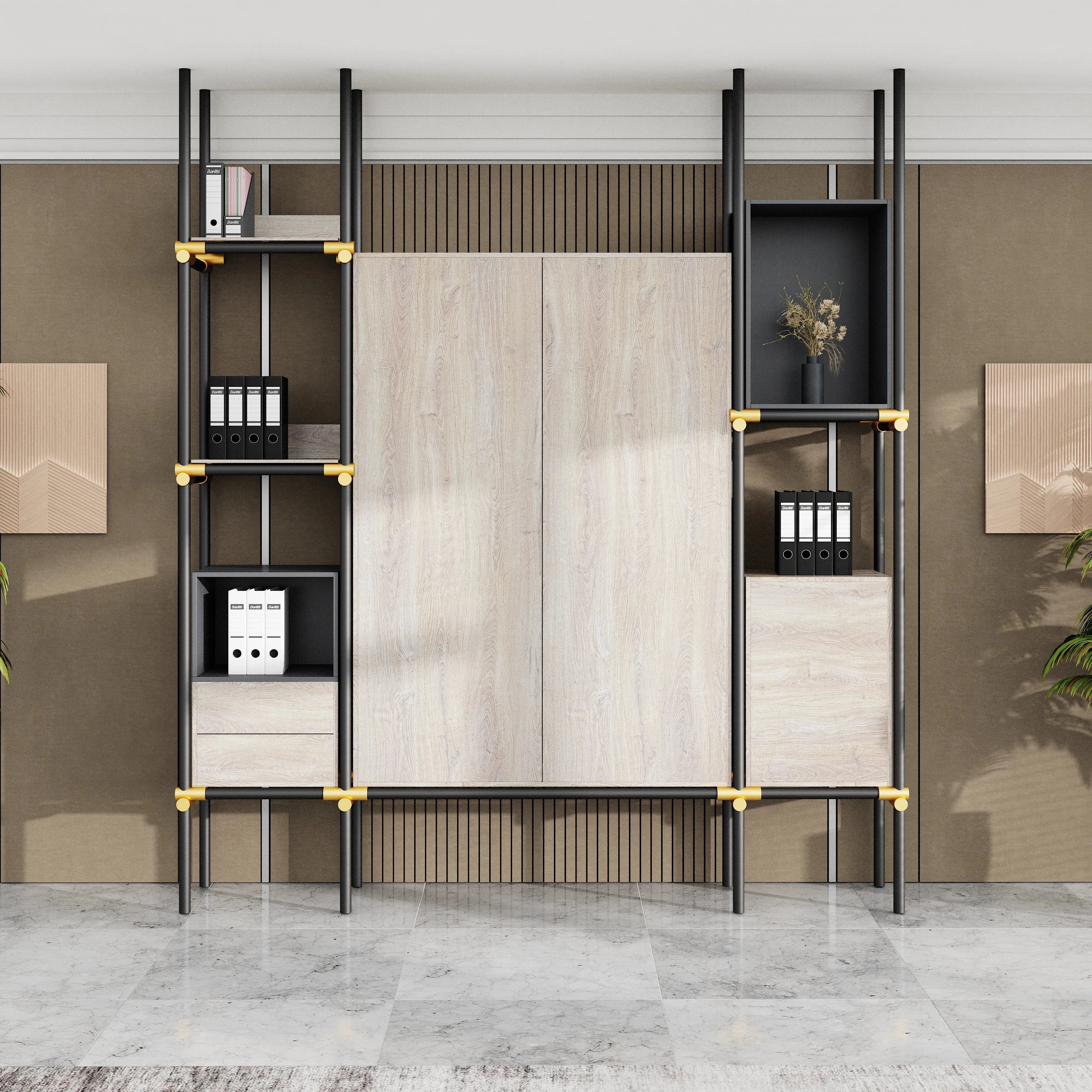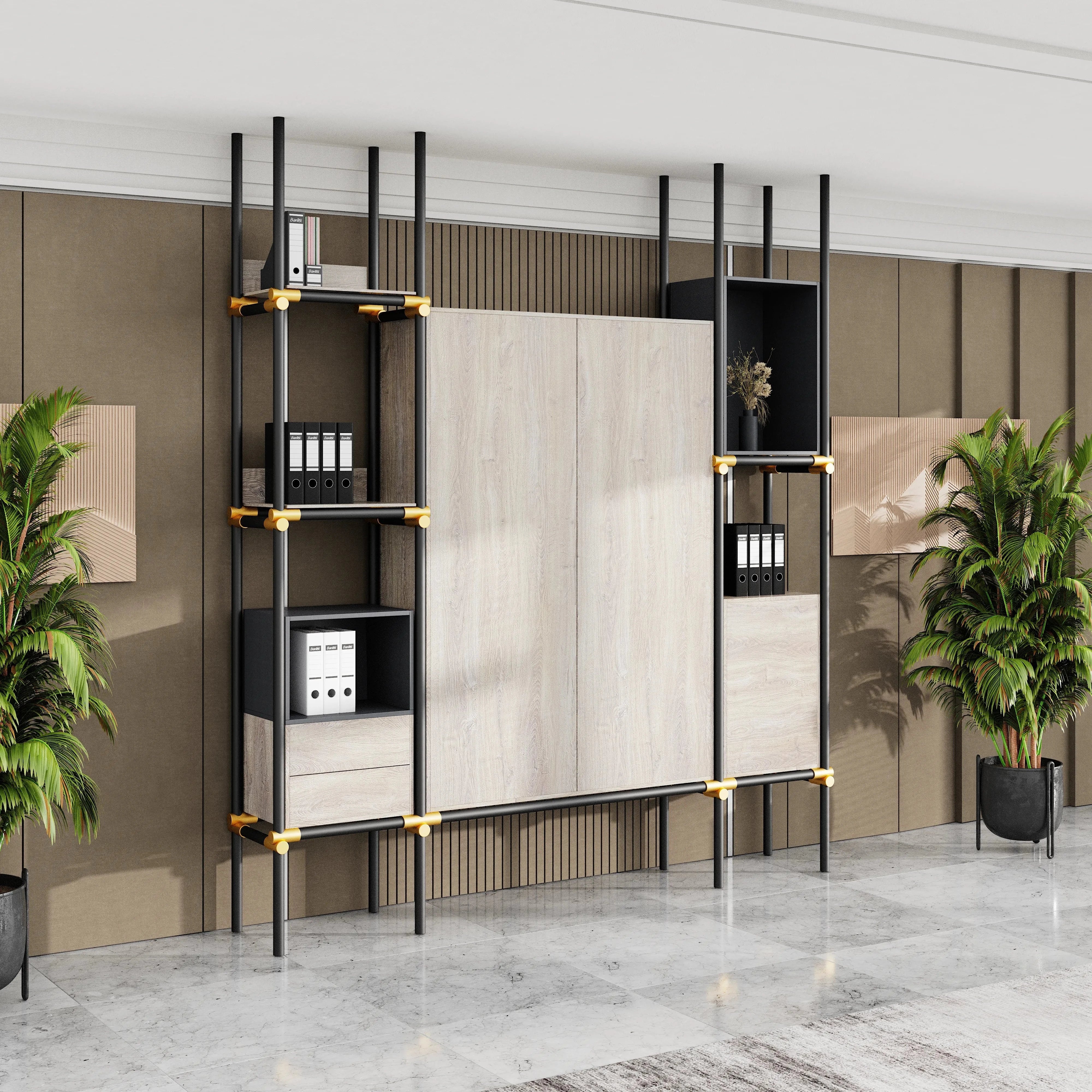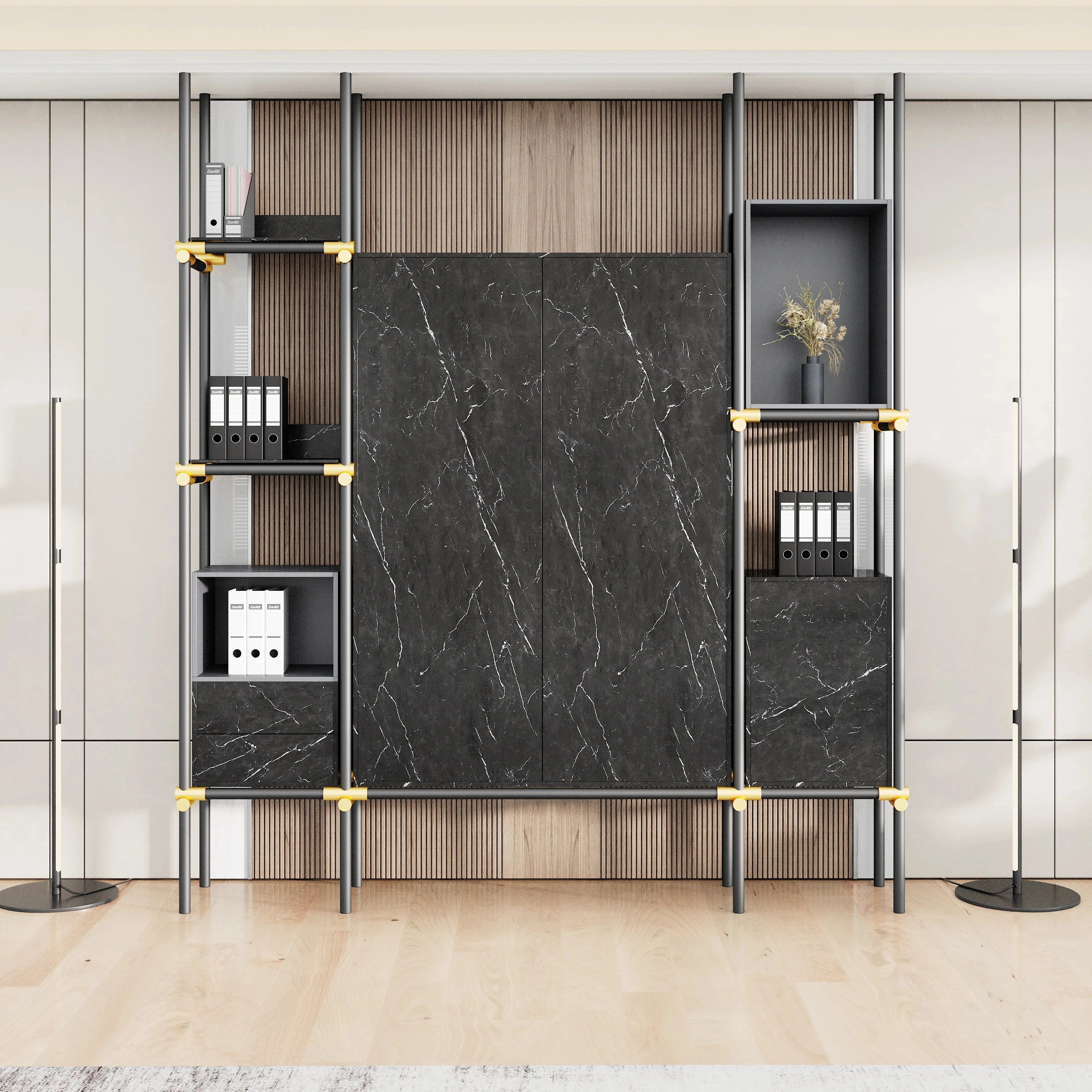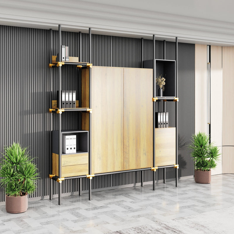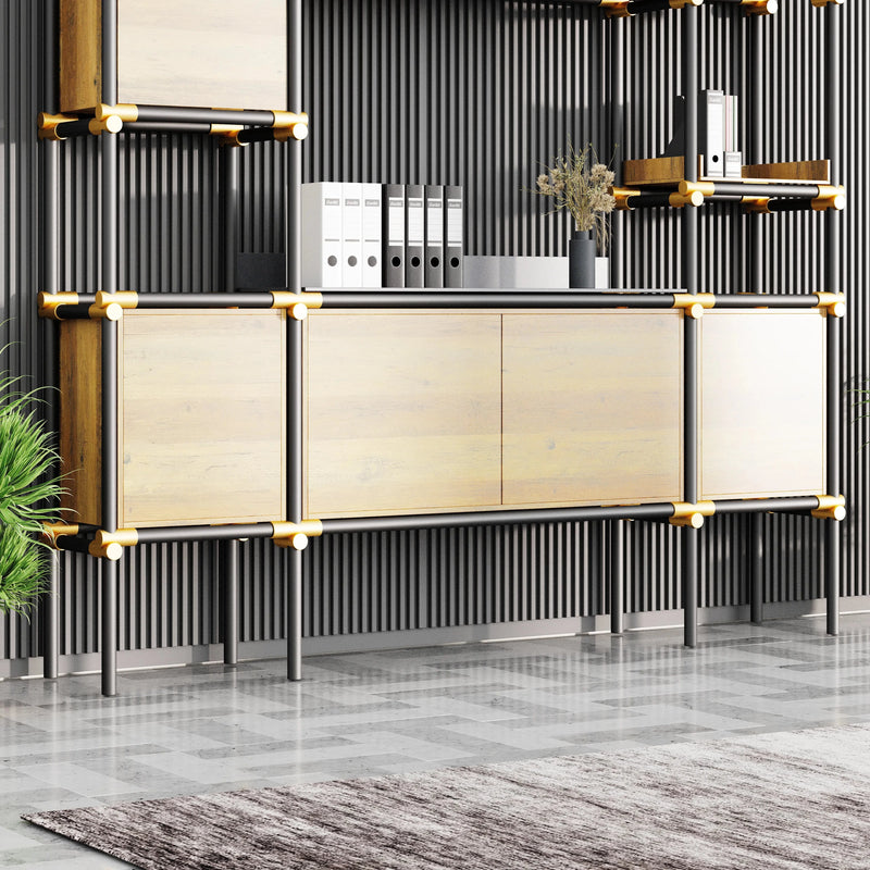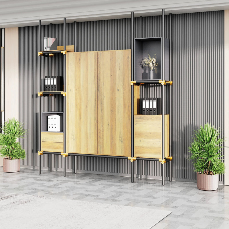 With 6 to 7 shelves, 4 to 5 cabinet doors, and 9 to 11 compartments total, the unit is ideal for showcasing books, decor, or art objects while keeping other essentials out of sight. The 3 to 4-level design ensures ample vertical storage without overwhelming the space.