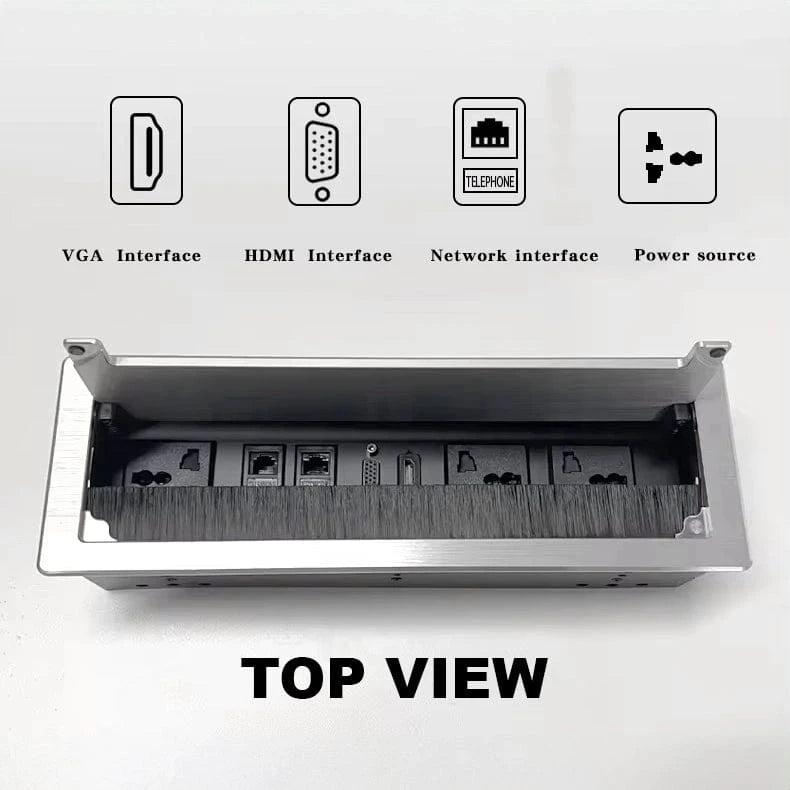 - Technology Integration: Wireless charging, USB ports, multimedia ports on desktop; 3 built-in outlets in return