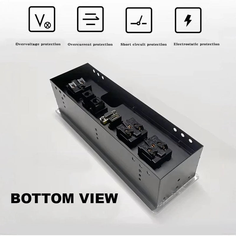 Technology integration is handled with care. Wireless charging, USB ports, and multimedia ports are integrated into the desktop for effortless connectivity. Cables are routed cleanly through an internal cable system and an external desktop cable organizer, preventing clutter and promoting a seamless workflow. A built-in heat sink within the return helps regulate temperature for connected devices.
