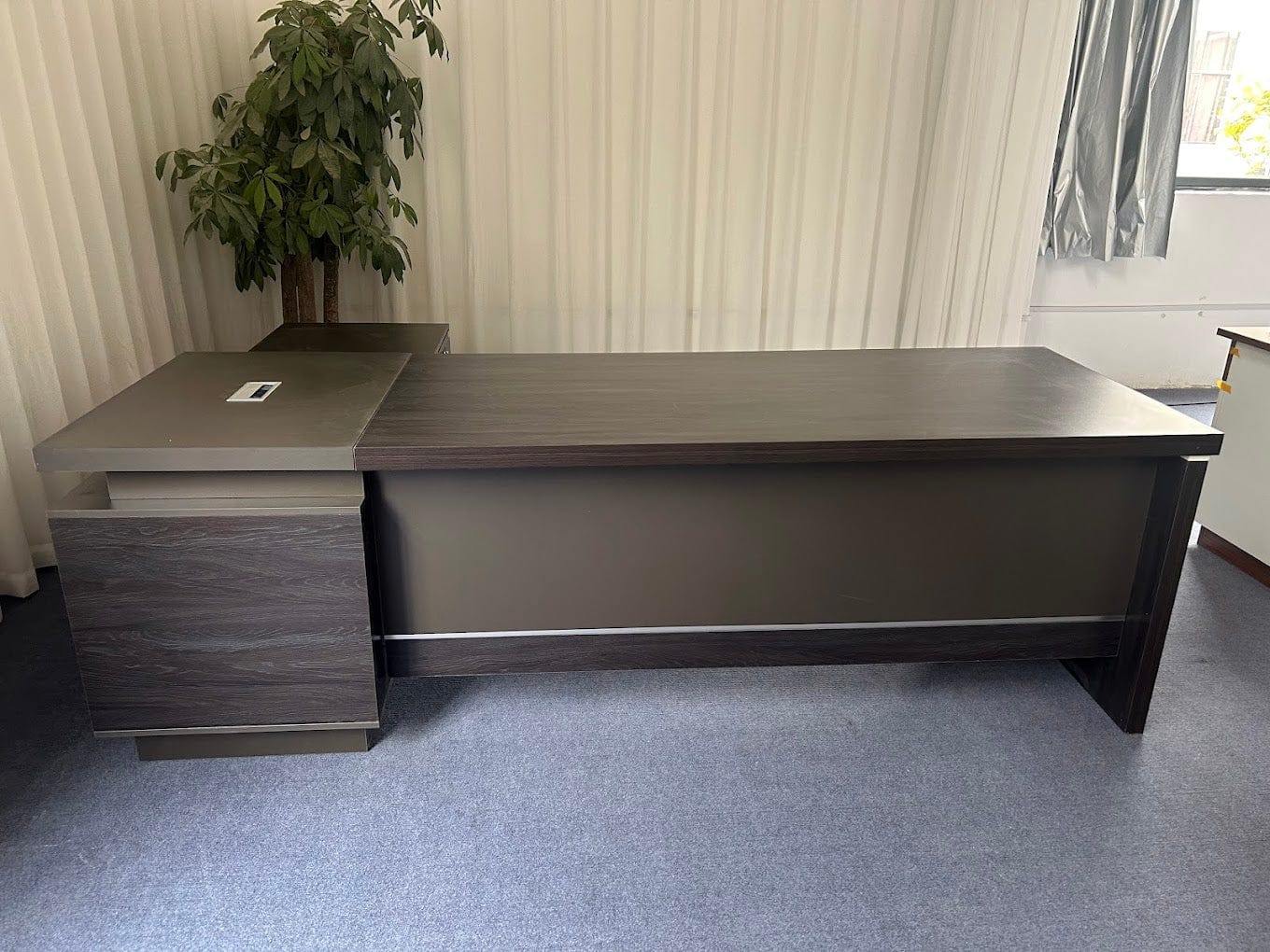 Available in Midnight Black or Dark Oak, the finish delivers a versatile, modern appearance that complements both minimalist and executive office aesthetics. The double-plated desktop is engineered for strength and long-term stability, helping the desk maintain its shape and surface integrity even under heavy daily use. A beveled privacy panel adds structure to the front while creating a subtle visual separation between the user and guests.