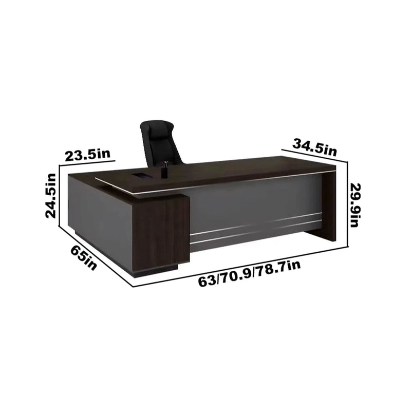 The Jasper Executive Desk brings a grounded, contemporary presence to workspaces with its balanced layout and refined materiality. Constructed from E1-grade Medium Density Fiberboard (MDF), this desk is engineered for strength and stability while maintaining low formaldehyde emissions. The core structure provides a solid foundation that resists warping or sagging over time, making it ideal for high-use executive environments. Finished with a laminated coating in Adonis Gray and Oak, the surface offers a durable shield against daily wear including minor abrasions, stains, and heat. The woodgrain-inspired palette gives the unit a warm yet professional tone suited for both traditional and modern interiors.