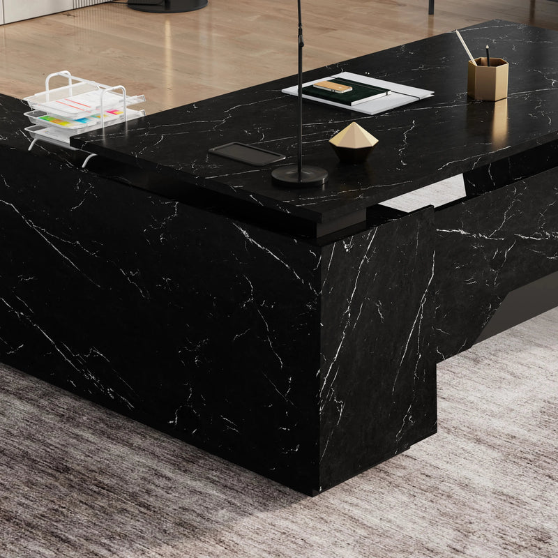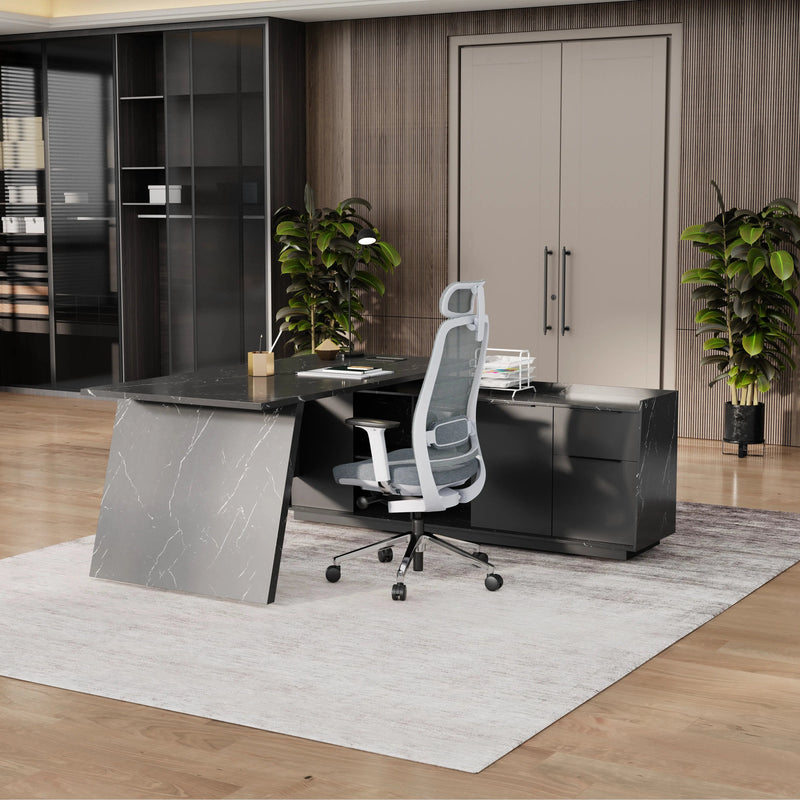Designed with productivity in mind, the Jaxson includes a privacy beveled slate to help delineate personal work areas and protect confidential materials from view. The generous workspace and L-shaped layout allow for efficient multitasking, while still leaving room for writing, meetings, or creative work.