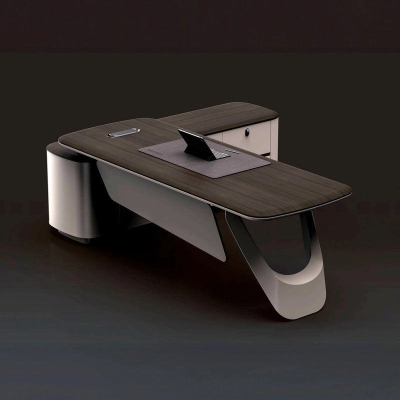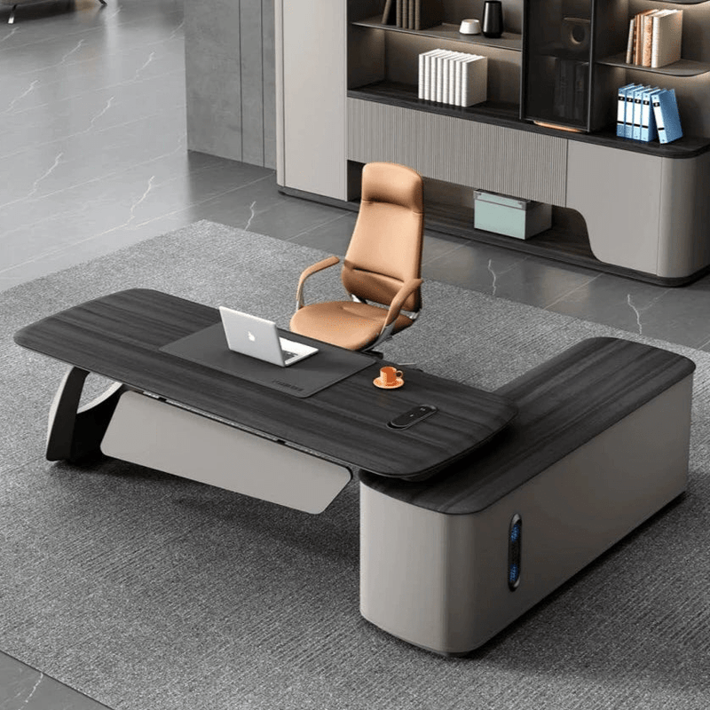 The surface is finished in a Metallic Gray melamine laminate that is engineered to resist scratches, moisture, stains, and heat. This finish not only preserves the desk’s elegant appearance over time but also offers a low-maintenance surface that stands up to daily wear in active environments.
