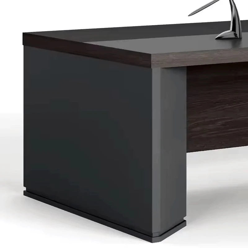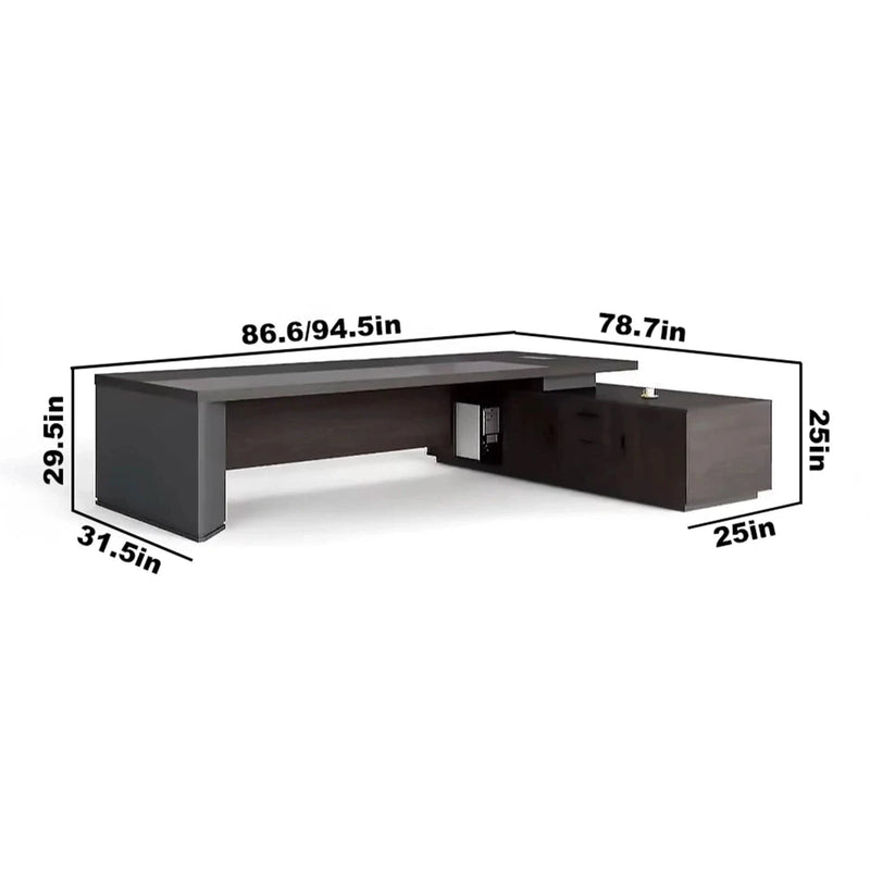 The Lory 86-95" Black L-shaped Executive Desk from Forest Burnt Umber is a sleek, modern desk designed for functionality and style, perfect for high-end office spaces. Made from refined E1 Grade MDF with a Melamine laminate finish, the desk is built for durability while maintaining eco-friendly standards. The E1 Grade MDF provides a sturdy base, ensuring long-lasting strength, while its low formaldehyde emissions contribute to better indoor air quality. The Melamine laminate finish adds a layer of protection, making the desk resistant to scratches, stains, and moisture, preserving its polished look for years to come.