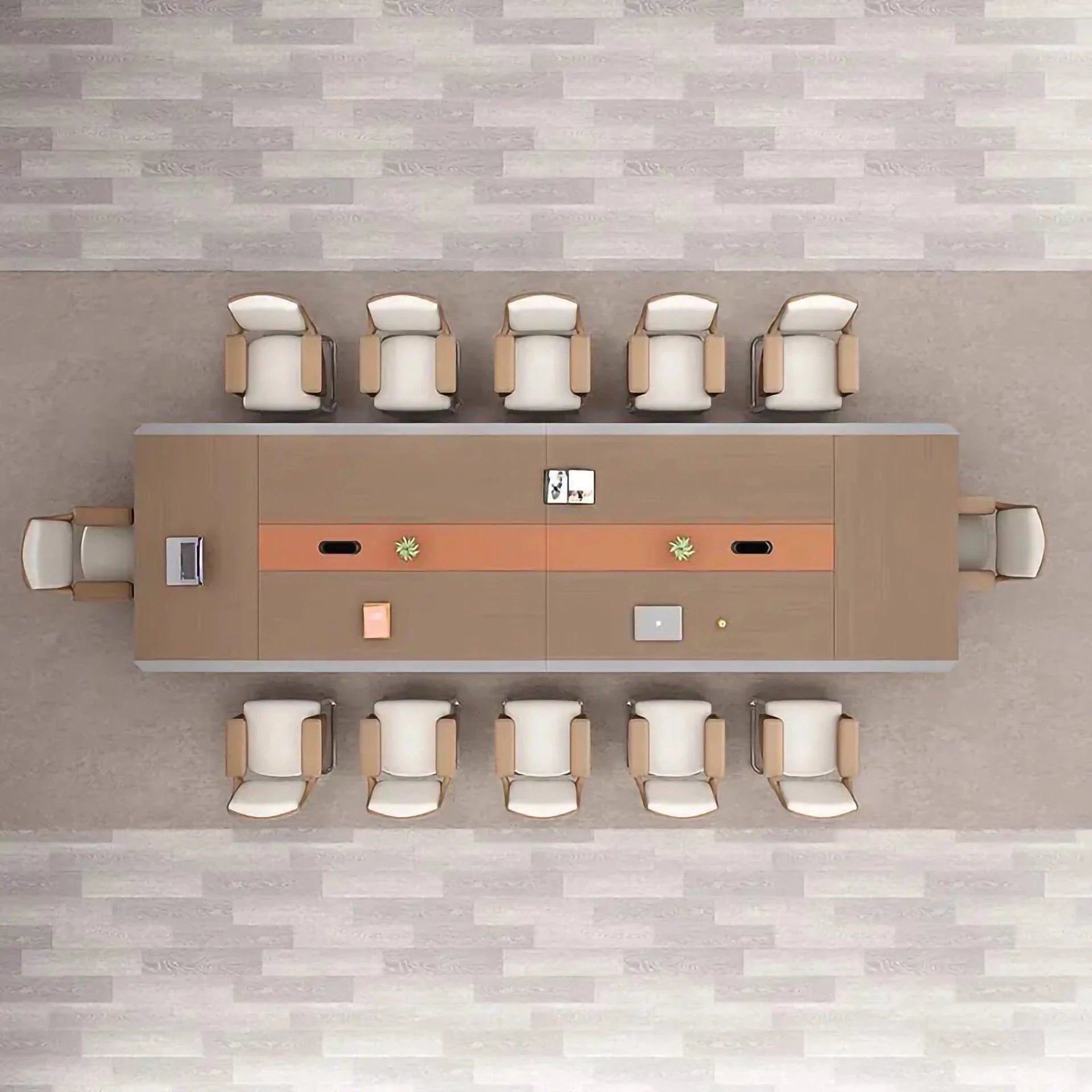 This conference table’s minimalist yet refined design focuses on both function and style, making it an excellent choice for large conference rooms or executive offices. It provides ample space for meetings while maintaining a professional, high-end aesthetic that suits modern office settings.