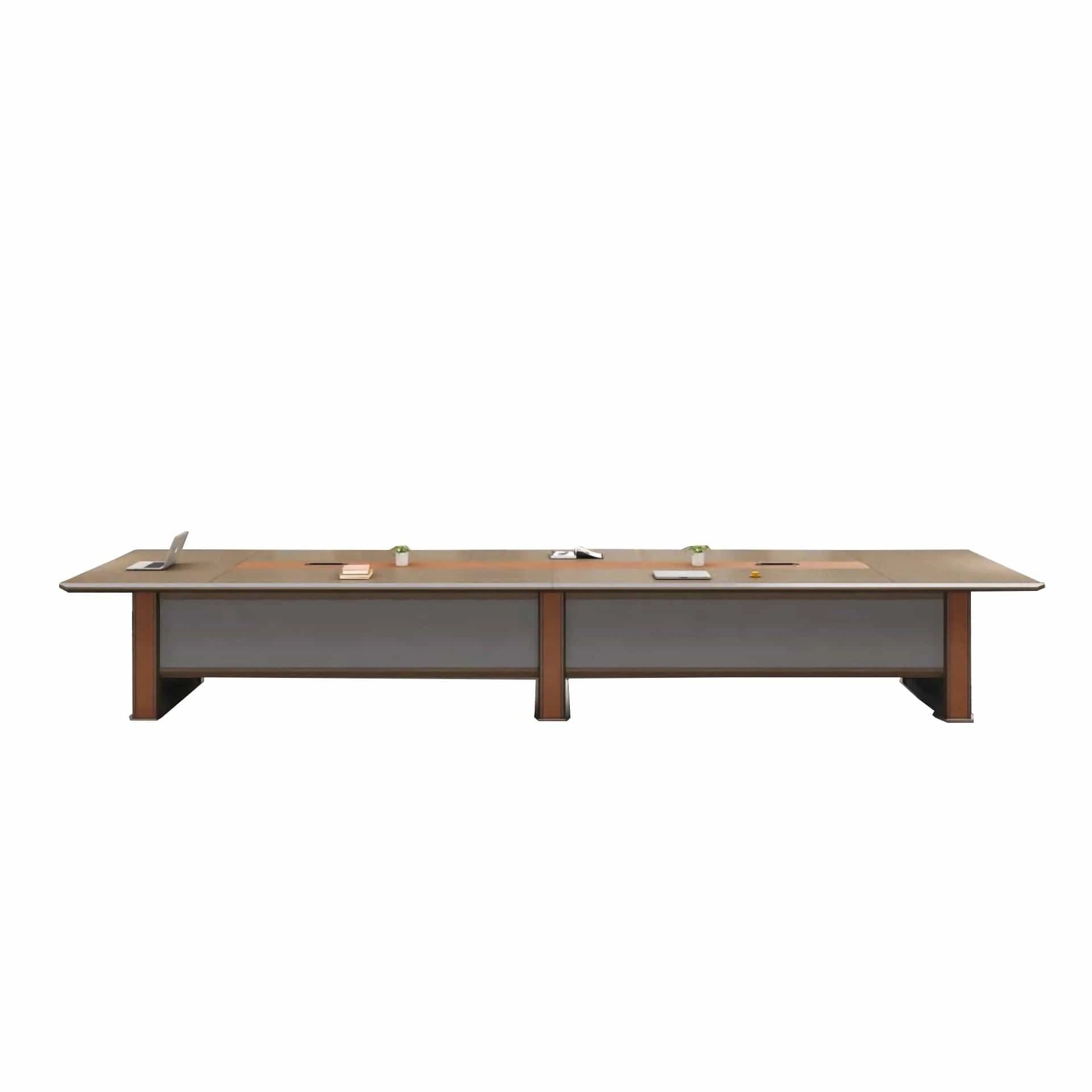 The rectangular design of the table allows for optimal visibility for all meeting participants, ensuring that everyone can engage in discussions. The design accommodates up to 18 people comfortably, making it suitable for large meetings, presentations, or collaborative sessions that require ample seating space. The thickened beveled edge not only adds to the table's overall aesthetic appeal but also reinforces its durability, ensuring the table remains in excellent condition for many years.