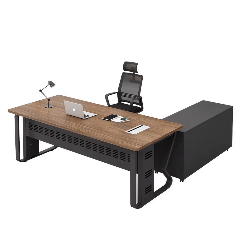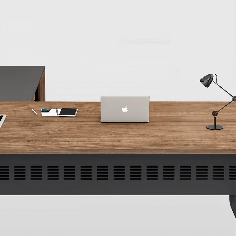 Crafted from E1 Grade MDF, the desk delivers structural durability with a low formaldehyde content, supporting both long-term performance and healthier indoor air. This engineered wood base resists warping and maintains strength under daily use, providing a dependable foundation for demanding office setups. Its surface is finished in Melamine Laminate Antique Beige Wood, which mimics the depth and texture of real wood grain while offering enhanced resistance to scratches, moisture, and stains. This finish is both attractive and easy to maintain, ideal for high-traffic executive settings.