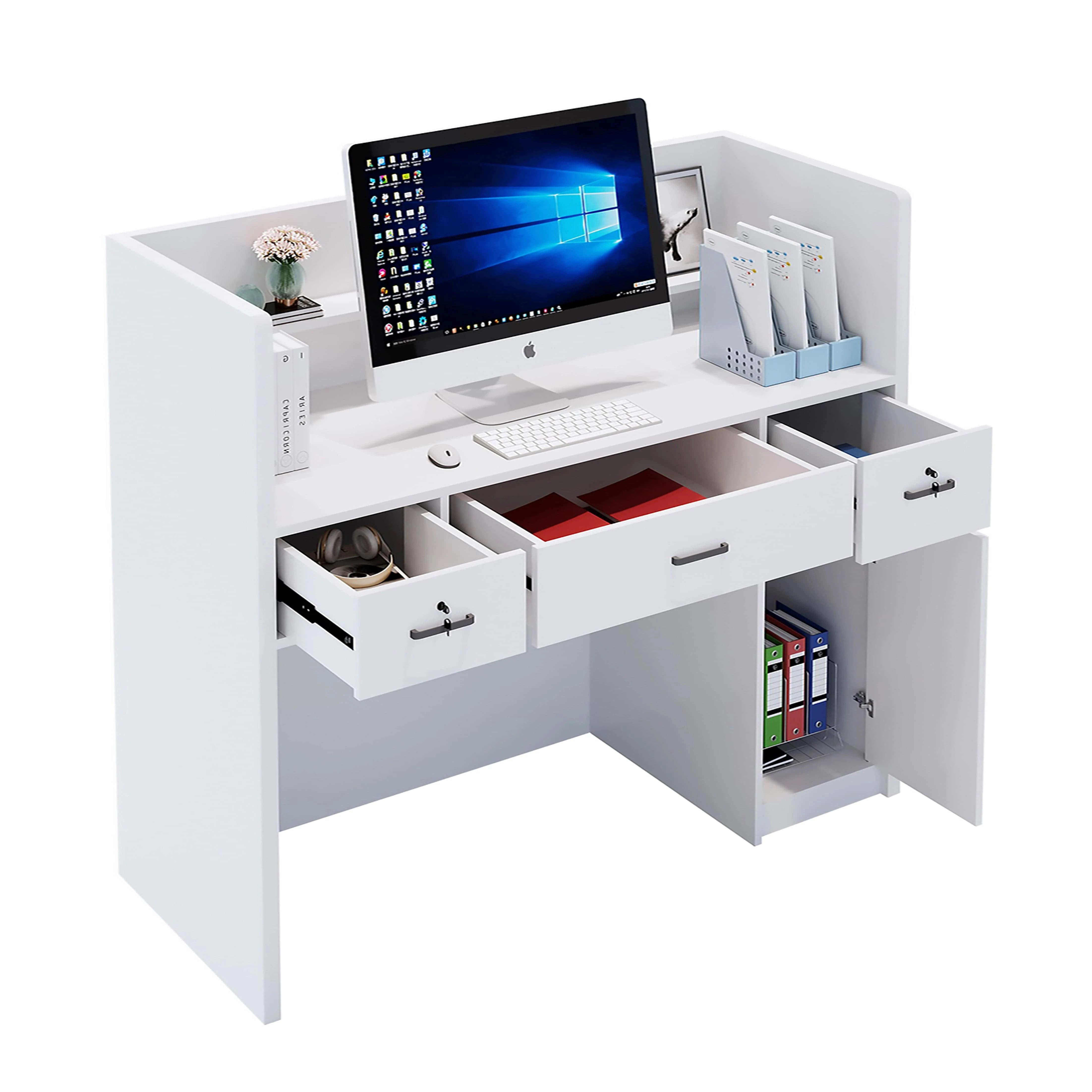 - Storage: 2 lockable drawers, 1 closed cabinet, 1 open front-facing storage shelf