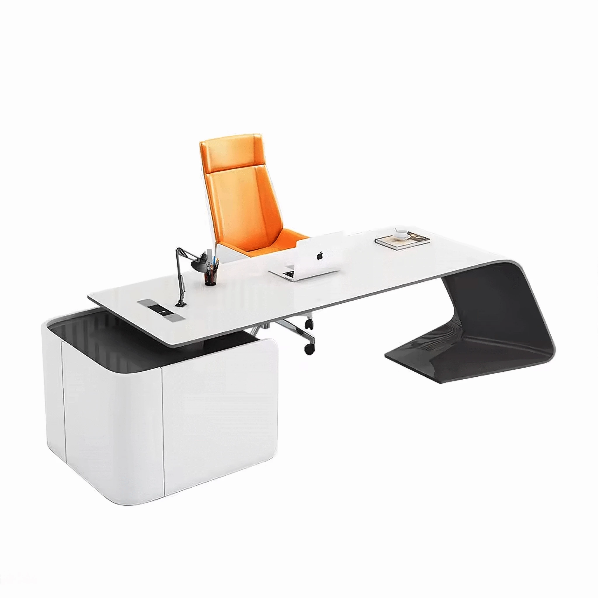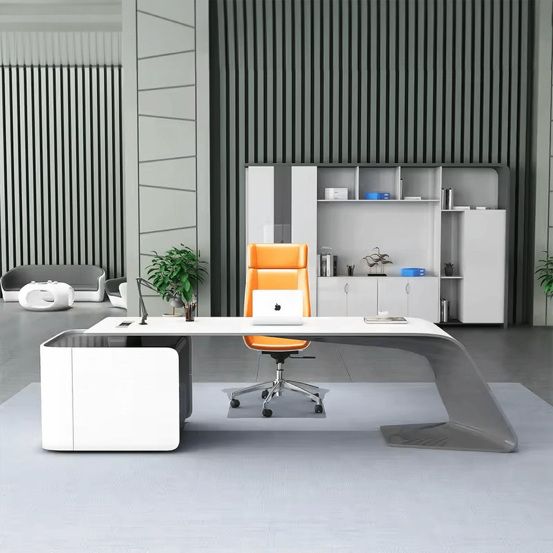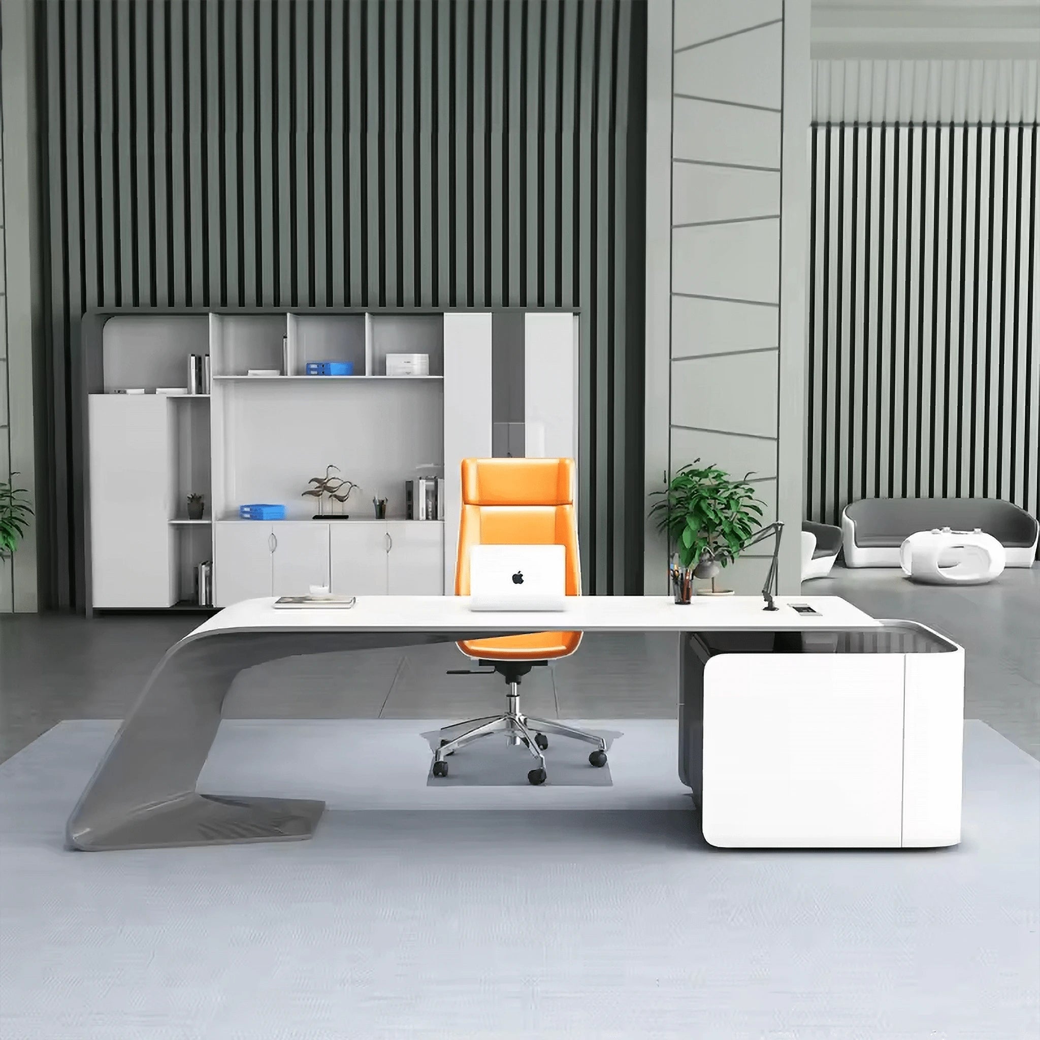 The Nyro Executive Desk is a striking blend of futuristic design and practical functionality, tailored for high-performance work environments with an appreciation for sculptural aesthetics.