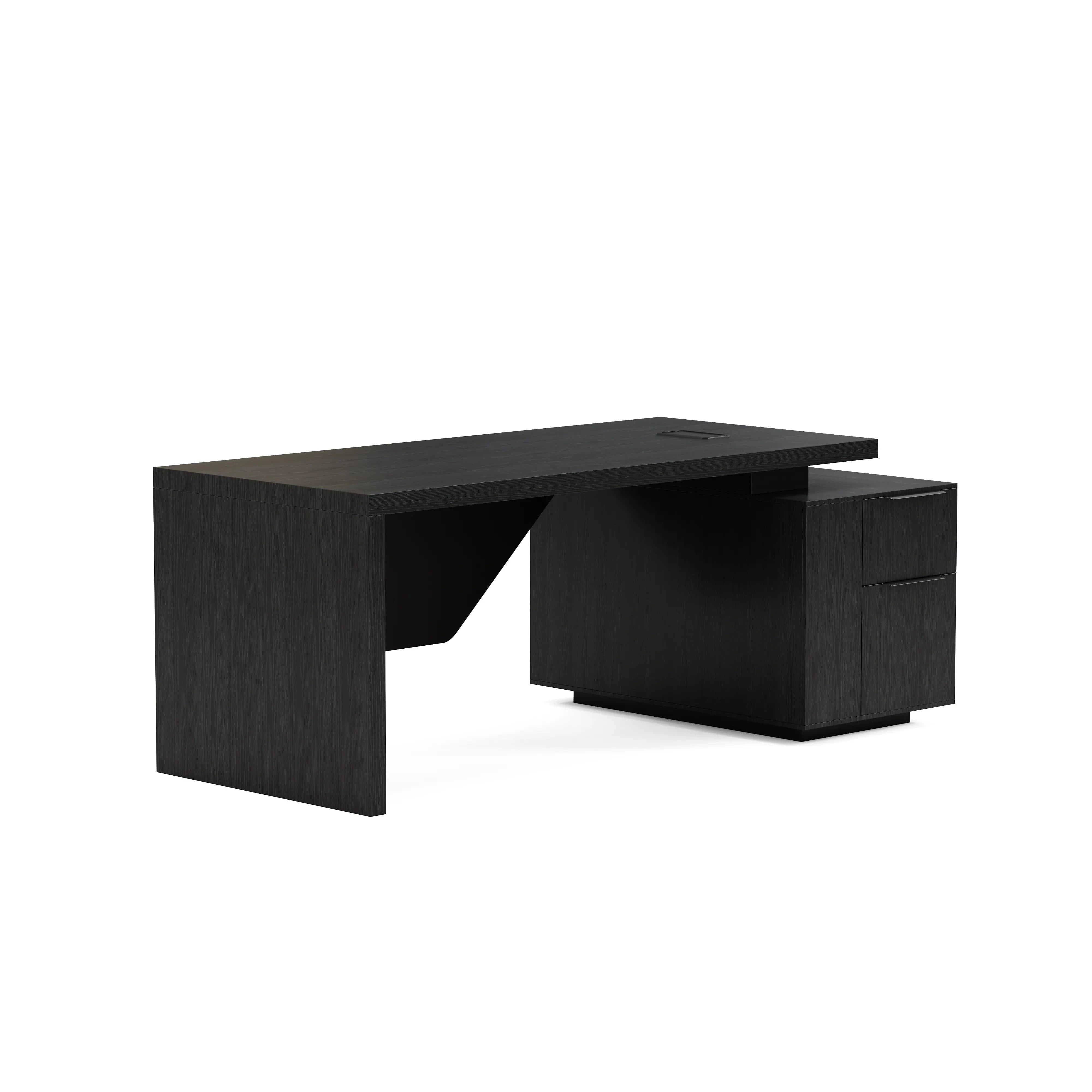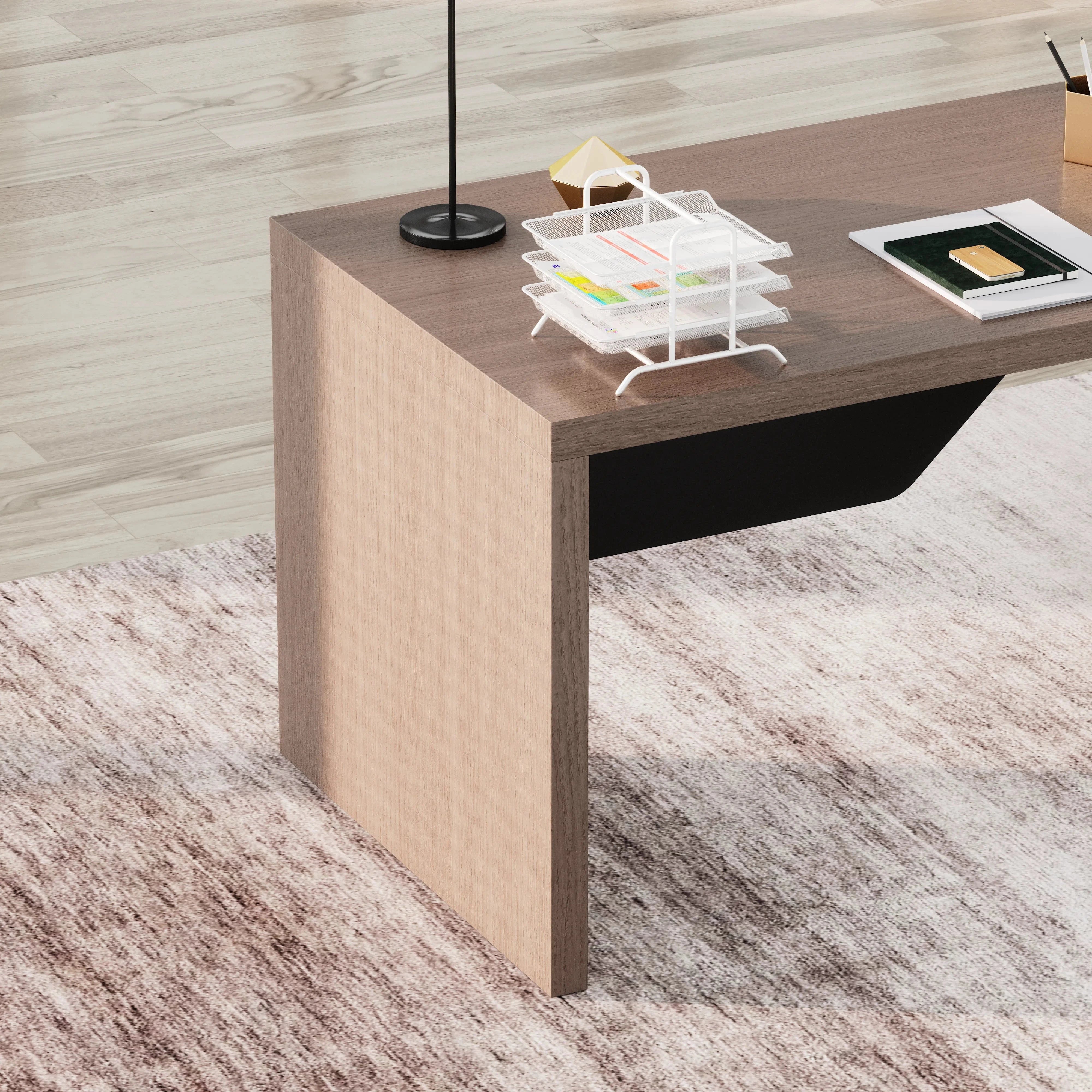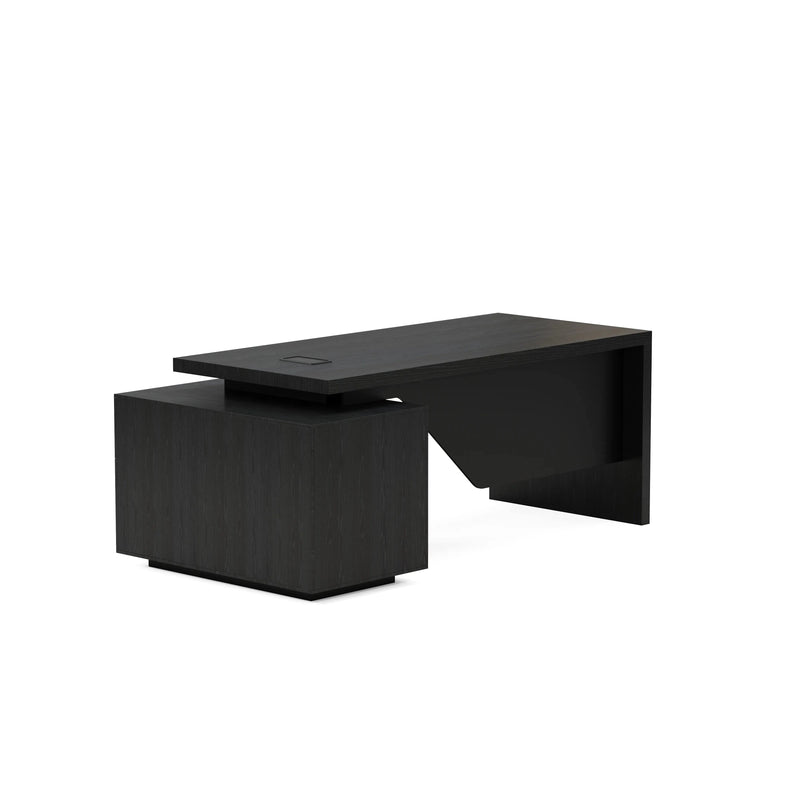 The desk’s design includes a privacy beveled slate that enhances both functionality and discretion, giving the user a designated space that feels enclosed and protected. The expansive desktop and generous leg space promote comfort and efficiency across long work sessions.