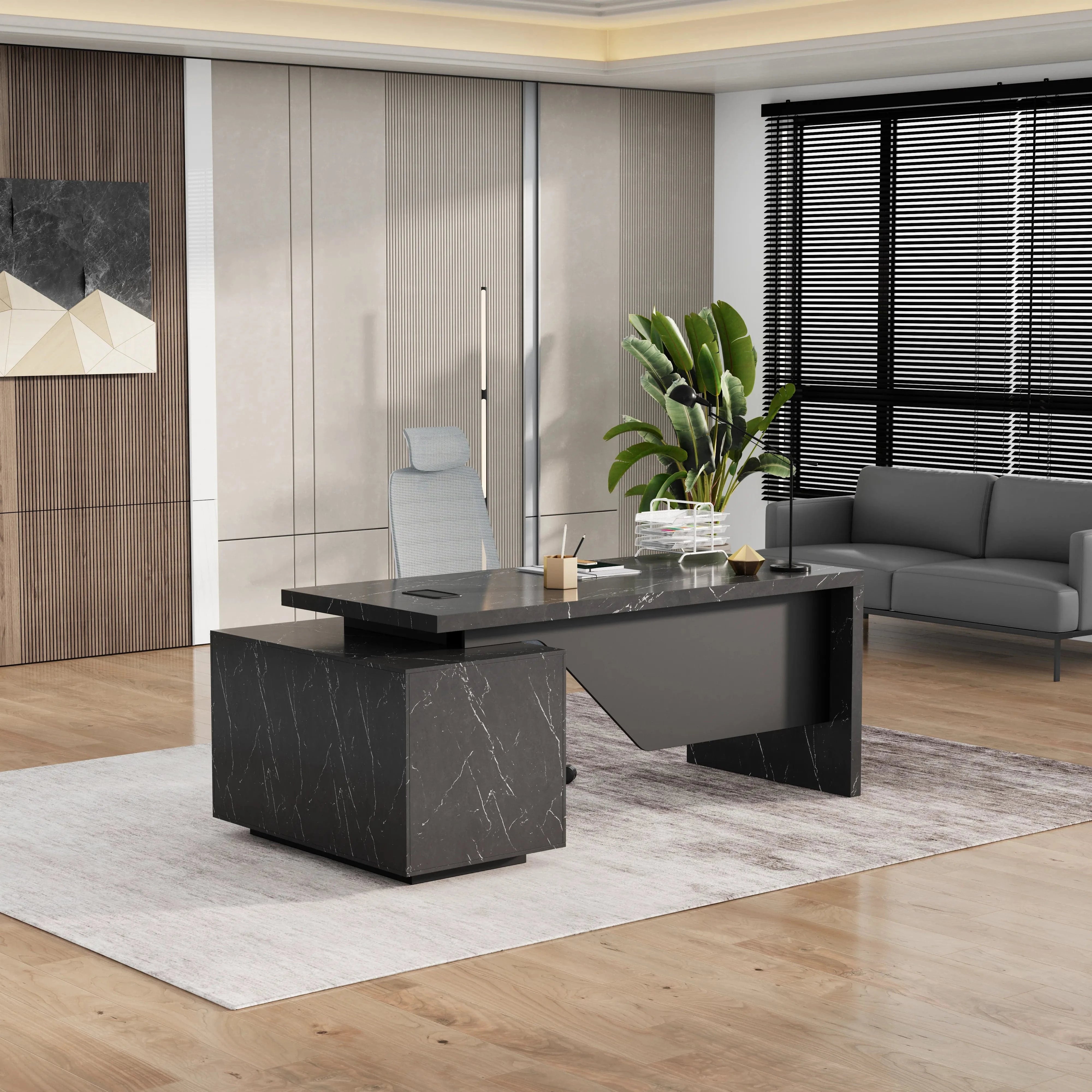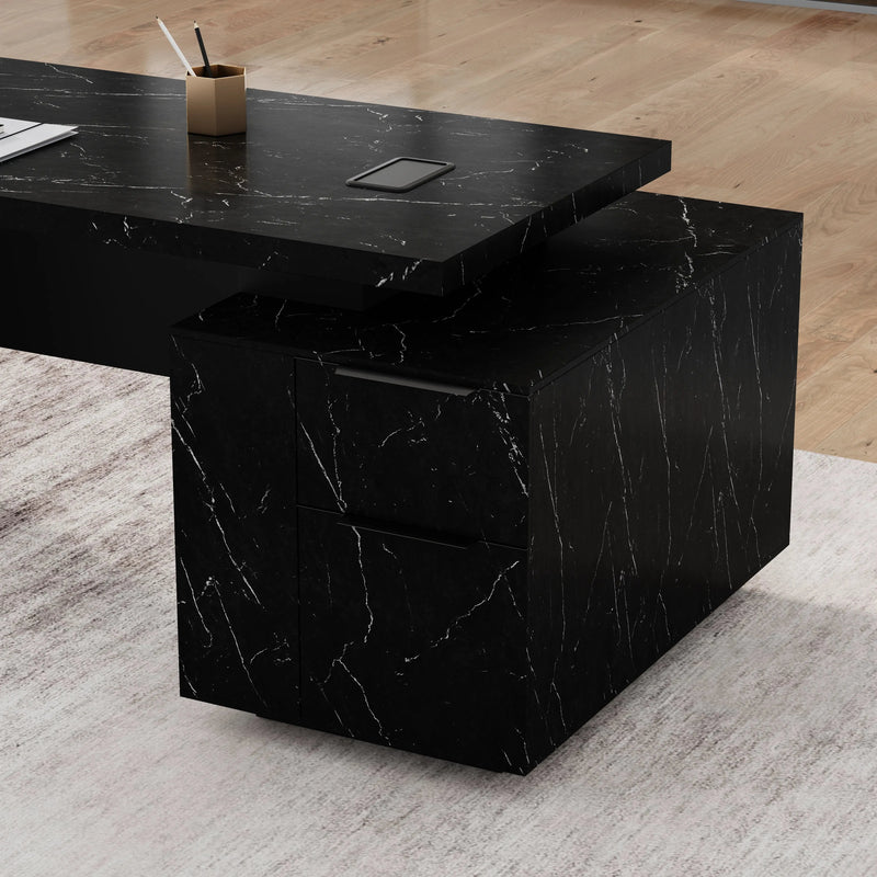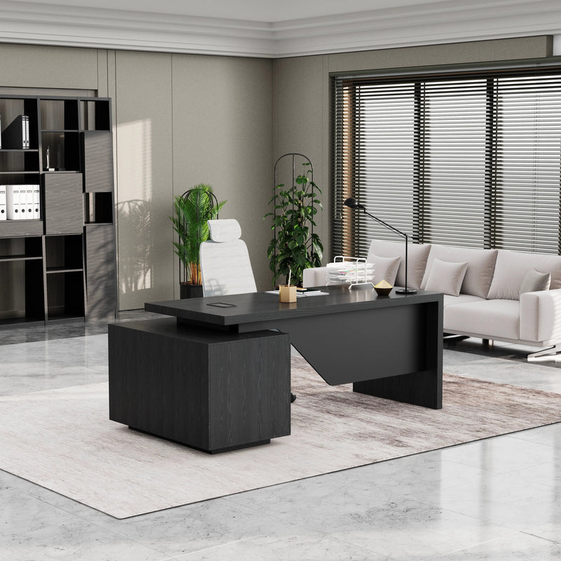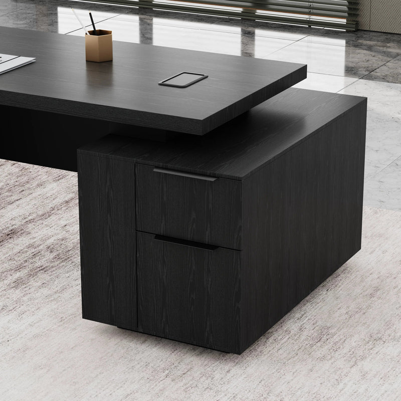 Functionality is at the forefront with two drawers that provide convenient access to everyday essentials while maintaining a clutter-free work surface. A built-in cable grommet hole supports smart cable management, directing cords through the return side to maintain an organized and professional appearance.