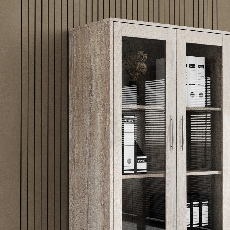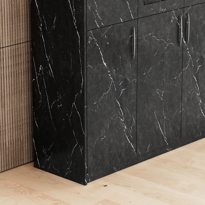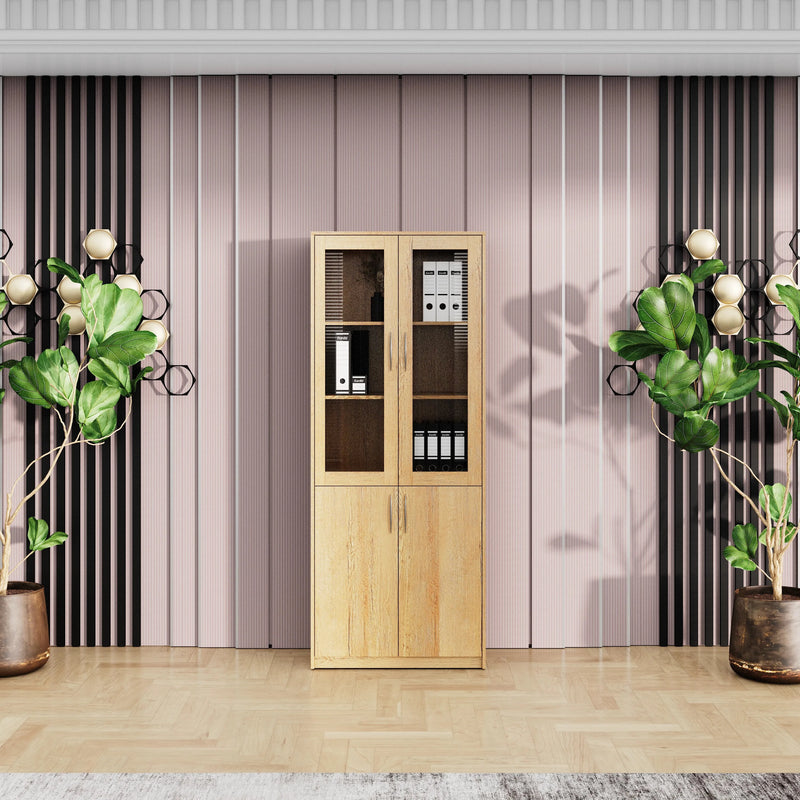 The Range Closed Cabinet Shelving Unit from the Essence Mooreen Collection is built for adaptability, offering a clean, modern design that blends seamlessly into workspaces, studios, or living rooms. At its core is a structure made from E1-grade Medium Density Fiberboard, engineered for long-term performance with lower formaldehyde emissions. This material provides a dense, stable base that resists warping and holds up under daily use. It's wrapped in a melamine veneer finish that not only mimics the beauty of real wood but also shields the surface from scratches, stains, and moisture, making it ideal for high-traffic environments.
