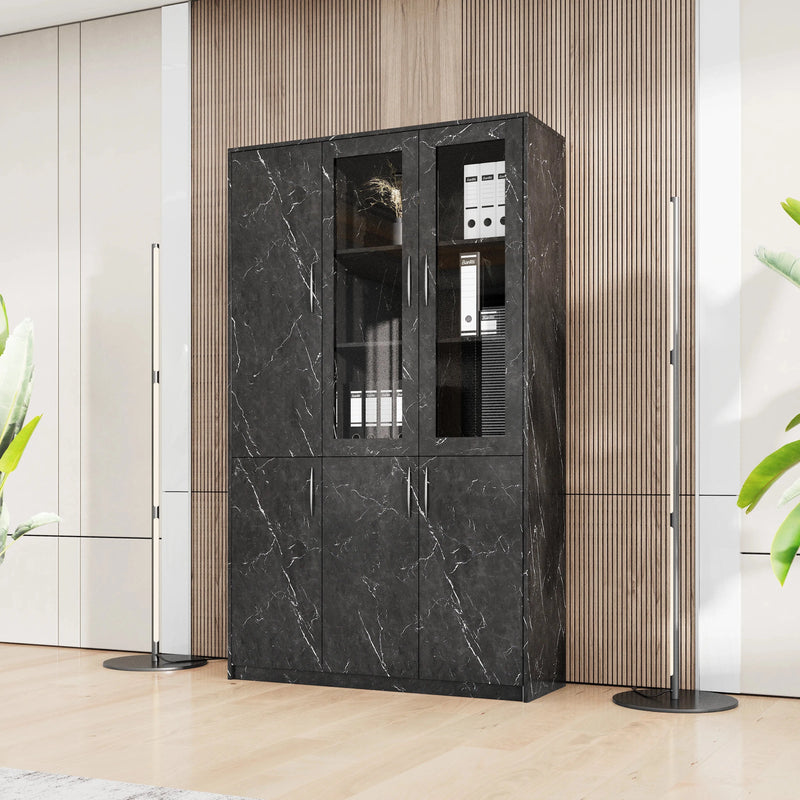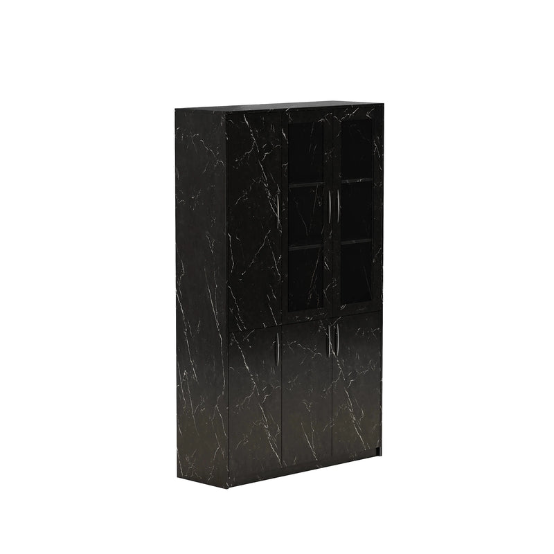 Storage is fully customizable, with a smart blend of closed cabinets, drawers, and optional open shelving that can be used to organize everything from work essentials to personal décor. Across five vertical levels, the unit includes 4 to 8 cabinet doors, 2 to 6 drawers, and between 8 to 14 compartments depending on the chosen configuration.