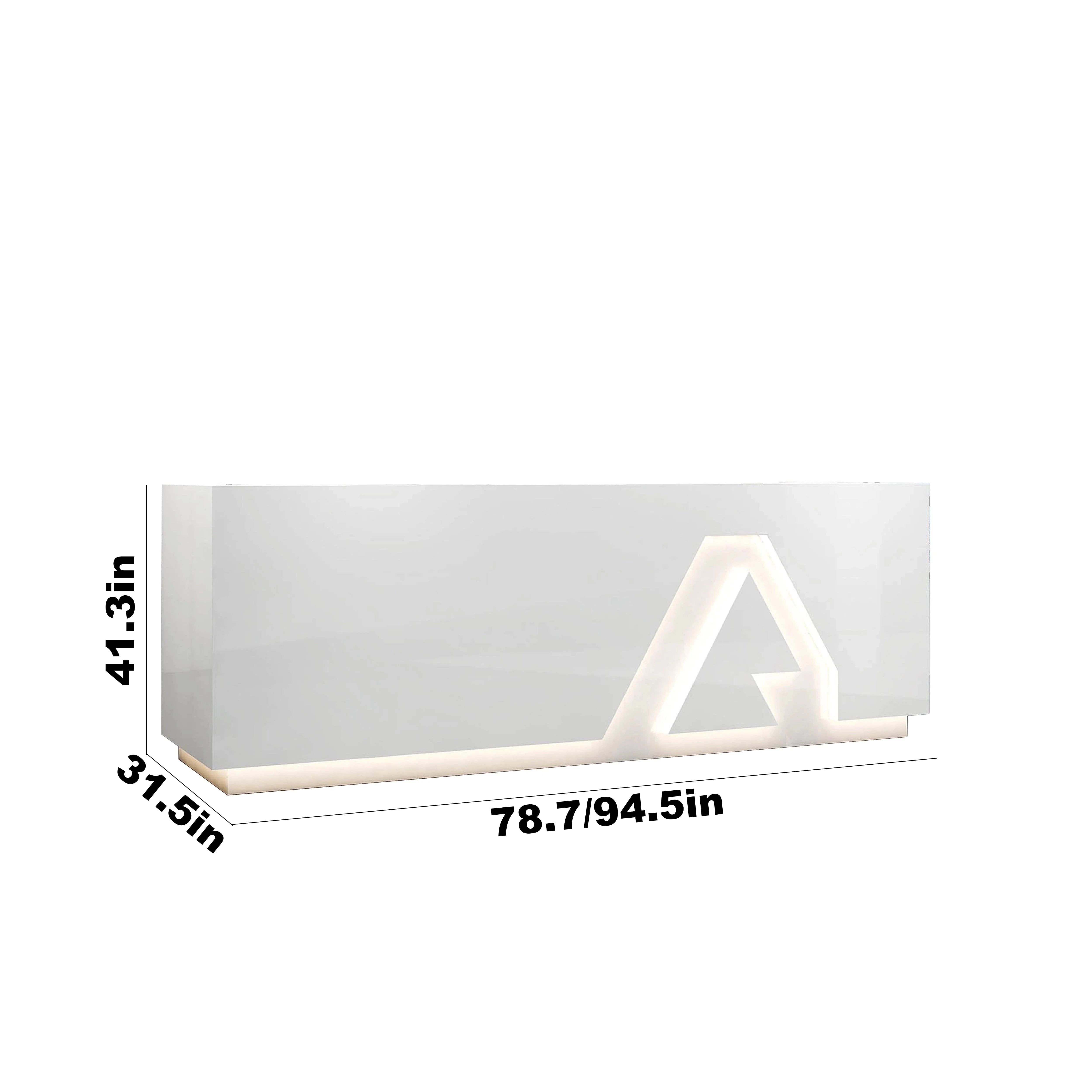 Geometric paneling on the exterior adds a refined design element, giving the desk dimension and visual interest without overwhelming the space. A subtle LED light undertone is embedded along the lower edge, casting a soft glow that enhances visibility and ambiance in low-light settings.