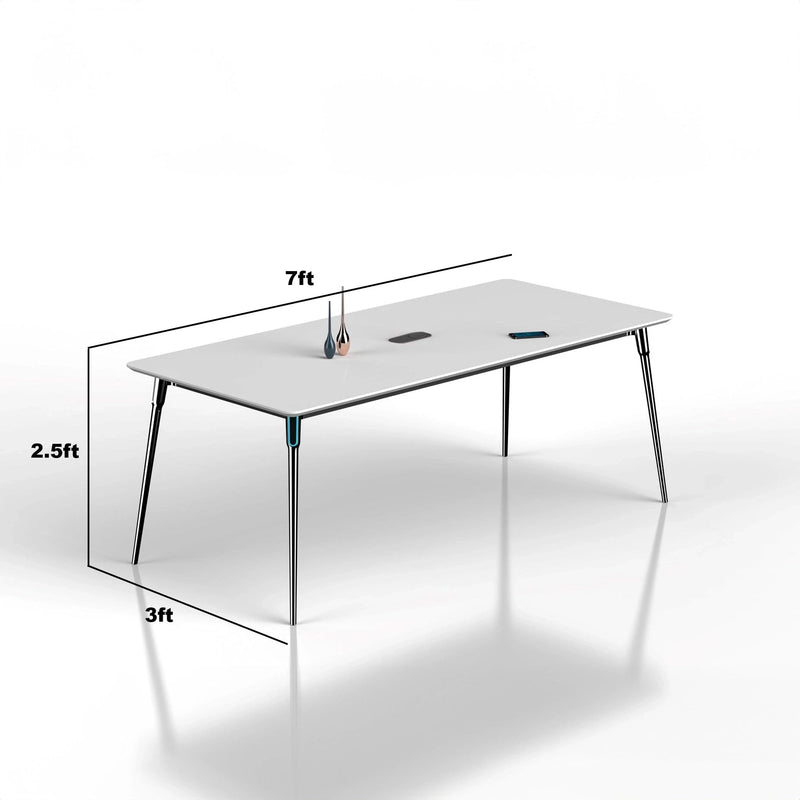 The Viviana 7–11' White Rectangular Conference Room Table from the Merceli Collection blends modern form with practical performance, designed to support dynamic workspaces with a clean, streamlined look. Built from E0-grade Medium Density Fiberboard, the table offers excellent structural stability while promoting better indoor air quality thanks to its low-emission core. The surface is finished in water-based, odorless paint and topped with a dual-layer laminate that resists stains, scratches, and heat, making it ideal for daily use.